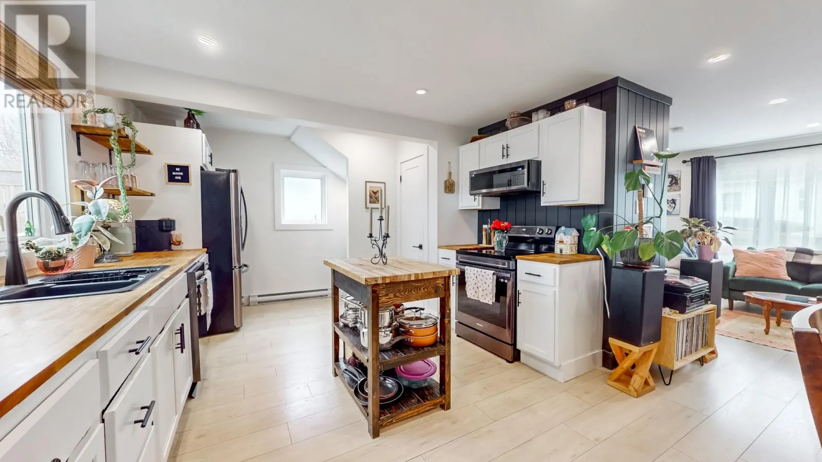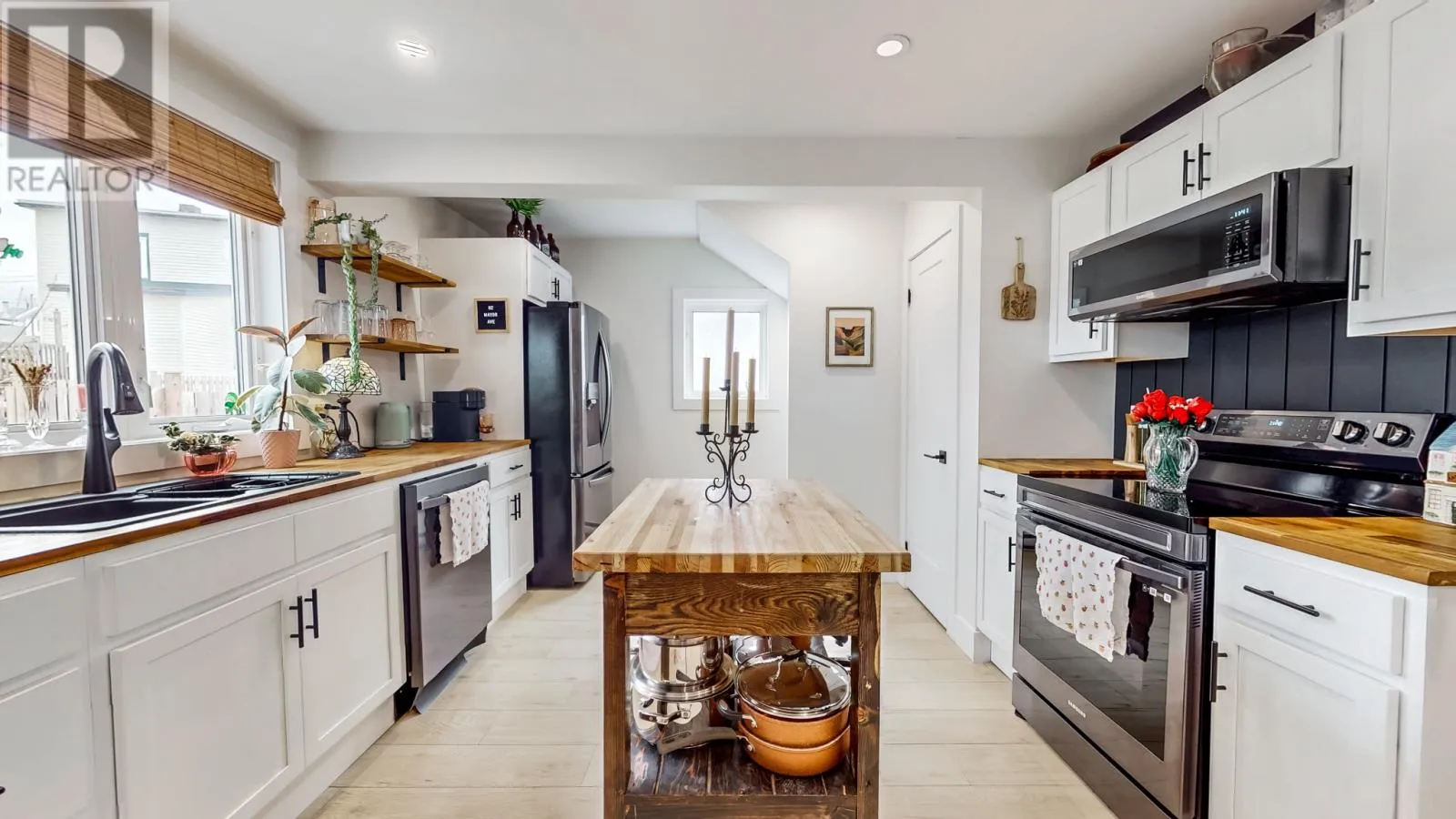This fully developed, completely renovated, 2 storey home is centrally located in the heart of the city, just minutes from Churchill square, MUN, and downtown! House has been stripped through out and rebuilt with an open concept floor plan, beautiful modern flooring, bright white kitchen with butcher block counter tops, and a pantry for extra storage. There is also a large mud room/laundry room off the kitchen for your convenience. Upstairs has 3 bedrooms as well as a main bathroom which has been fully remodelled with tiled tub surround and modern finishes. The basement has a large recroom as well as second 4 piece bathroom. There is also a workshop/storage area and a cellar which has rear yard access. Upgrades include new siding, electrical and plumbing, pot lights and modern paint/trim throughout. This beautiful home is a must see! Sellers Direction - No Conveyance of offers until 4 pm March 30th, offers left open until 9 pm and will be presenting at 6:30 pm. (id:27476)