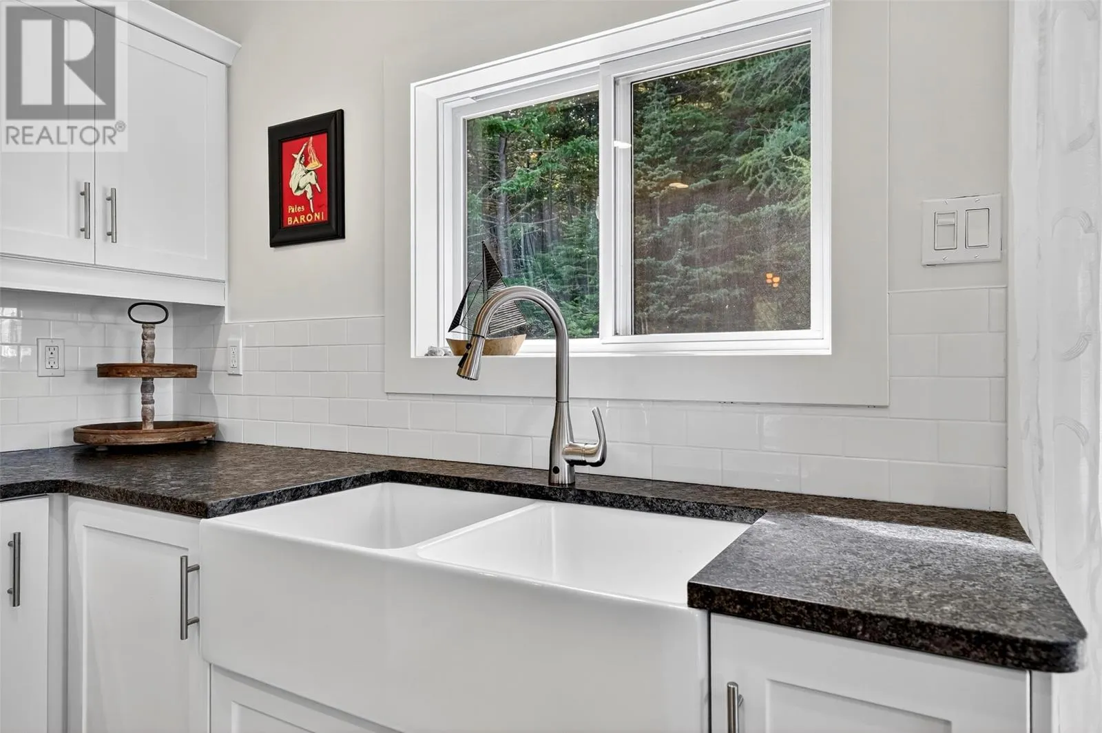 John's road is directly off Thorburn Road just past Brookside school. Beautifully RENOVATED 1900 sq. ft. bungalow nestled on 22 ACRES of pristine land, located just off Thorburn Roadâonly a 10-minute drive from the heart of St. John's. Quiet, gated private road in a lush, forested river valley, this property offers the best of both worlds: total seclusion with quick, easy access to city amenities. The home has been thoughtfully updated with brand-new siding, a large new deck, and high-quality finishes throughout. The main level features an open-concept design with a bright custom kitchen, granite countertops, center island, spacious living and dining areas, and a convenient half bath. The highlight is the luxurious primary suite, complete with a walk-in closet, elegant claw foot tub with beautiful chandelier, and custom glass shower. Downstairs, the fully finished walkout basement offers a self-contained IN-LAW SUITE with two bedrooms, a full eat-in kitchen, large living area, bathroom, and laundryâperfect for multi-generational living or guest accommodations. Upgrades include new vinyl windows and doors, asphalt shingles, engineered laminate flooring, new plumbing, electrical, heaters, spray foam wall insulation, R55 attic insulation, new artesian well. Surrounded by nature, this property is a haven for wildlife and a peaceful escape from the everyday hustleâideal for developers, homesteaders, equestrian enthusiasts or anyone seeking privacy and space just minutes from St. John's. (id:27476)