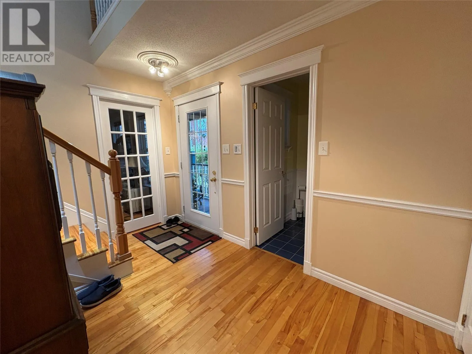 This is the perfect family home for a large or growing family. Located close to the High School so children can walk and located on a crescent off the main street. This home has lots of great features like 4 Bedrooms, Plus an office which can also be used as a bedroom if needed, three full bathrooms and a powder room for guests. There is a cute front veranda which is nice for decorating for all seasons, a large back yard for kids to play, plant gardens, etc. There is an attached garage and a large 16 x 20' shed in the back yard. The home has a large kitchen with tons of cabinets and a walk-in pantry/closet, and a computer desk area as you come in from the attached garage. There is a pocket door to close off the kitchen from the Foyer and French doors closing off the dining room to the kitchen and hallway. There is a breakfast nook with doors leading out onto the back deck and a formal dining area which leads into the family room with a propane fireplace. At the front door is a formal living room or den, or office, whatever you choose to use it for. Upstairs has two bedrooms and a main bathroom with double vanity, the master bedroom has a good sized ensuite bathroom with double vanity as well, and a large walk-in closet. Down in the basement there is a rec room, the third full bathroom, the forth bedroom and the fifth bedroom/office right beside the walkout from the basement, making this the perfect home for a home based business. The large laundry room/hobby room is also in the basement. This home is a must see, with all the upgrades, like electrical panel, New electric baseboard heaters along with three heat pumps and renovated basement in the past year. This home has hardwood floors and ceramic tiles on the top two floors and the basement has insulated laminate flooring. There are too many features to list, so call today for more information and your personal tour. (id:27476)