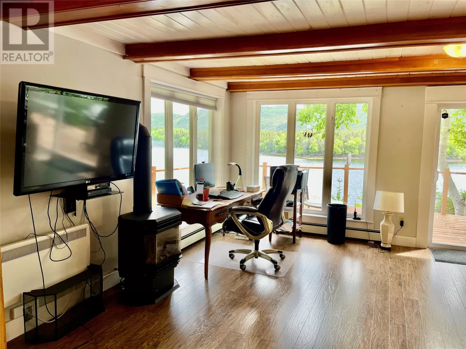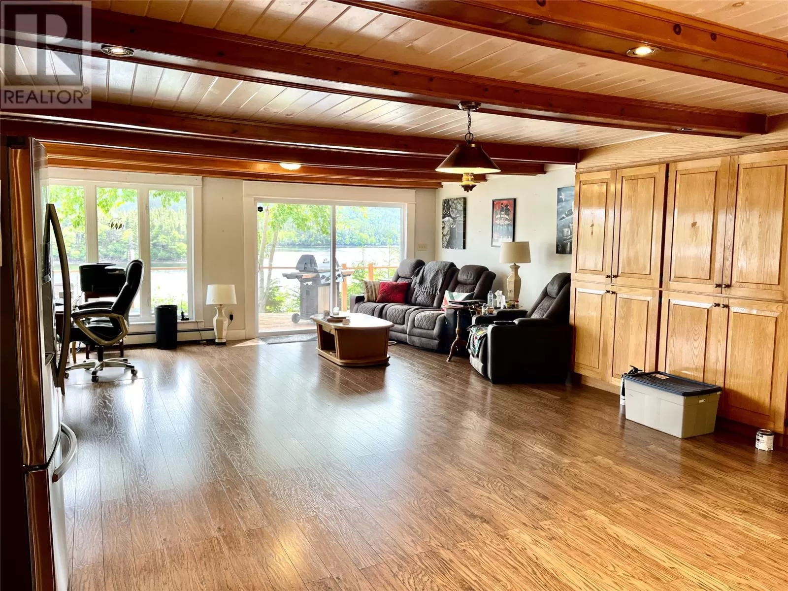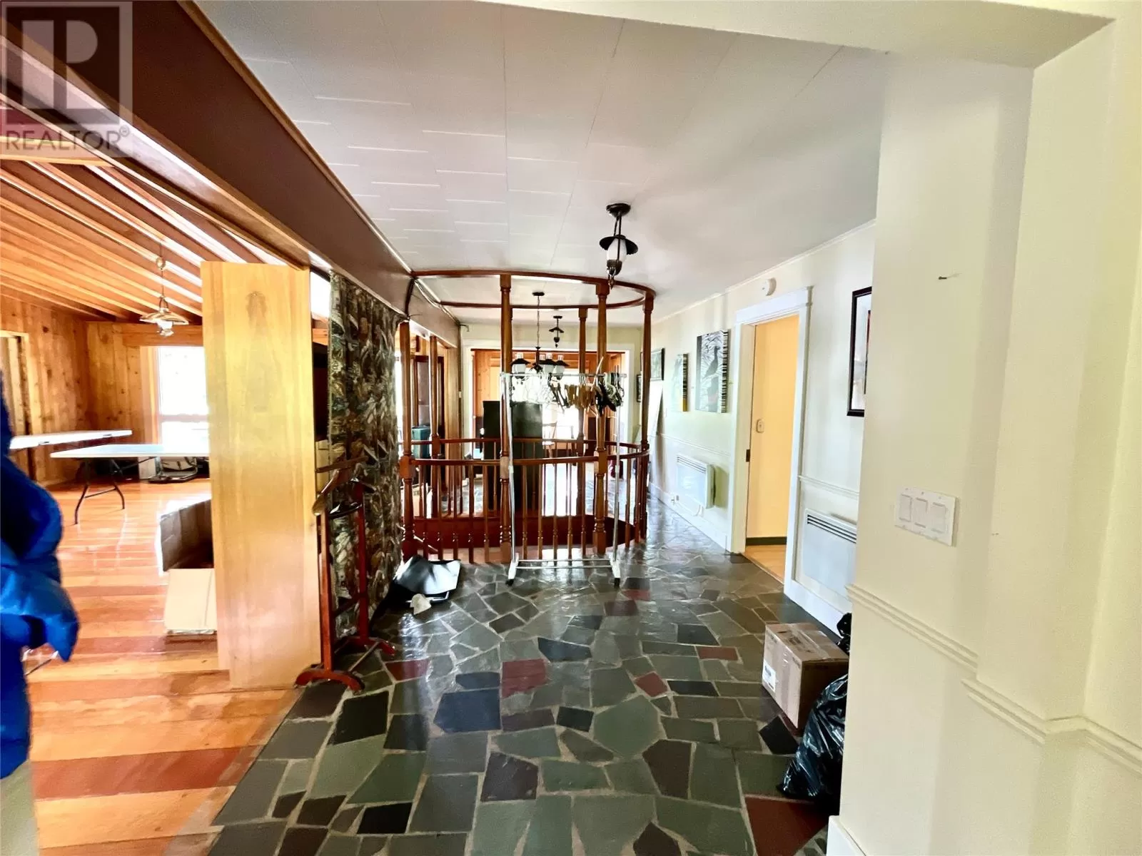Don Jamieson highway to the Driveway beside Kilmory Resort Take a short drive down the Don Jamieson highway to âDon Jamiesonâsâ Estate & Family home. Once in a lifetime opportunity to Own an iconic piece of History. This expansive 1.9 Acre estate has its own Pool and waterfront with a private beach. Complete with wheelchair access leading into an expansive foyer complete with a half bath. When you enter the Living Room, Impressive vaulted beamed ceilings , Grand Fireplace, sprawling ship plank flooring secured with wood dowels. Large windows that allow for a breathtaking view of Pipers Hole River which connects to Placentia Bay. Immaculate Bright oversized Kitchen, boasts over 20 feet of cupboards, stainless steel appliances, abundance of windows which lead to an expansive deck that overlooks the water. Entertain the largest of gatherings in this home. The main level includes a private section that has 3 bedrooms including a large master . The master has wic and has two rooms that were framed and heated to accommodate a vaulted extension to the master with a panoramic view of the River and an adjacent robust ensuite with vaulted ceiling, and view. Make it your own and finish the vision. Main Bathroom is completely finished with soaker tub and subway tile. There are sinks in every bedroom as would be for the era and stature of the home. Lower level has an enormous Great room, laundry room and oversized berm, 4 pc Bath. Basement Could be reconfigured to be suited. Large attached Garage as well as a grand vaulted carport to accommodate vehicles and or a large boat . This estate has an abundance of large beautiful trees, landscaped, privacy and a million dollar view. This iconic historical home offers opportunities for investors while offering flexibility of personal and or commercial use . The sale of this Grand Estate is a once In a lifetime opportunity to own a piece of History. (id:27476)