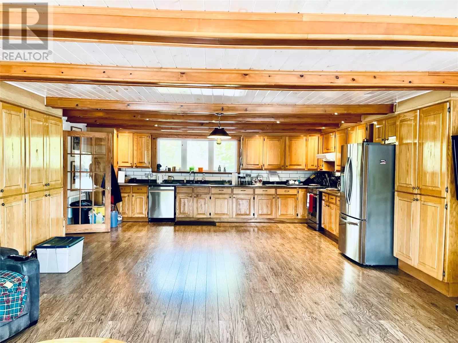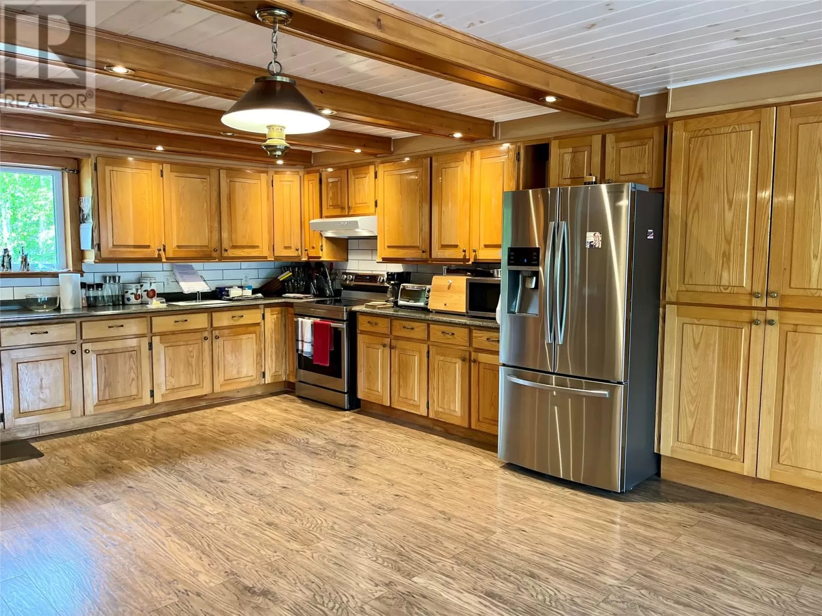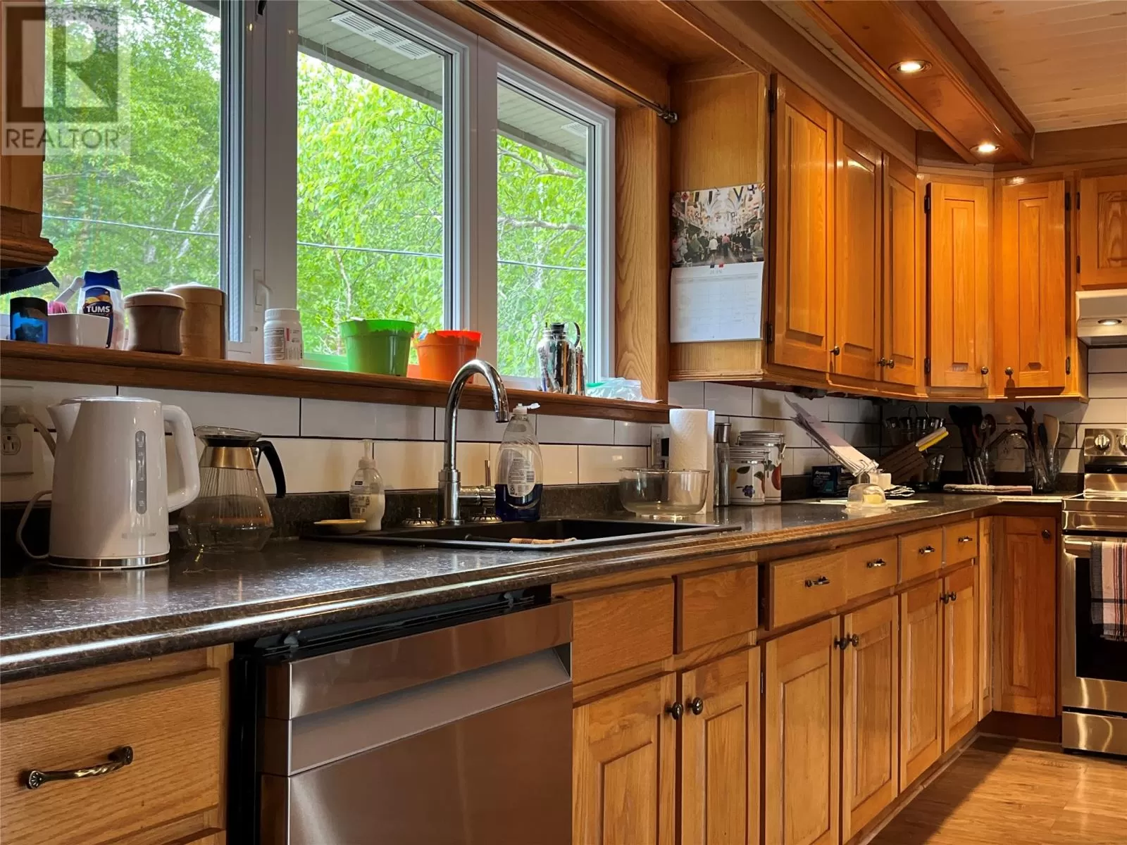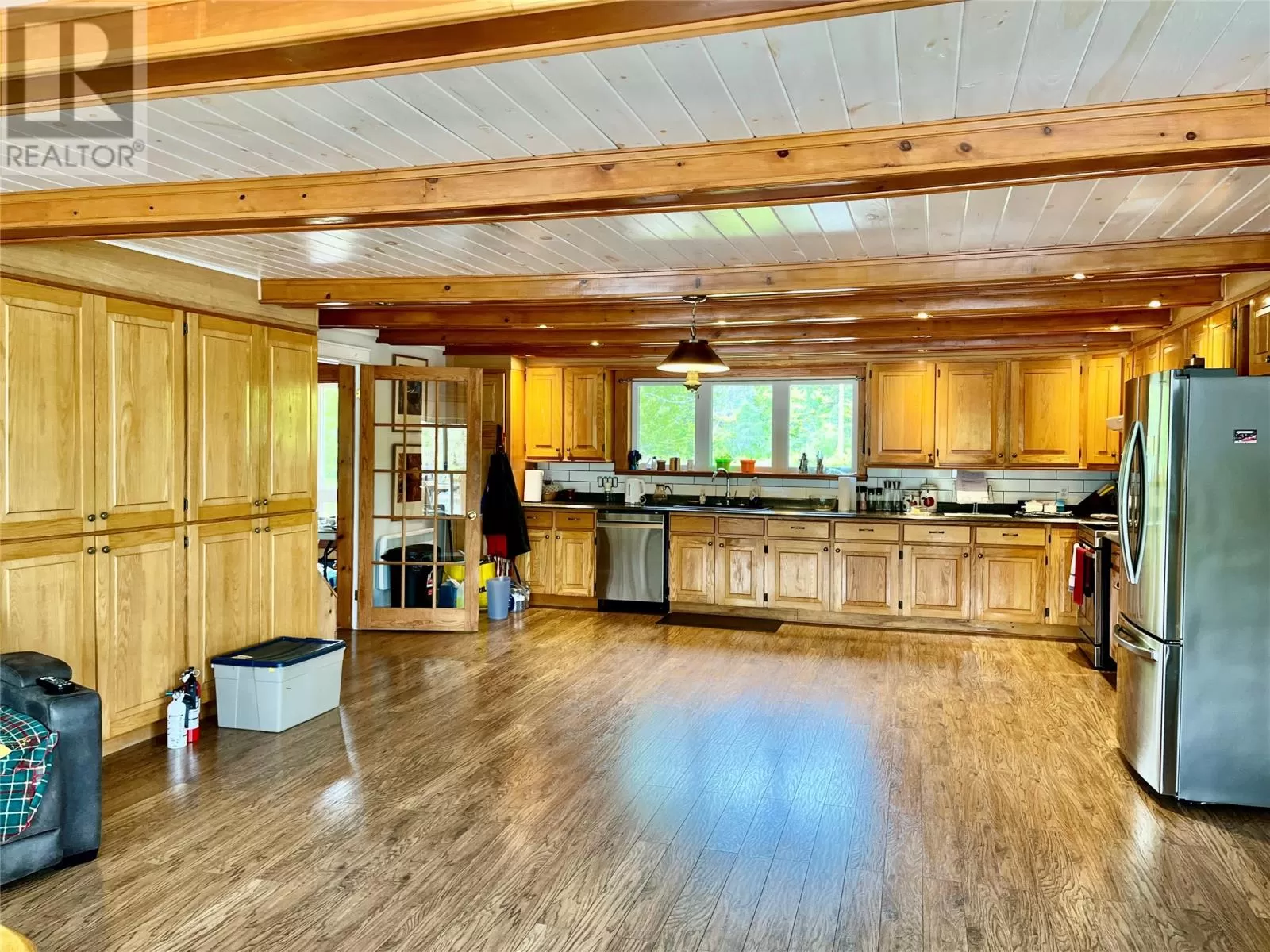 Don Jamieson highway to the Driveway beside Kilmory Resort Take a short drive down the Don Jamieson highway to âDon Jamiesonâsâ Estate & Family home. Once in a lifetime opportunity to Own an iconic piece of History. This expansive 1.9 Acre estate has its own Pool and waterfront with a private beach. Complete with wheelchair access leading into an expansive foyer complete with a half bath. When you enter the Living Room, Impressive vaulted beamed ceilings , Grand Fireplace, sprawling ship plank flooring secured with wood dowels. Large windows that allow for a breathtaking view of Pipers Hole River which connects to Placentia Bay. Immaculate Bright oversized Kitchen, boasts over 20 feet of cupboards, stainless steel appliances, abundance of windows which lead to an expansive deck that overlooks the water. Entertain the largest of gatherings in this home. The main level includes a private section that has 3 bedrooms including a large master . The master has wic and has two rooms that were framed and heated to accommodate a vaulted extension to the master with a panoramic view of the River and an adjacent robust ensuite with vaulted ceiling, and view. Make it your own and finish the vision. Main Bathroom is completely finished with soaker tub and subway tile. There are sinks in every bedroom as would be for the era and stature of the home. Lower level has an enormous Great room, laundry room and oversized berm, 4 pc Bath. Basement Could be reconfigured to be suited. Large attached Garage as well as a grand vaulted carport to accommodate vehicles and or a large boat . This estate has an abundance of large beautiful trees, landscaped, privacy and a million dollar view. This iconic historical home offers opportunities for investors while offering flexibility of personal and or commercial use . The sale of this Grand Estate is a once In a lifetime opportunity to own a piece of History. (id:27476)