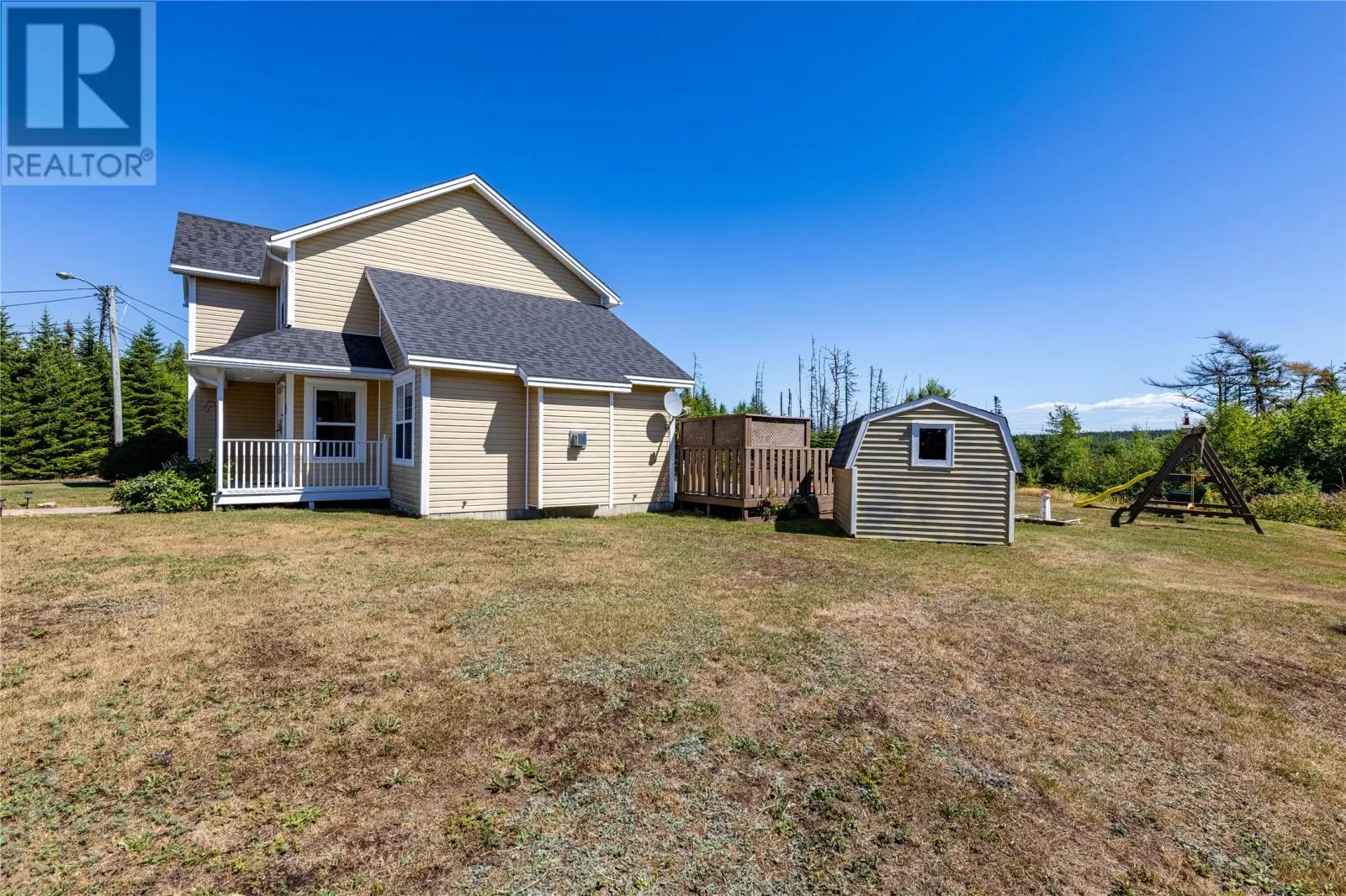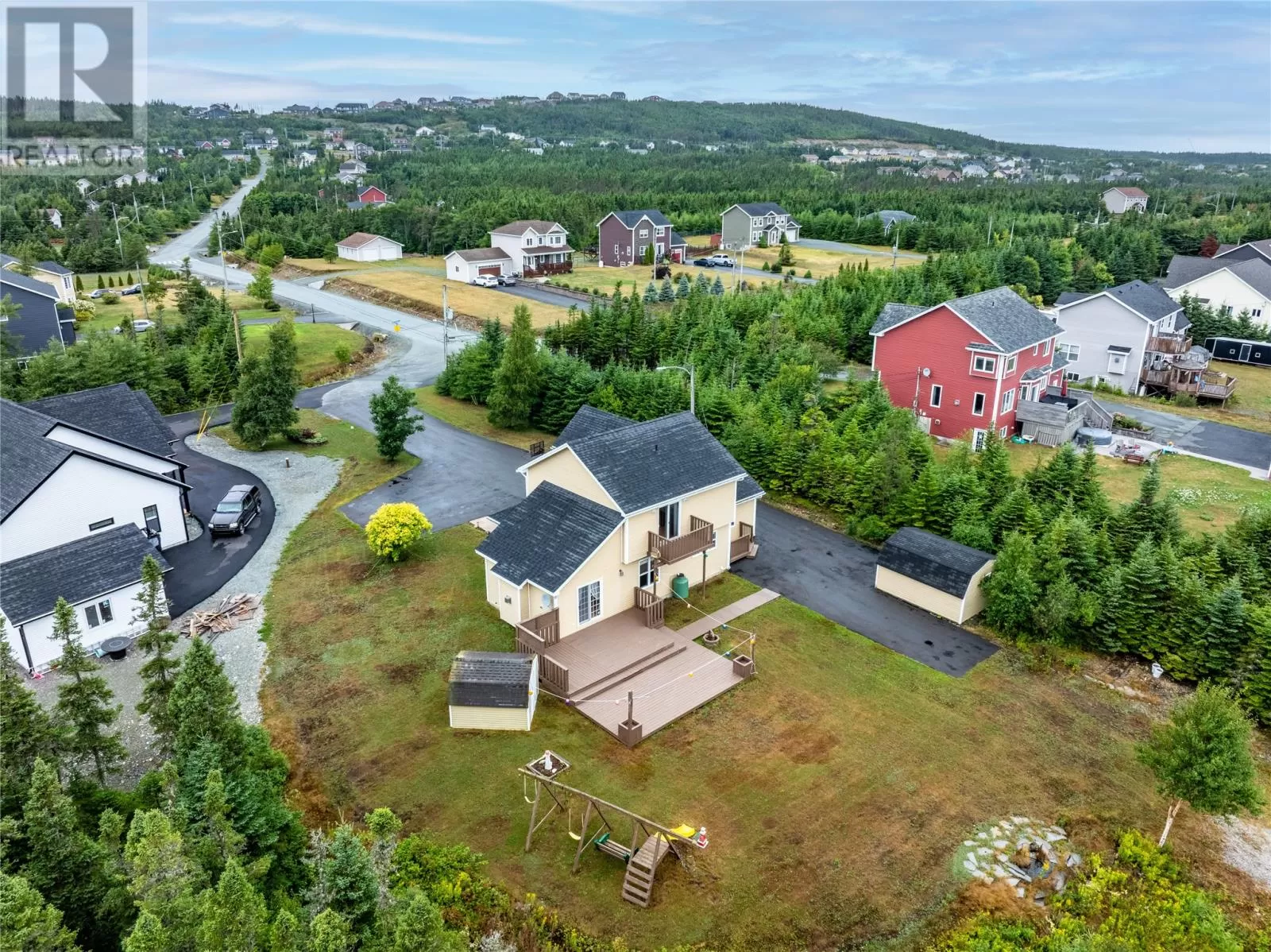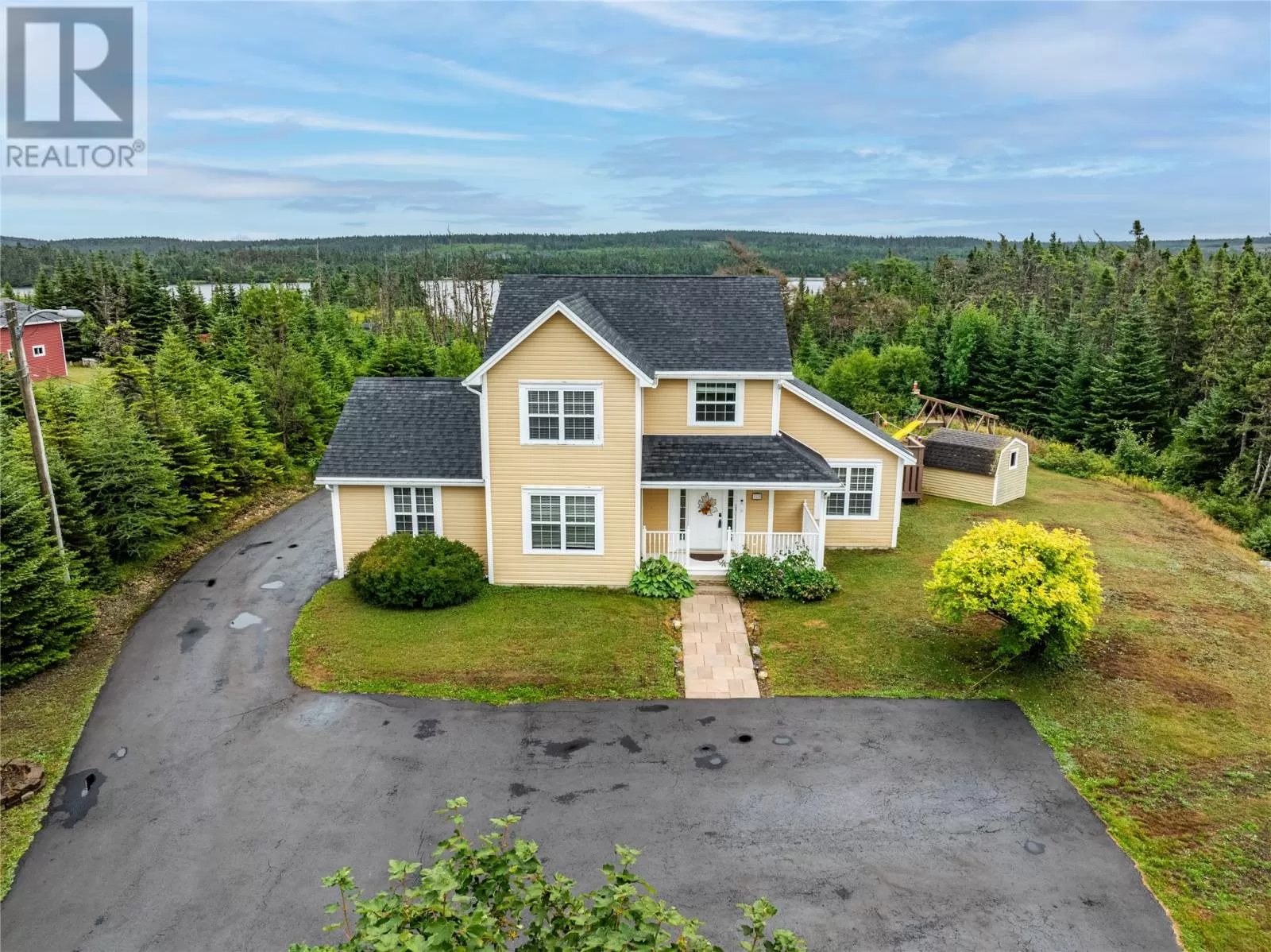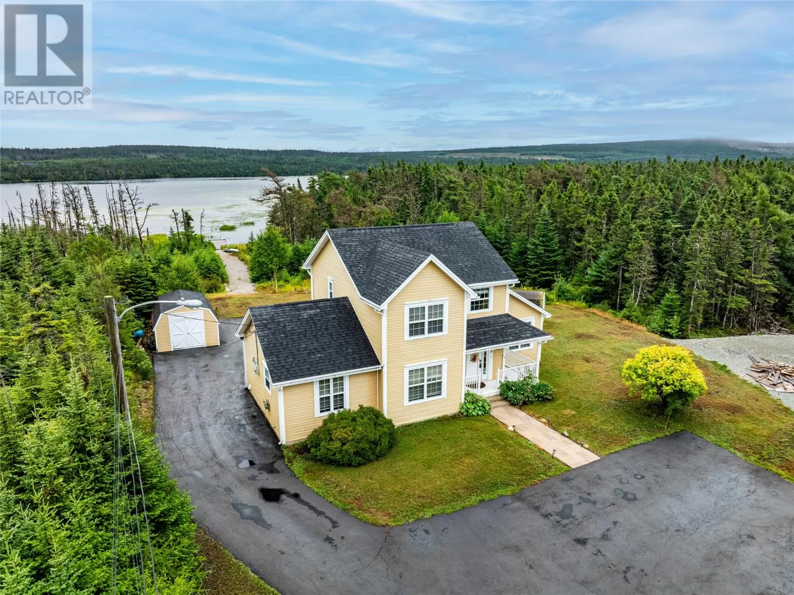 Enjoy Country Living Without the Commute! Surrounded by nature in one of Torbay's most sought after subdivisions, this custom-built home has been designed to maximize the views and access to Western Island Pond. The main floor family room (with propane fireplace) is warm and inviting with beadboard cathedral ceilings and a patio door leading to the oversized back patio. As you pass through the dining area and kitchen (with solid countertops and tile backsplash), you'll find a generous sized mud-room with extra storage capacity and laundry. The main floor also offers a separate living room and a full bathroom. For those with mobility issues, there is the added bonus of a main floor bedroom! This room also functions well as a guest room or home office. Hardwood stairs lead to the second level where you'll find 3 more bedrooms and the family bath complete with corner shower plus a whirlpool tub. Good mornings come easy when waking to your own private view of the pond from your bedroom balcony! The primary bedroom also features a walk-in closet. There is in-floor radiant heating throughout the main level. Outside you'll find two storage sheds, plenty of paved parking for multiple vehicles, and the most peaceful path to your own floating dock! Stainless steel appliances, washer & dryer are included. Roof shingles replaced in 2024. Lots like this don't come up often! Schedule your private viewing today! (id:27476)