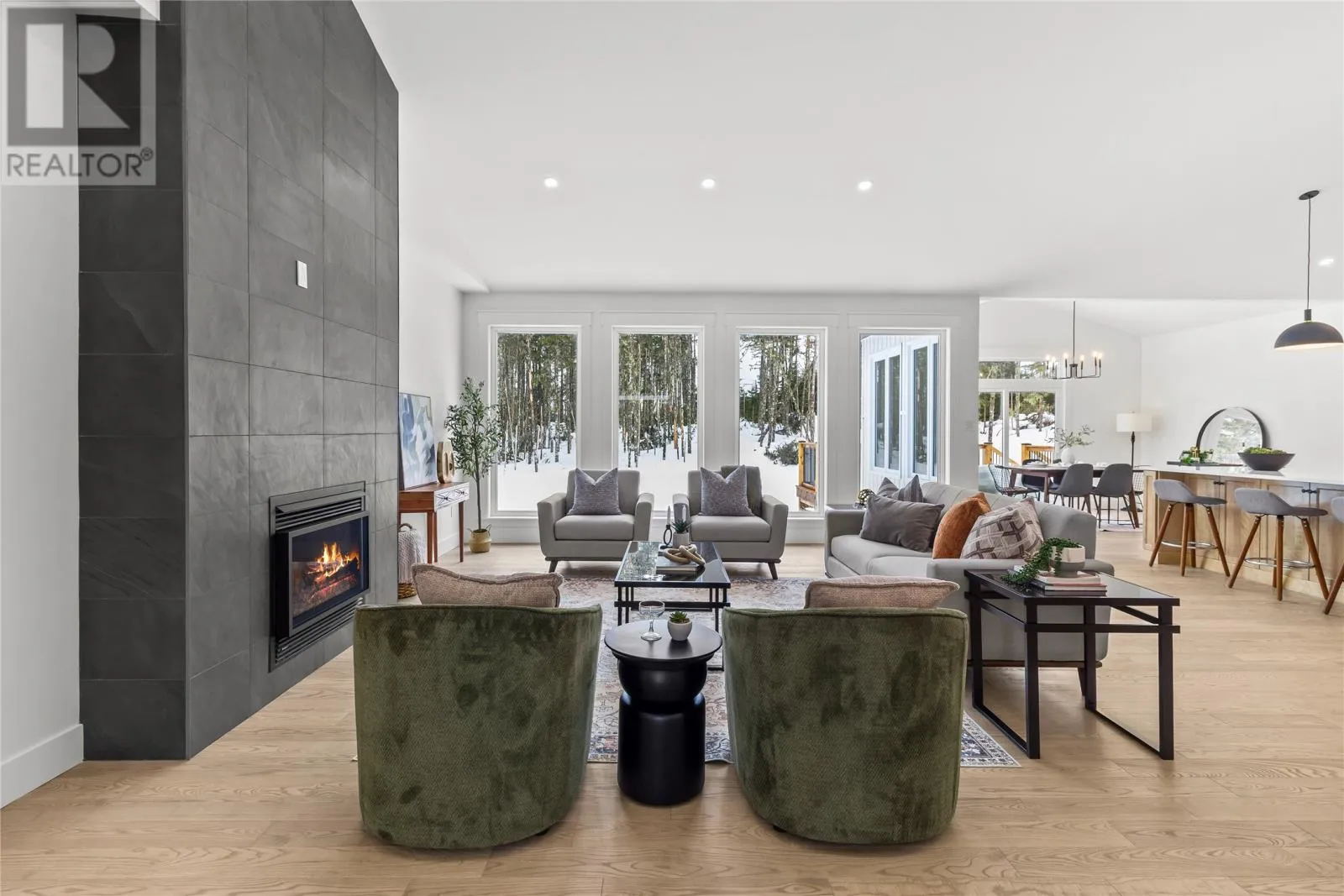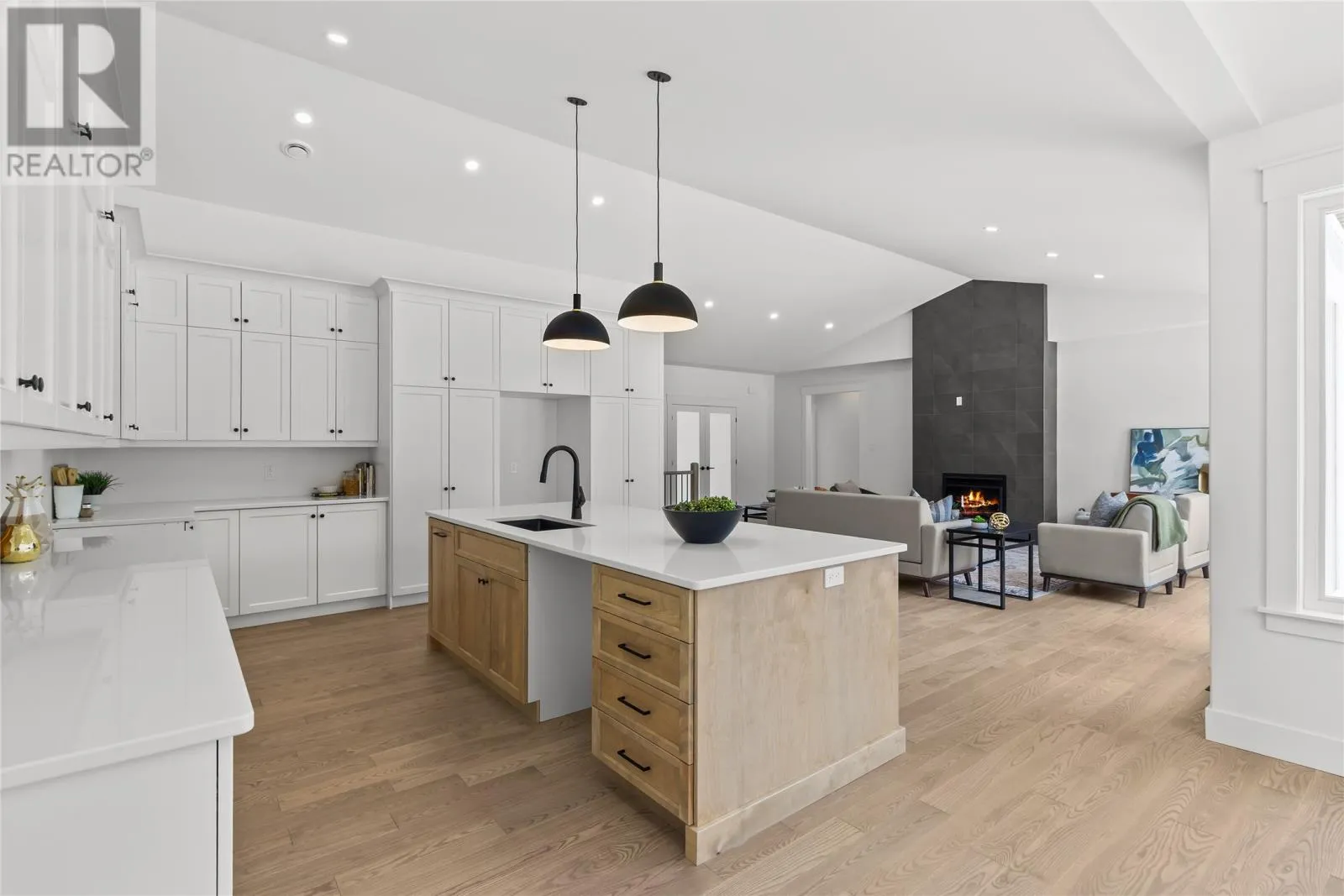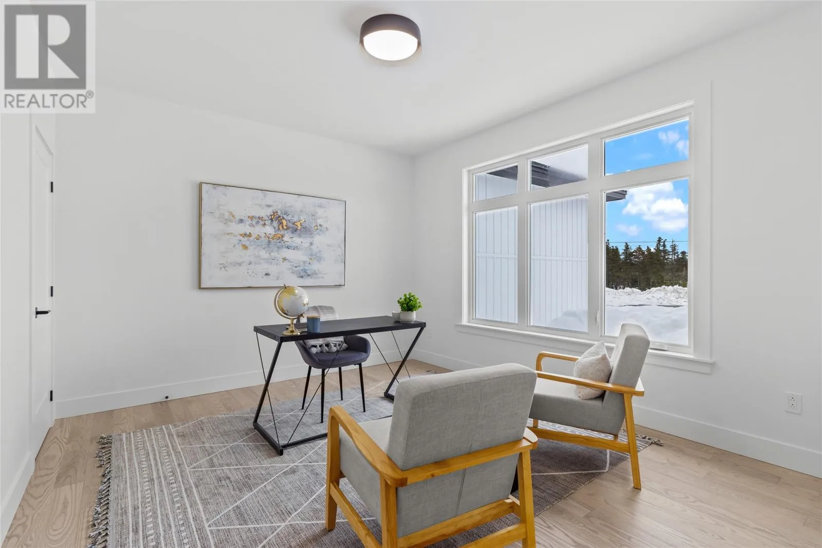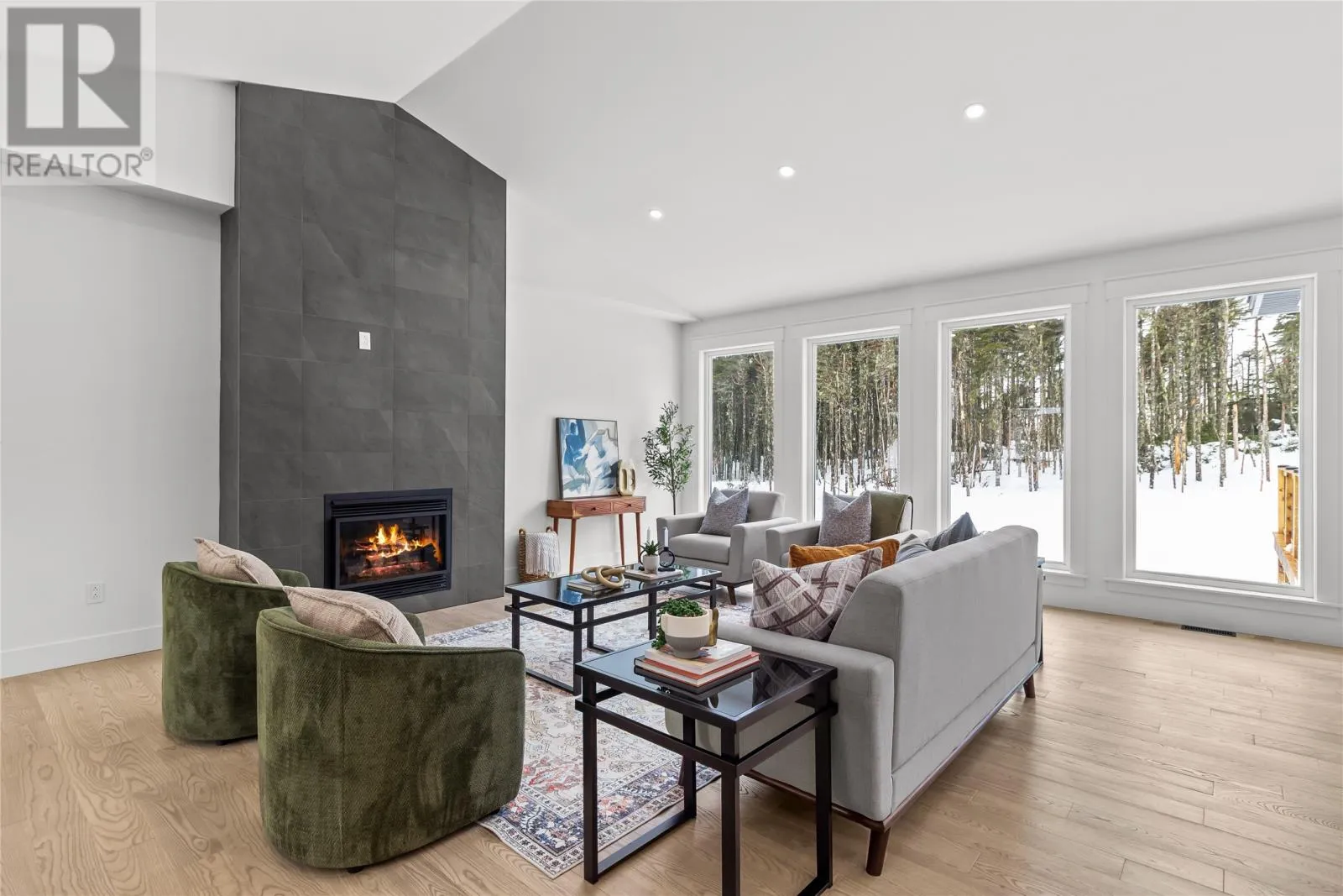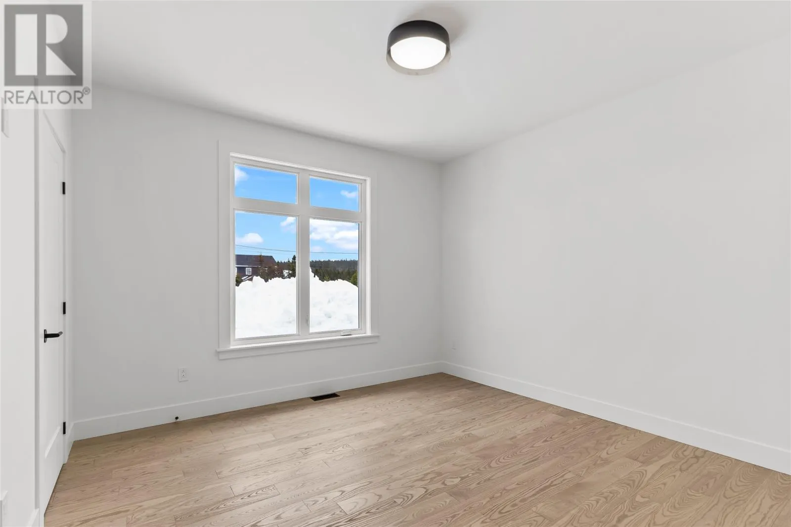 Discover refined country living in this newly completed executive bungalow set on a 1.36-acre lot in sought-after Forest Landing. Backing onto Western Island Pond with rear south-west exposure, few properties offer this level of privacy and scale. Offering 2,600 sqft of living space per level, the layout includes three bedrooms, two and a half bathrooms, and a flex room, plus a 2-door 850sqft attached garage. Step inside and a spacious foyer with frosted French doors leads into the 13-foot vaulted great room filled with natural light. The great room features the custom kitchen, finished with full-height shaker cabinetry, quartz countertops, and an oversized island featuring a warm wood stain with visible grain detail. Matte black hardware and an integrated undermount sink complete a space designed for both everyday use and entertaining. The adjoining dining area features a vaulted ceiling and patio door opening to the rear deck. The living area is anchored by a tiled feature wall with a Regency 36-inch propane fireplace. The functional layout can accommodate larger gatherings while remaining comfortable for quiet evenings at home with family. The primary bedroom offers a private retreat with walk-in closet and spa-inspired ensuite featuring a 48 by 48 tiled shower with rainfall head, frameless glass, double-sink vanity, and soaker tub. Canadian-made ash engineered hardwood flooring throughout the main level, complemented by ceramic tile in wet areas and 9-foot ceilings in secondary rooms. The lower level is framed and ready for future development, with plumbing rough-in in place for a bathroom. Heated by a 2-zone ducted heat pump and supported by upgraded 400-amp underground service with EV charger pre-wired in the attached garage. With full rear access and direct access to pond-side recreation, hiking, and ATV trails, this property offers estate-style living minutes from Stavanger Drive and downtown St. Johnâs. (id:27476)