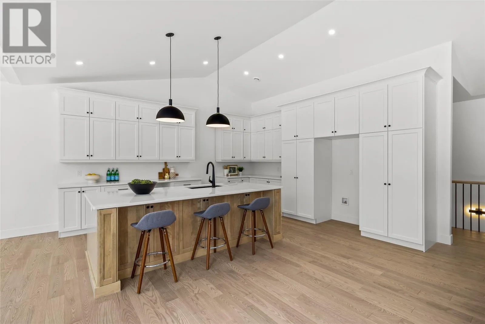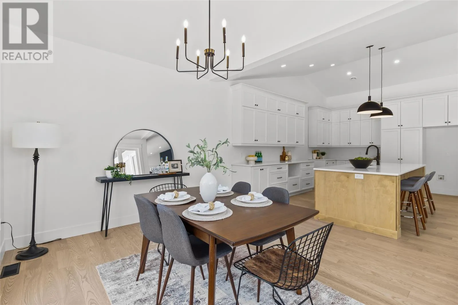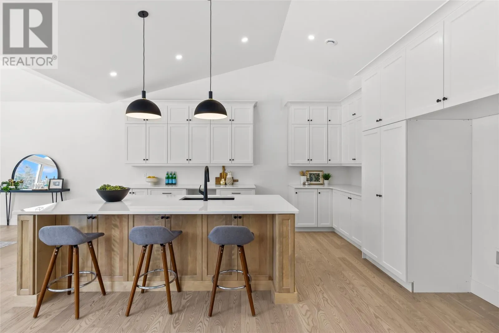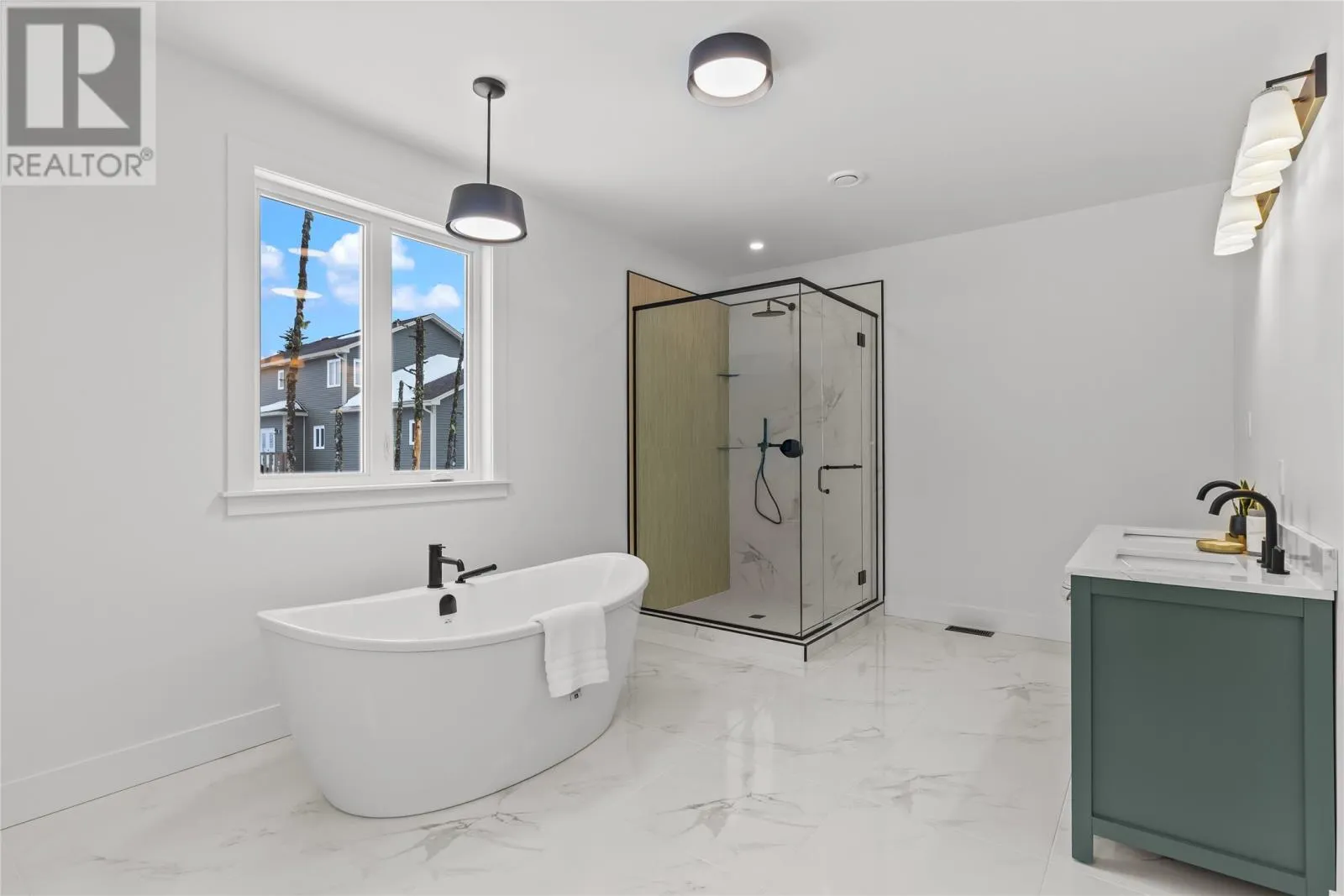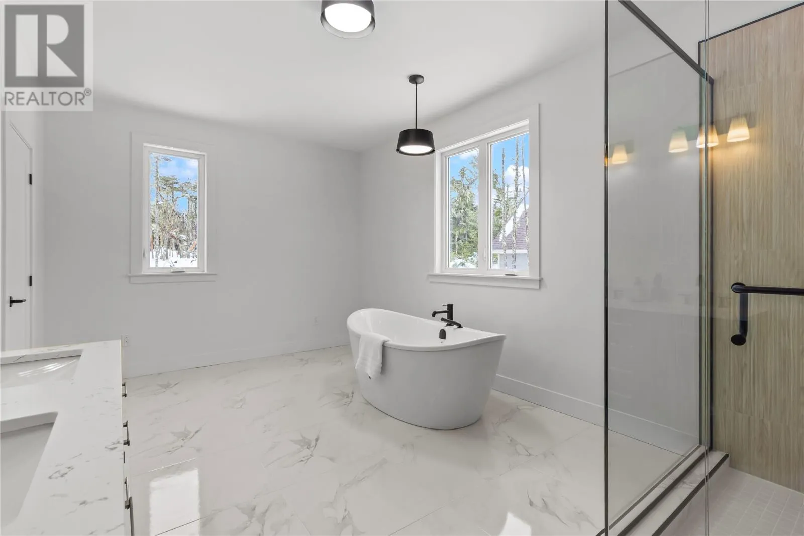 Discover refined country living in this newly completed executive bungalow set on a 1.36-acre lot in sought-after Forest Landing. Backing onto Western Island Pond with rear south-west exposure, few properties offer this level of privacy and scale. Offering 2,600 sqft of living space per level, the layout includes three bedrooms, two and a half bathrooms, and a flex room, plus a 2-door 850sqft attached garage. Step inside and a spacious foyer with frosted French doors leads into the 13-foot vaulted great room filled with natural light. The great room features the custom kitchen, finished with full-height shaker cabinetry, quartz countertops, and an oversized island featuring a warm wood stain with visible grain detail. Matte black hardware and an integrated undermount sink complete a space designed for both everyday use and entertaining. The adjoining dining area features a vaulted ceiling and patio door opening to the rear deck. The living area is anchored by a tiled feature wall with a Regency 36-inch propane fireplace. The functional layout can accommodate larger gatherings while remaining comfortable for quiet evenings at home with family. The primary bedroom offers a private retreat with walk-in closet and spa-inspired ensuite featuring a 48 by 48 tiled shower with rainfall head, frameless glass, double-sink vanity, and soaker tub. Canadian-made ash engineered hardwood flooring throughout the main level, complemented by ceramic tile in wet areas and 9-foot ceilings in secondary rooms. The lower level is framed and ready for future development, with plumbing rough-in in place for a bathroom. Heated by a 2-zone ducted heat pump and supported by upgraded 400-amp underground service with EV charger pre-wired in the attached garage. With full rear access and direct access to pond-side recreation, hiking, and ATV trails, this property offers estate-style living minutes from Stavanger Drive and downtown St. Johnâs. (id:27476)