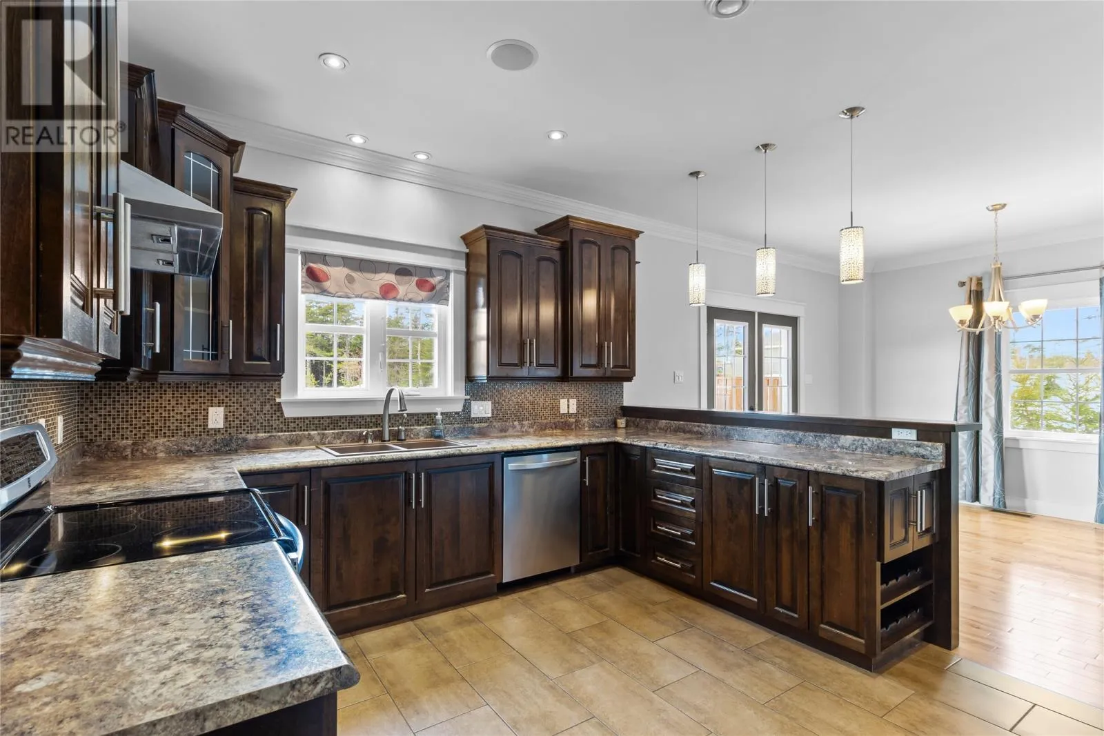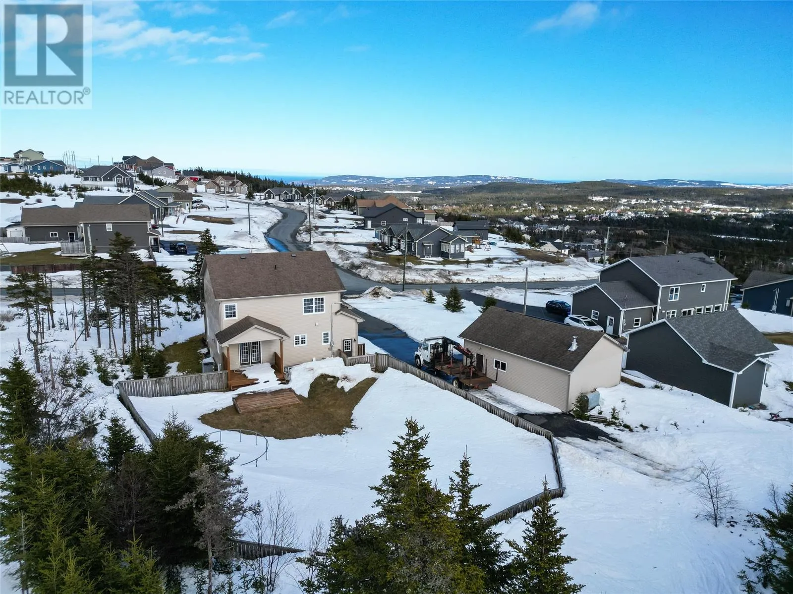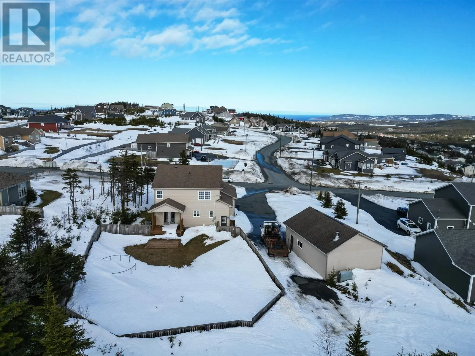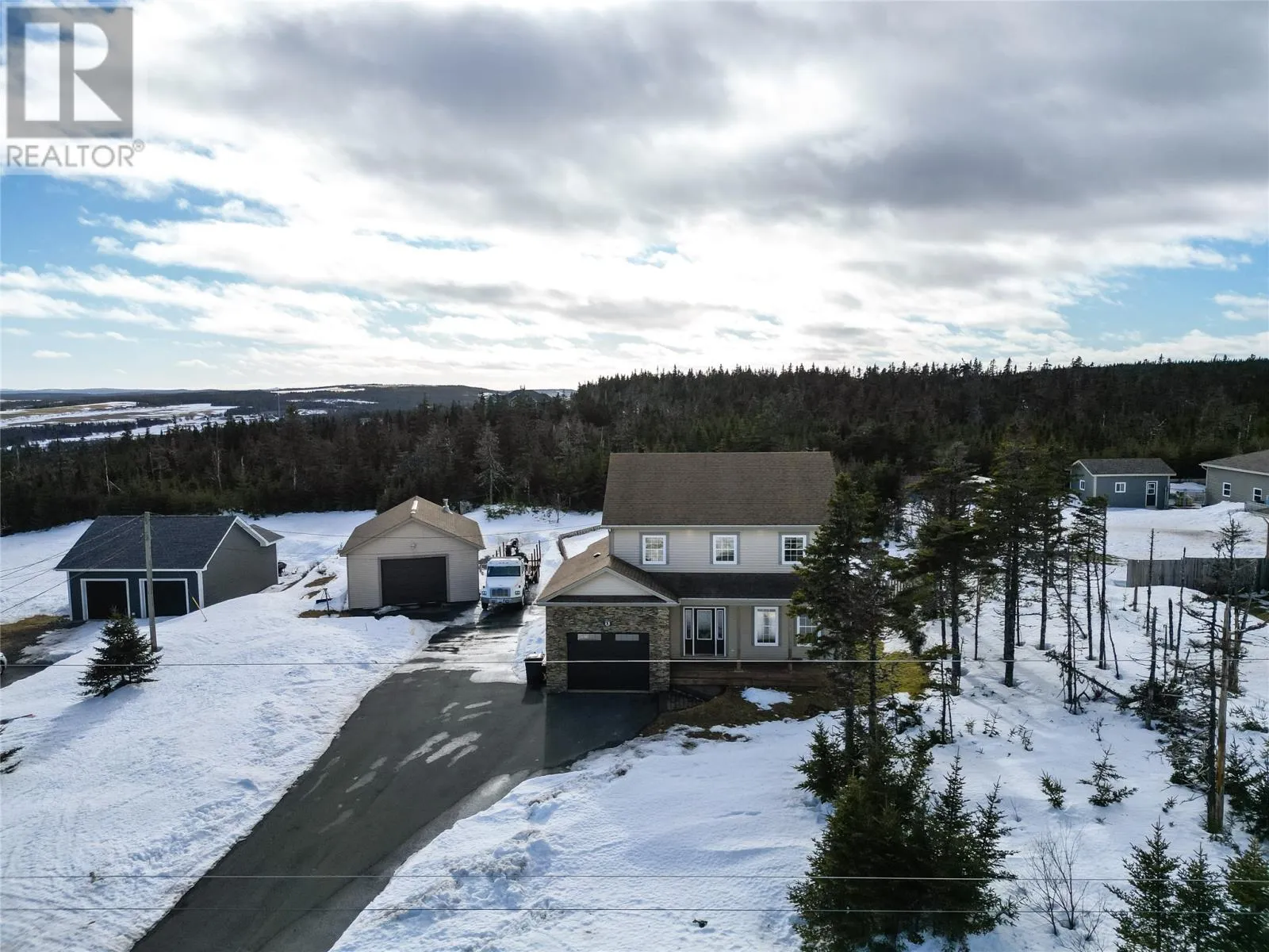 Welcome to 13 Nathaniel Drive in Torbay, a beautiful home located in a sought-after, family-friendly neighborhood. Situated on a large ¾ acre lot, this property offers plenty of space and privacy while backing onto a peaceful greenbelt. The fully fenced backyard features a patio with southern exposure, making it the perfect place to relax or entertain while enjoying all-day sun. Inside, the home offers a spacious and functional layout with 9-foot ceilings and a large kitchen and dining area thatâs perfect for family living and entertaining. The living/dining space is warm and inviting with a propane fireplace, creating a cozy atmosphere year-round. The main level features three bedrooms, including a primary suite complete with a large walk-in closet and private ensuite. For added comfort, the porch and ensuite both feature in-floor heating, while a heat pump provides efficient year-round heating and cooling. The home is also equipped with a generator panel and a variable speed water pump for added convenience and peace of mind. The basement provides additional living space with a large rec room, an extra bedroom, and a full bathroomâperfect for guests, a growing family, or a home office setup. For those who need extra storage or workspace, the property features both an attached garage and a large 24x32 detached garage that is fully wired and boasts 10-foot ceilings, making it ideal for a workshop, hobby space, or additional storage. Outdoor enthusiasts will appreciate being close to skidoo and ATV trails as well as nearby hiking opportunities and Voisey's Brook Park, a popular local park offering walking trails, playground areas, and green space to enjoy the outdoors. This is a fantastic opportunity to own a spacious home on a beautiful lot in one of Torbayâs most desirable areas. (id:27476)