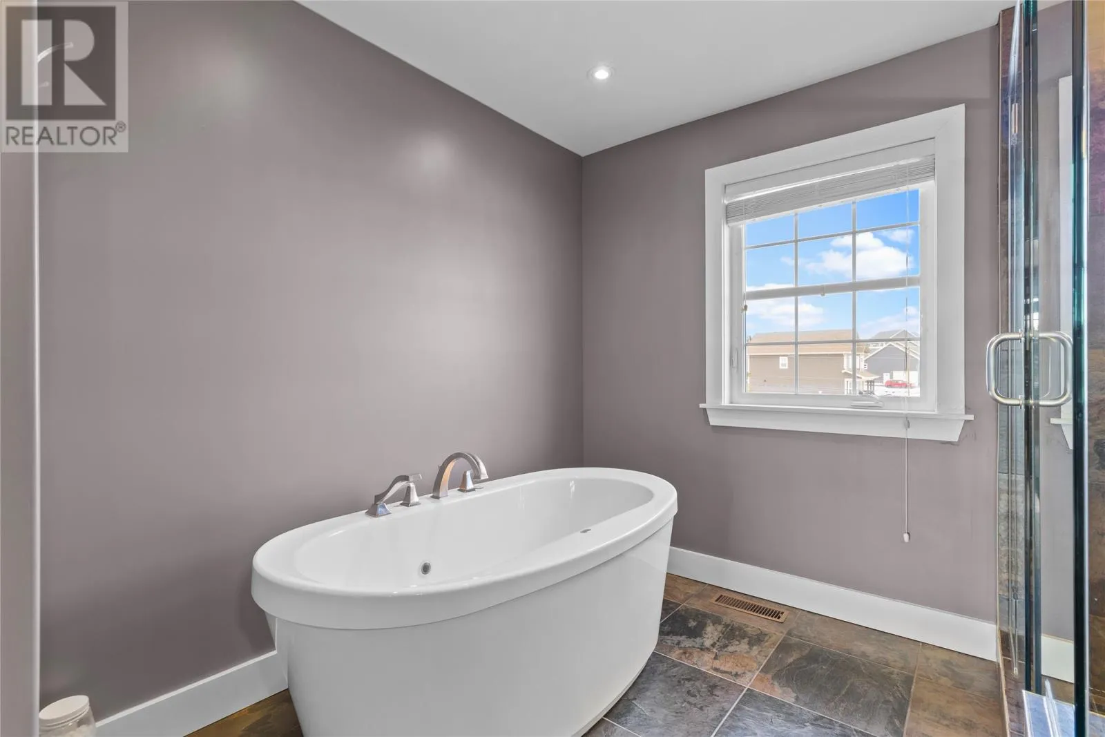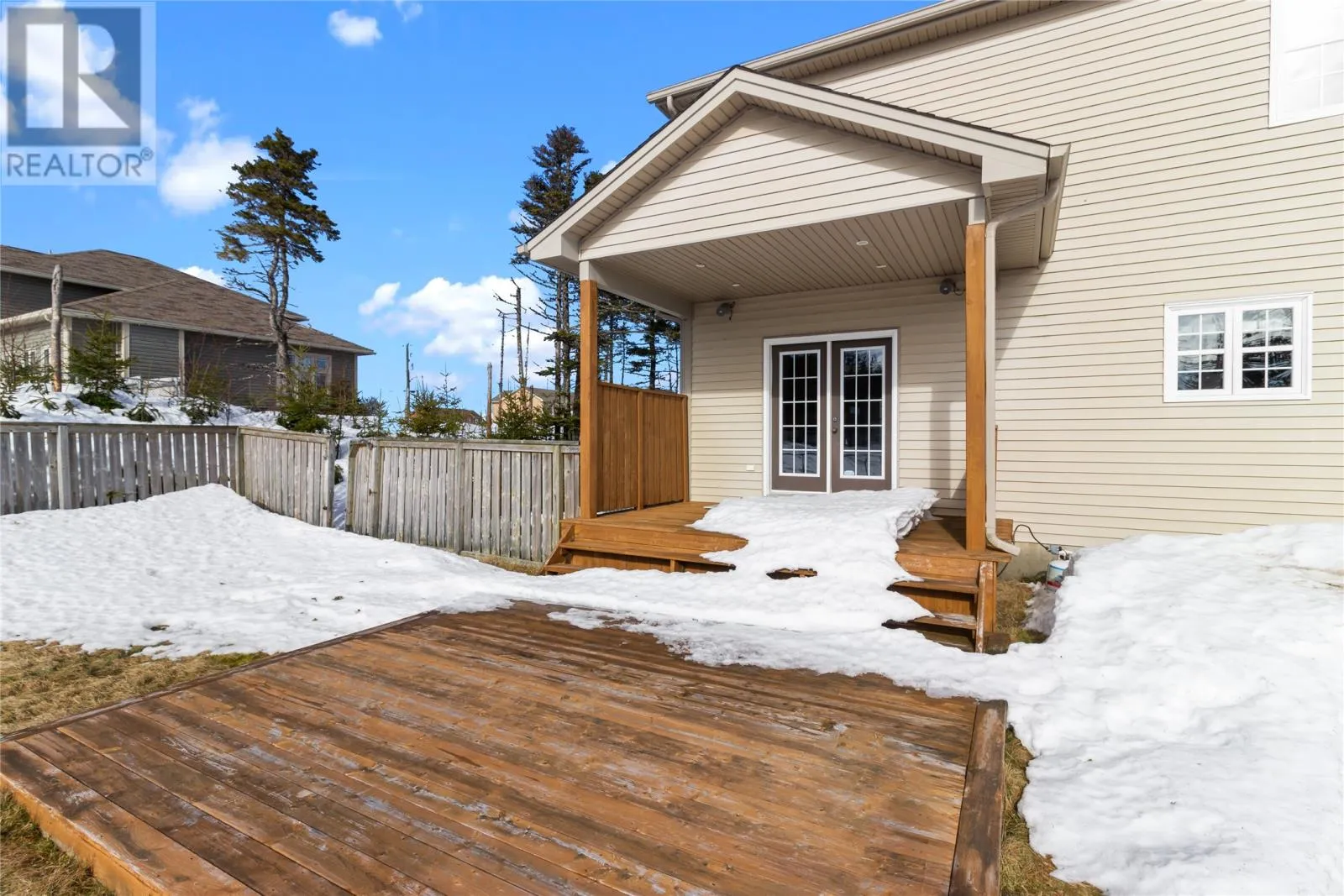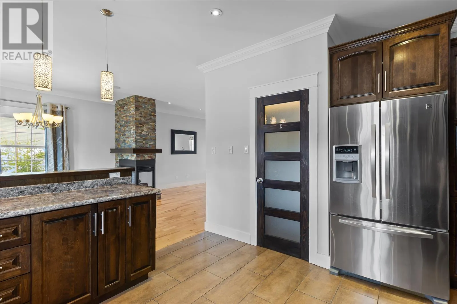 Welcome to 13 Nathaniel Drive in Torbay, a beautiful home located in a sought-after, family-friendly neighborhood. Situated on a large ¾ acre lot, this property offers plenty of space and privacy while backing onto a peaceful greenbelt. The fully fenced backyard features a patio with southern exposure, making it the perfect place to relax or entertain while enjoying all-day sun. Inside, the home offers a spacious and functional layout with 9-foot ceilings and a large kitchen and dining area thatâs perfect for family living and entertaining. The living/dining space is warm and inviting with a propane fireplace, creating a cozy atmosphere year-round. The main level features three bedrooms, including a primary suite complete with a large walk-in closet and private ensuite. For added comfort, the porch and ensuite both feature in-floor heating, while a heat pump provides efficient year-round heating and cooling. The home is also equipped with a generator panel and a variable speed water pump for added convenience and peace of mind. The basement provides additional living space with a large rec room, an extra bedroom, and a full bathroomâperfect for guests, a growing family, or a home office setup. For those who need extra storage or workspace, the property features both an attached garage and a large 24x32 detached garage that is fully wired and boasts 10-foot ceilings, making it ideal for a workshop, hobby space, or additional storage. Outdoor enthusiasts will appreciate being close to skidoo and ATV trails as well as nearby hiking opportunities and Voisey's Brook Park, a popular local park offering walking trails, playground areas, and green space to enjoy the outdoors. This is a fantastic opportunity to own a spacious home on a beautiful lot in one of Torbayâs most desirable areas. (id:27476)