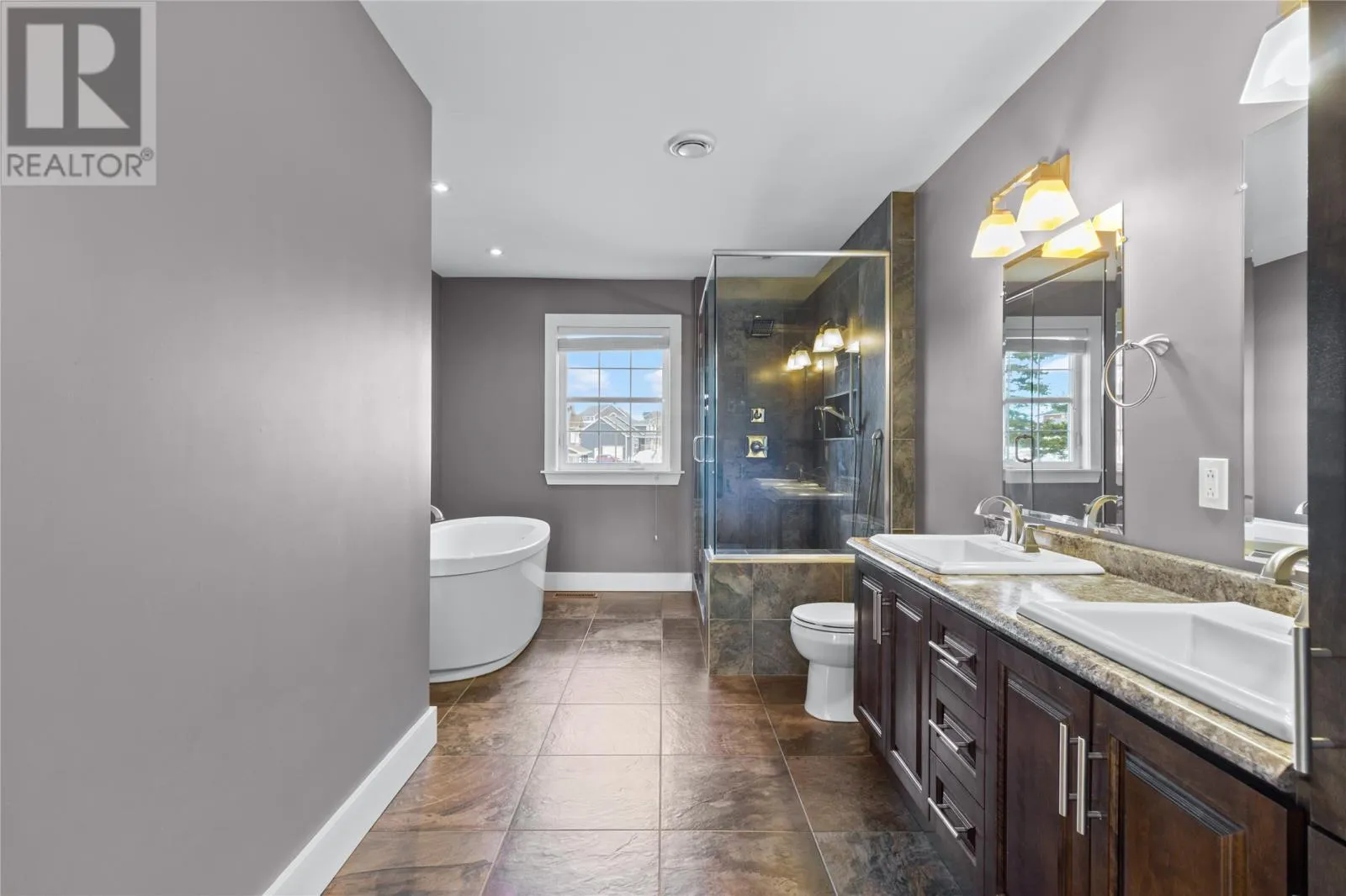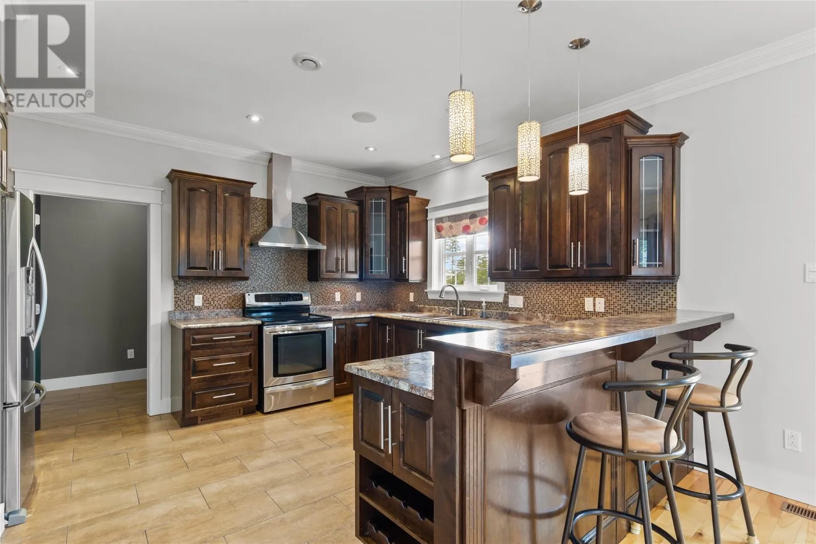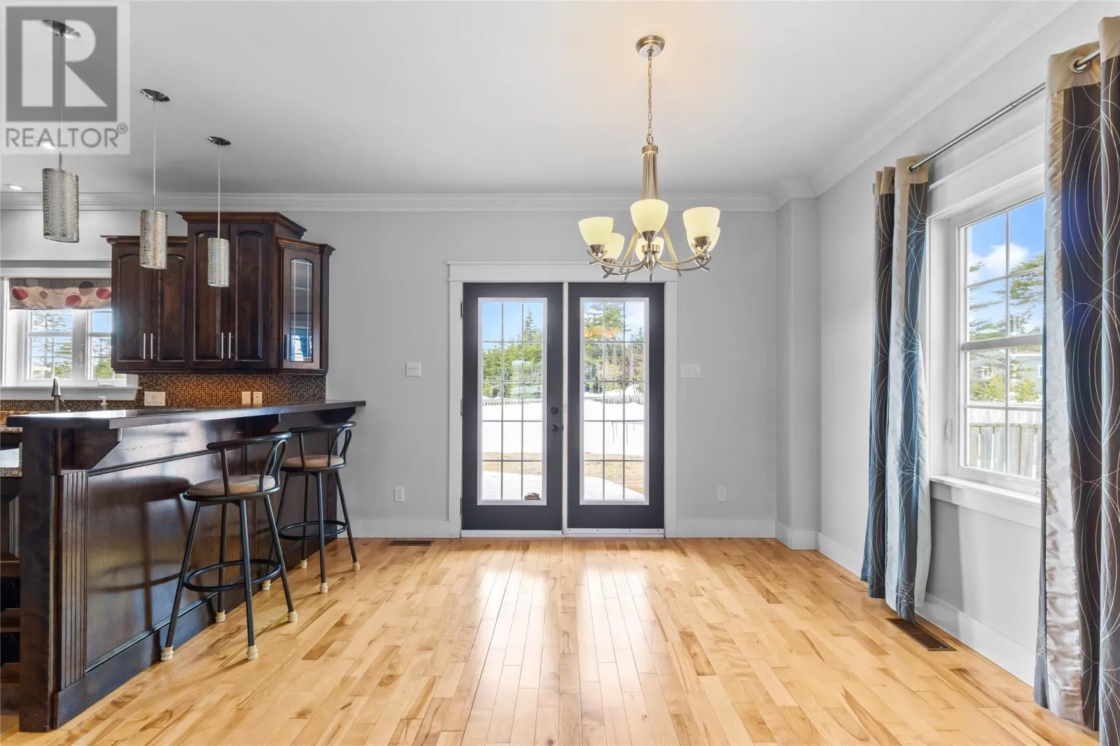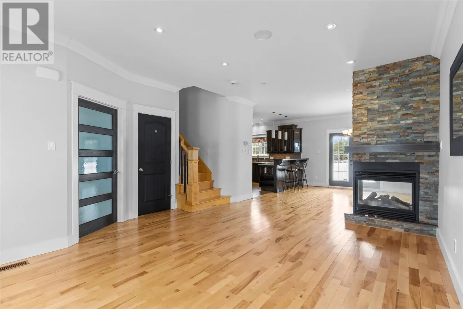 Welcome to 13 Nathaniel Drive in Torbay, a beautiful home located in a sought-after, family-friendly neighborhood. Situated on a large ¾ acre lot, this property offers plenty of space and privacy while backing onto a peaceful greenbelt. The fully fenced backyard features a patio with southern exposure, making it the perfect place to relax or entertain while enjoying all-day sun. Inside, the home offers a spacious and functional layout with 9-foot ceilings and a large kitchen and dining area thatâs perfect for family living and entertaining. The living/dining space is warm and inviting with a propane fireplace, creating a cozy atmosphere year-round. The main level features three bedrooms, including a primary suite complete with a large walk-in closet and private ensuite. For added comfort, the porch and ensuite both feature in-floor heating, while a heat pump provides efficient year-round heating and cooling. The home is also equipped with a generator panel and a variable speed water pump for added convenience and peace of mind. The basement provides additional living space with a large rec room, an extra bedroom, and a full bathroomâperfect for guests, a growing family, or a home office setup. For those who need extra storage or workspace, the property features both an attached garage and a large 24x32 detached garage that is fully wired and boasts 10-foot ceilings, making it ideal for a workshop, hobby space, or additional storage. Outdoor enthusiasts will appreciate being close to skidoo and ATV trails as well as nearby hiking opportunities and Voisey's Brook Park, a popular local park offering walking trails, playground areas, and green space to enjoy the outdoors. This is a fantastic opportunity to own a spacious home on a beautiful lot in one of Torbayâs most desirable areas. (id:27476)