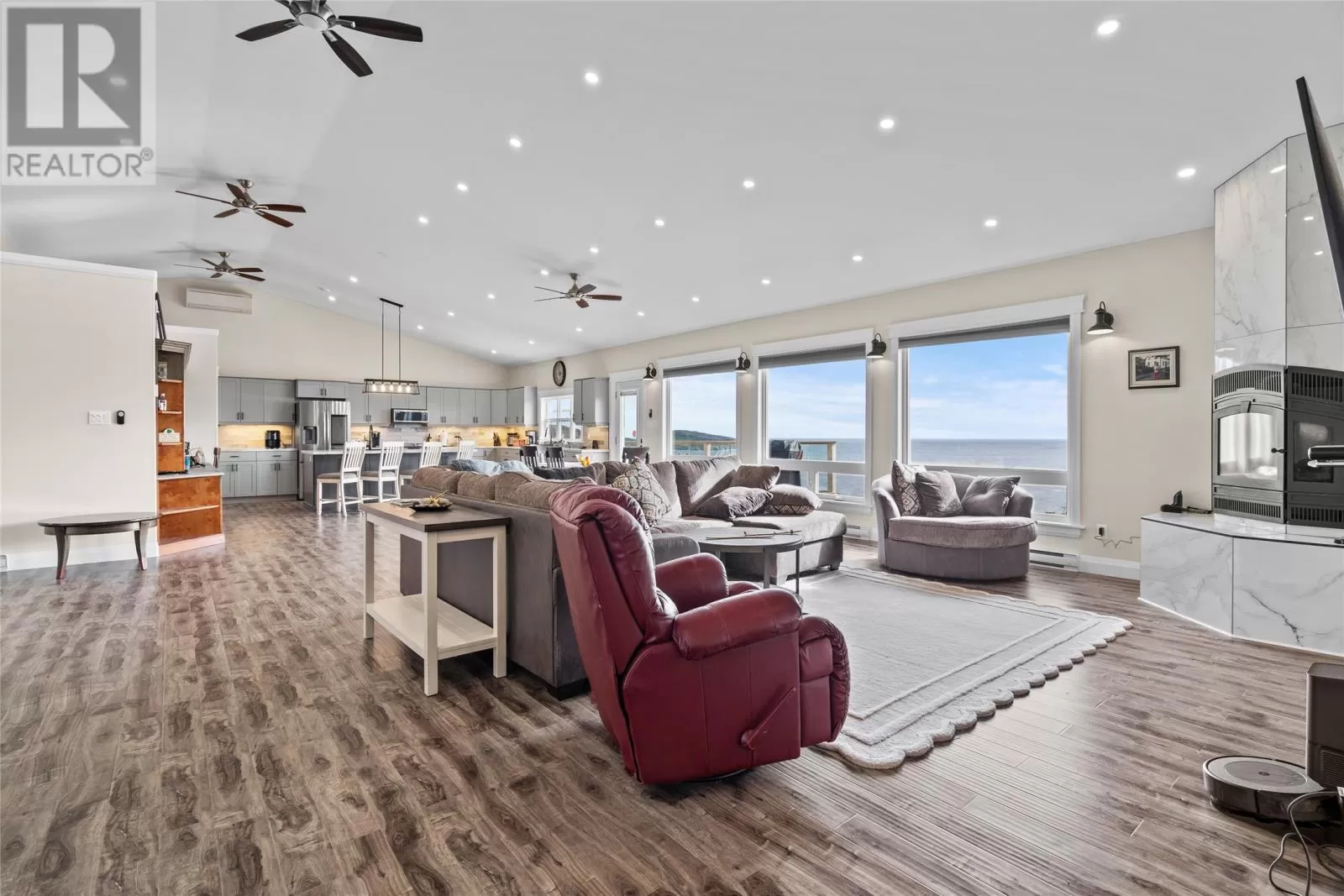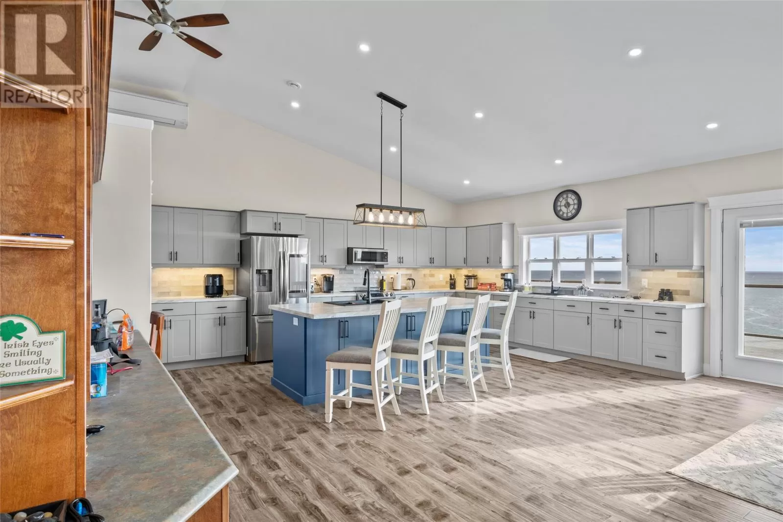 BREATHTAKING MILLION DOLLAR OCEAN VIEW PROPERTY .THIS STUNNING OCEANFRONT HOME IS SITUATED 0N 2 ACRES OF LAND IN PICTURESQUE BAULINE EAST ON THE BEAUTIFUL IRISH LOOP DRIVE COAST JUST 30 MINUTES FROM HECTIC CITY LIFE. THIS SLAB ON GRADE CUSTOM DESIGNED HOME BOASTS 4,500 SQ FT OF LIVING SPACE. BUILT WITH CARE AND PRIDE OF OWNERSHIP , IT SHOWCASES A MODERN DESIGN WITH FOUR BEDROOMS AND 3.5 BATHROOMS. FEATURES INCLUDE MASSIVE EATIN KITCHEN WITH AN ABUNDANCE OF QUALITY DESIGNED CABINETRY, /PANTRY, SPACIOUS GREAT ROOM WITH FIREPLACE TO SIT AND ENJOY EVENINGS WITH AMAZING VIEWS OF THE ATLANTIC OCEAN.MASTER SUITE IS ENORMOUS WITH 4 PC ENSUITE AND A MASSIVE WALK-IN CLOSET AND THREE OTHER WELL APPOINTED BEDROOMS WITH VIEWS ,TV ROOM , OFFICE AND LAUNDRY AREAS . A PEACEFUL AND PRIVATE RETREAT, COMBINING COMFORT AND ELEGANCE IN A SERENE OCEANFRONT SETTING.THE INTERIOR IS ADORNED WITH QUALITY FINISHES, ATTACHED HEATED GARAGE, AND A CAPTIVATING OVERSIZED DECK/PATIO. WITH ITS PRIME WATERFRONT LOCATION, THIS HOME INVITES YOU TO EXPERIENCE THE TRANQUILITY OF COASTAL LIVING. WHALE & BIRD WATCHING AT ITS FINEST. ENJOY THE CALM AND TURBULENT WATERS OF THE ATLANTIC OCEAN AT YOUR DOORSTEP:THIS UNIQUE HOME SITUATED ON THE EDGE OF THE CLIFF IS A RARE FIND IN NEWFOUNDLAND. YOU CAN OWN YOUR OWN PRIVATE OASIS. (id:27476)