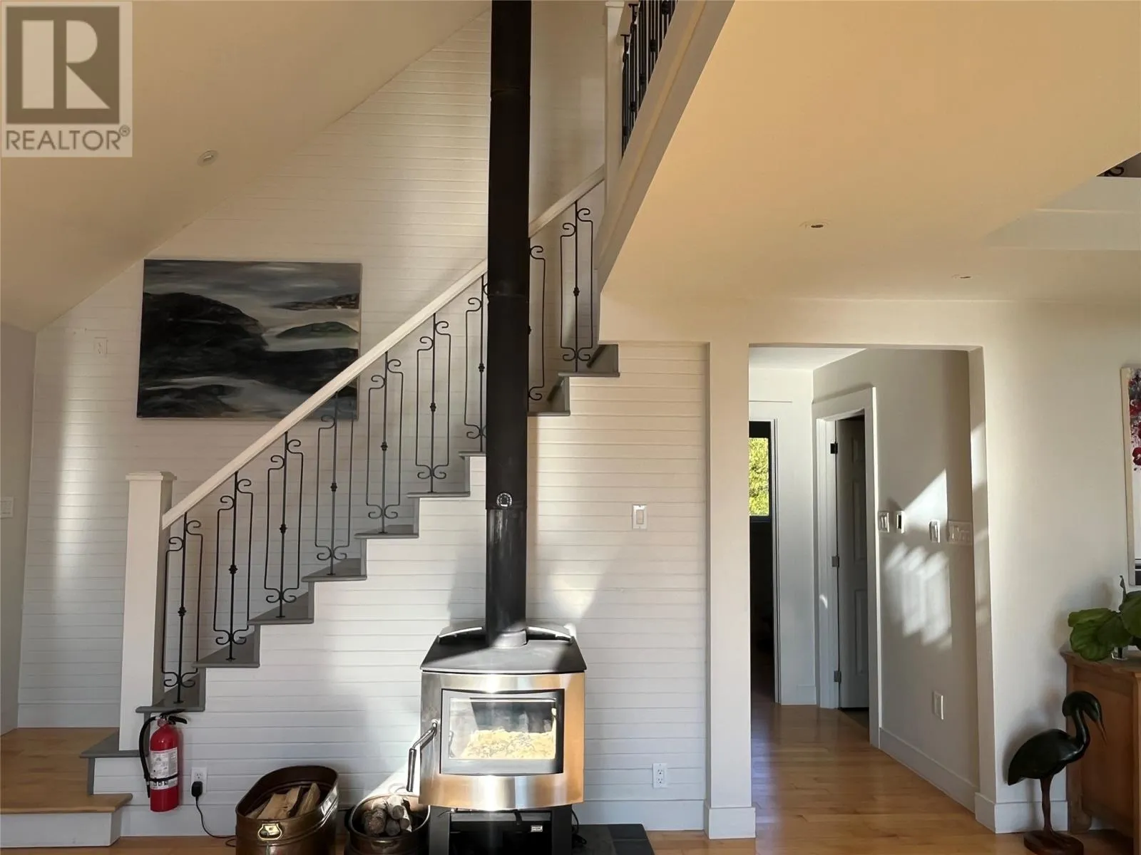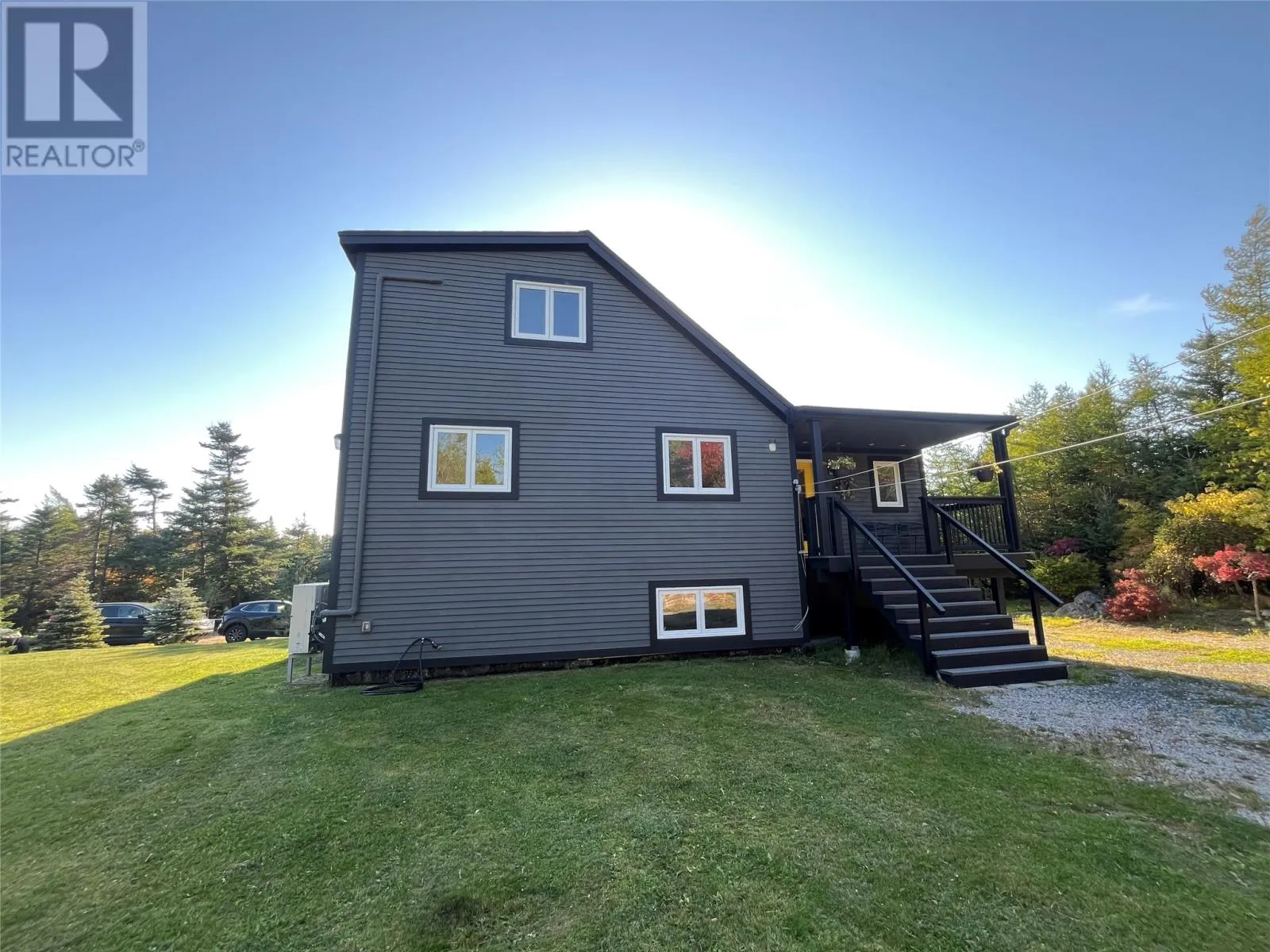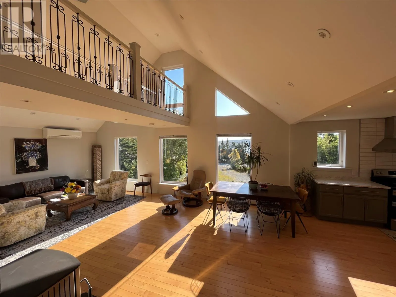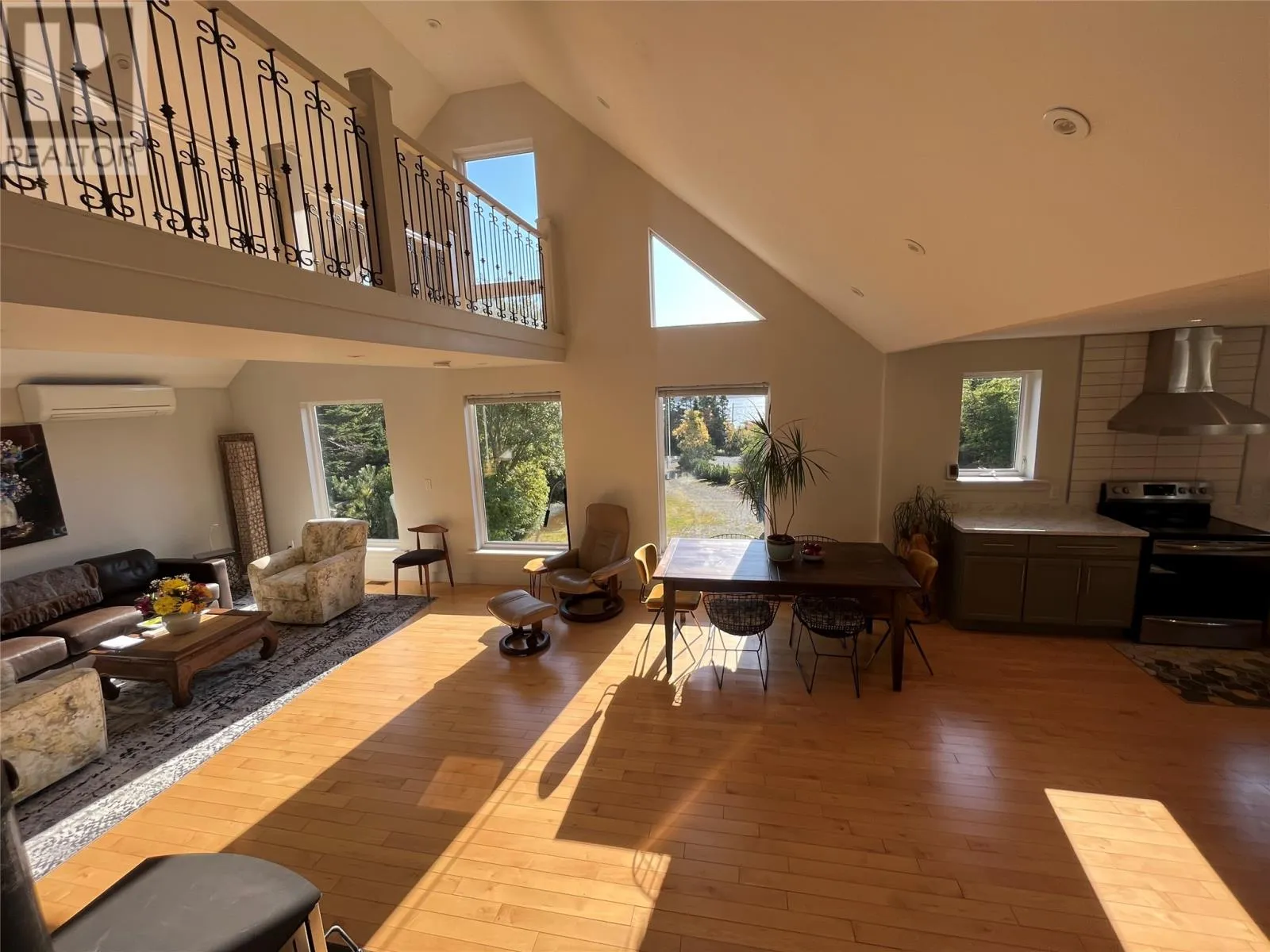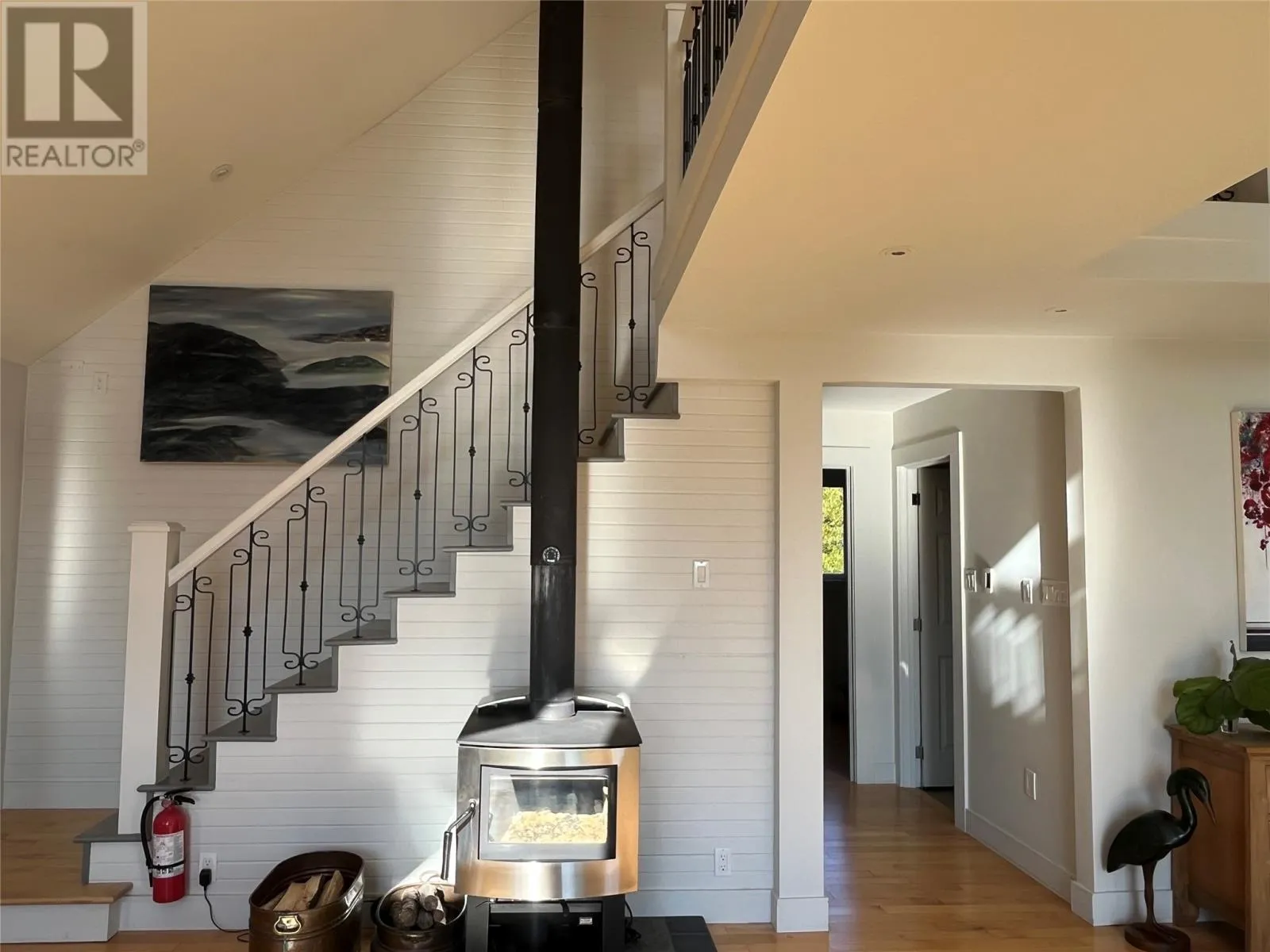 VIEW PROPERTY! PRIVACY GALORE! Spectacular views of Tors cove pond from this adorable A Frame home just 35 minutes from St Johns. This amazing home offers an open concept design main floor, kitchen, dining, and living room area with 16 ft vaulted ceilings and a cosy woodstove for great ambience. Delightful kitchen with modern decor cabinetry /center island, two average sized bedrooms with full bath, as well as main floor laundry. This property is cheerful and bright with an abundance of natural light shining through the oversized windows accentuating local pond views. On the second level, you will find the master bedroom complete with en suite /heated floor and double closets . The lower level has all aboveground windows with a walkout basement where you will find a TV room and a large family room as well as an in-house 13 x 26 garage for storing all those recreational toys or workshop area. This is a meticulously well cared for property with gleaming maple hardwood floors throughout. Lots of attention to detail. This property offers three sources of heat, mini split ,electric furnace as well as a woodstove. New hot water tank . Exterior is spruce clapboard stained with a 3/4 in cavity. New septic in recent years. Just a few minutes off route 10 in beautiful Tors Cove . (id:27476)