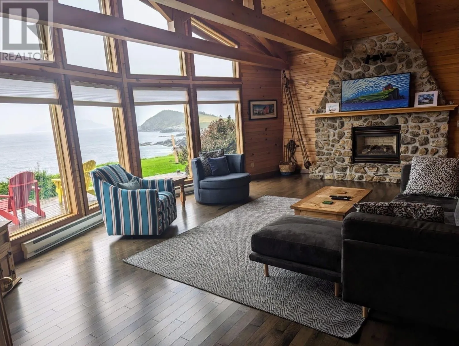 With 400 feet of ocean frontage and situated on nearly three acres of private property, about as far east as you can go in North America, this home is truly a rare gem. Relax on your front deck and take in sweeping ocean views or take a walk down to the oceans edge, in the world-renowned Cribbies area of Tors Cove which also makes up part of the East Coast Hiking Trail. With unobstructed views, abundant wildlife, seabirds, whales, and even passing icebergs, youâll feel like you were meant to be here. Step inside and your eyes are immediately drawn to the bright, open-concept living space, highlighted by a beautifully handcrafted stone propane fireplace. Vaulted ceilings and expansive windows frame the breathtaking ocean views, while the exposed wood beam construction showcase the homeâs warmth and craftsmanship. Thereâs no bad seat in the house. The home features a spacious, well-appointed bathroom complete with an accessible shower and convenient laundry. Two generously sized bedrooms offer peaceful retreats, where you can imagine waking each morning to the sound of waves crashing and seabirds going about their day. The property also has a 16x24 detached garage which, with a little effort, could potentially be converted into a bunkie-style space for guests. Built in 1998, this property has seen some upgrades in recent years, including: New septic tank (2022) New hot water tank; New shingles on home & garage; New stainless steel appliances, countertops, backsplash (2023) Most windows replaced (2024) Whether youâre looking for a coastal retreat or a once-in-a-lifetime view to call your own, this property delivers privacy, natural beauty, and modern updates in one unforgettable package. For anyone thinking about using this as an investment property, you'll be happy to hear that it's already proven to be a success. Check out the VRBO link, (https://rem.ax/Cribbies) With the right vision, additional cabins can be strategically placed to add to your investment! (id:27476)