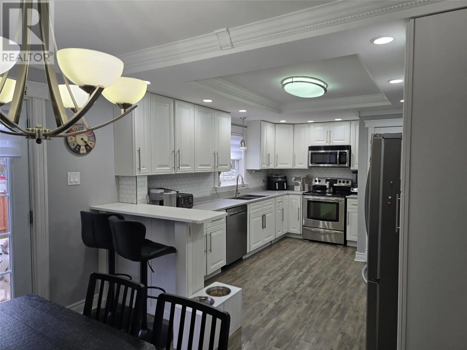 This beautiful duplex has so much to offer â bright, welcoming spaces and thoughtful touches throughout. The kitchen features crisp white cabinets, stainless steel appliances, and a unique eating peninsula that was once a piano â it even still has the original barcode, giving the space a touch of character and edge you wonât find anywhere else. The layout flows nicely between the kitchen, dining, and living areas, making it easy to entertain or just enjoy everyday family life. Crown moldings add a nice finishing touch, and the overall feel is modern, airy, and comfortable. Upstairs youâll find three bedrooms and a full bathroom with a tub and shower. The lower level adds even more living space, with a fourth bedroom, another full bath with a shower, and an amazing entertainment area complete with a bar â perfect for hosting friends, watching the game, or enjoying a movie night. Outside, there are three back decks, including a lower one thatâs been reinforced for a hot tub â great for relaxing and entertaining. The home features vinyl laminate flooring on the main level, a roof updated around 2017, and single hung windows and exterior doors replaced in 2017. Located in a well established area, this home is perfect for a growing family, first-time buyers, or anyone looking for a comfortable, move-in-ready space for a family with plenty of personality. This one truly has to be seen to be appreciated! (id:27476)