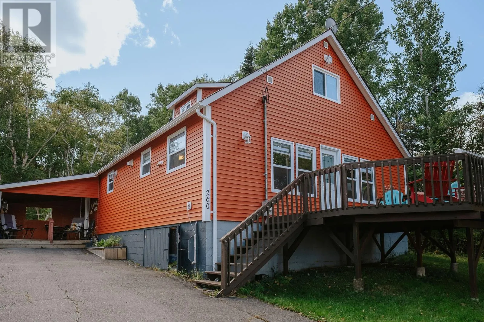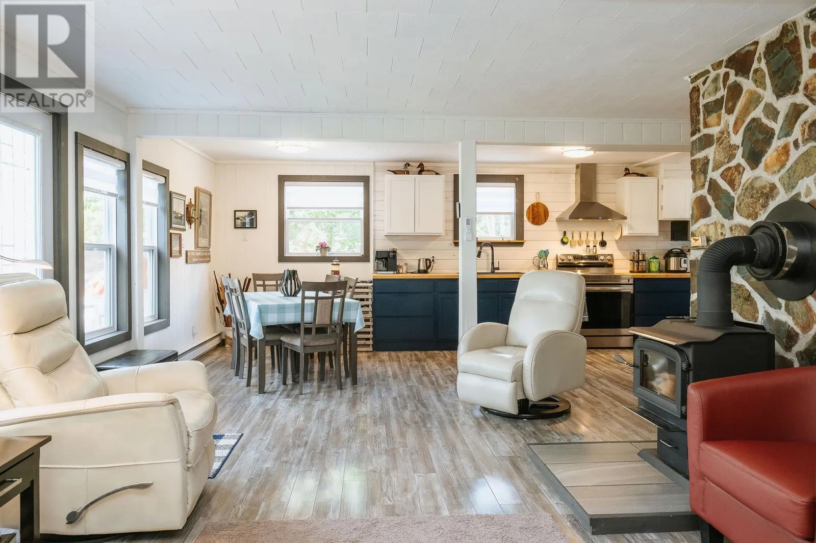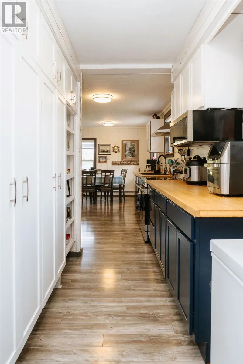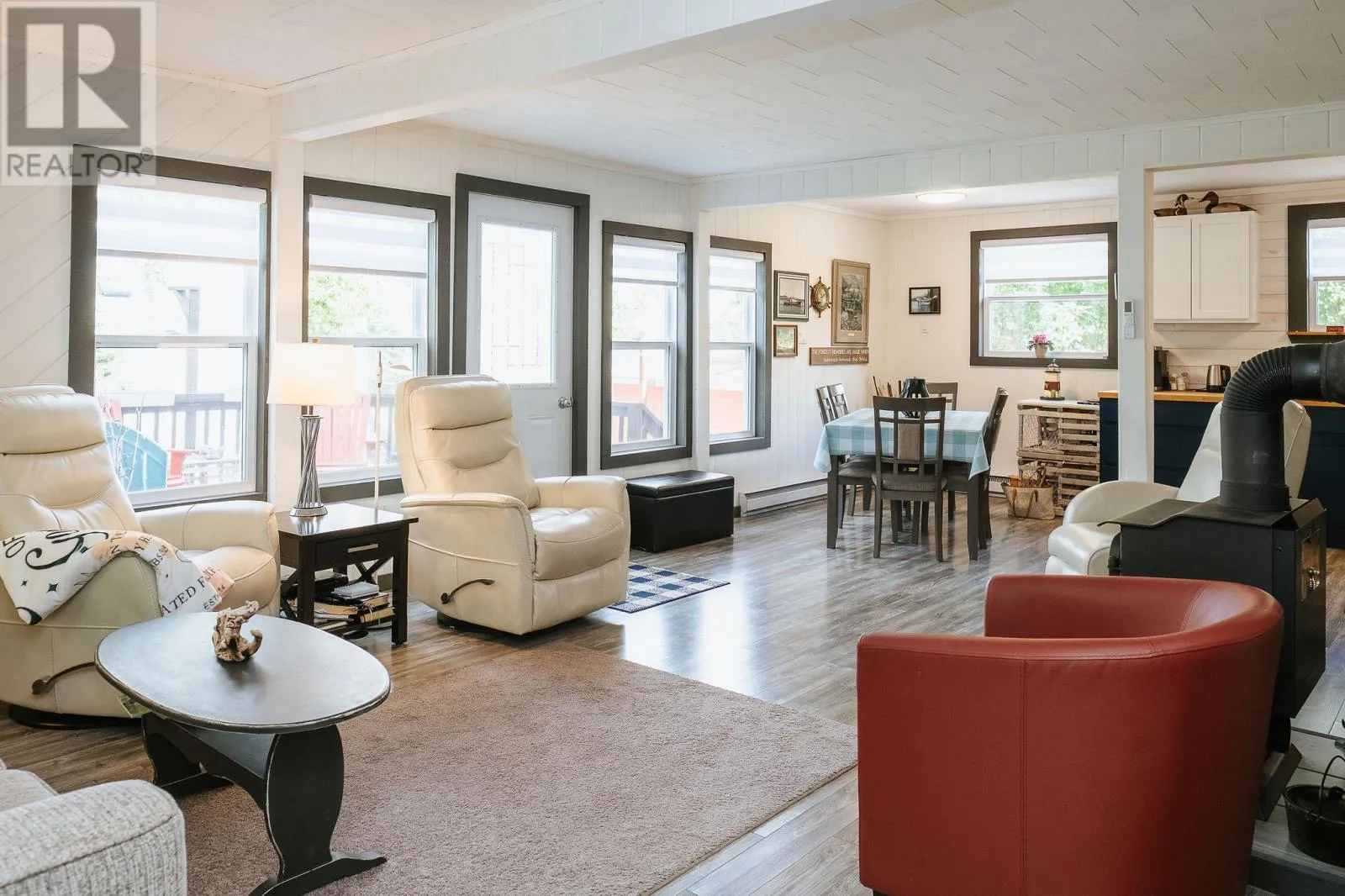 Welcome to 260 Main Street in Traytown! This move-in ready, three-bedroom storey-and-a-half home is perfect as a full-time residence, a four-season getaway, or vacation property. Tucked away on a secluded lot on the Road to the Beaches, itâs just minutes from Glovertown's amenities, and the wilderness of Terra Nova National Park. Step inside the bright, open-concept living space where wide-plank flooring, white walls, and bold trim create a clean, modern feel. Diagonal paneling adds charm, and large windows fill the room with natural light. A stone accent wall with a WETT-certified wood stove brings warmth and character, making this the perfect spot to gather with family and friends. The updated kitchen features two-tone cabinetry, butcher-block counters, and stainless steel appliances, with plenty of space for cooking and entertaining. Upstairs, two good-sized bedrooms and a convenient powder room; on the main level, a third bedroom and full bath with a bold accent wall, white shiplap, and wood vanity. The laundry/back porch keeps life organized with beadboard walls, wood-look floors, washer and dryer, chest freezer, open shelving, and a mini-split for comfort. Outdoors, enjoy a covered side patio for barbecues and a front deck with sweeping ocean views where you can relax morning to night. Across the street, the property includes its own oceanfront land with septic in place - ideal for a future boathouse or outbuilding. Recent upgrades include two mini-splits, electric baseboard heat, new 200-amp service, PEX plumbing, and updated windows and siding within five years. With an RV plug and sewer hookup, itâs ready for guests or your own rig. This isnât just a house, itâs a lifestyle - summer mornings on the deck, cozy winter nights by the fire, and weekends exploring Terra Nova and Eastportâs beaches are all waiting for you here. (id:27476)