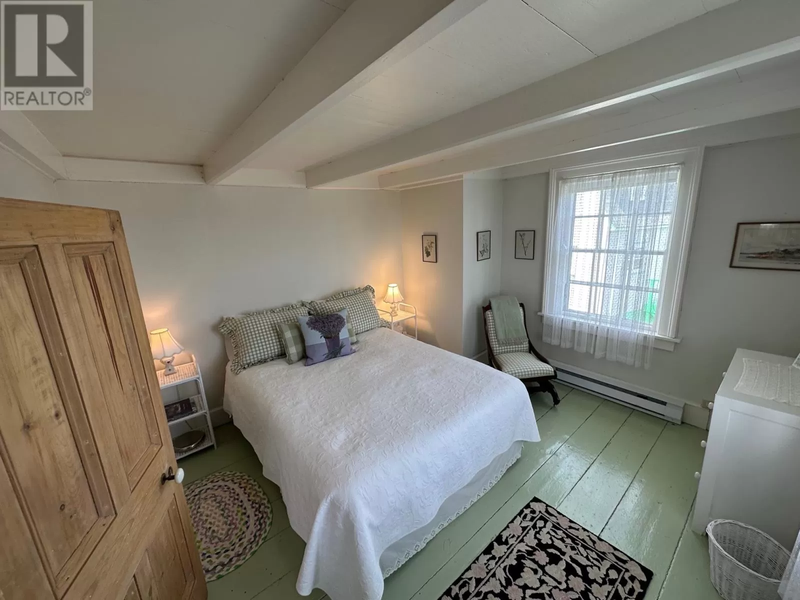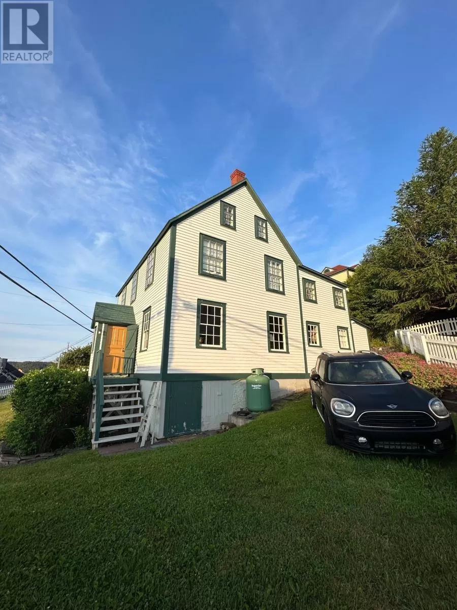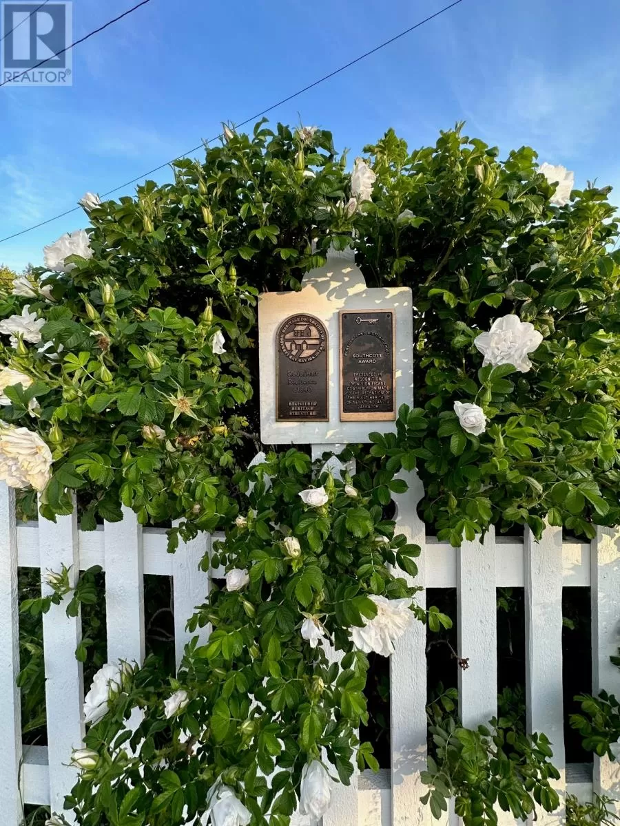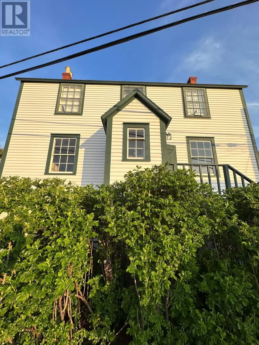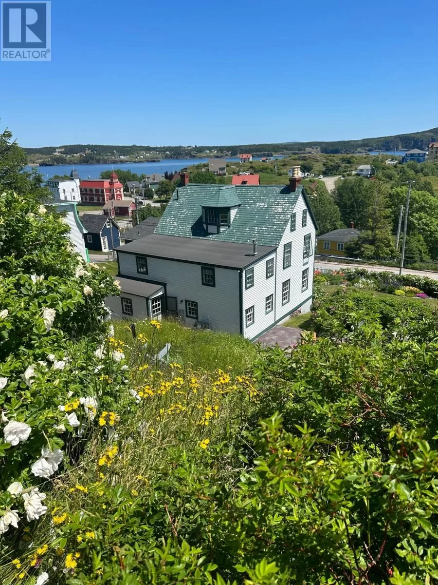 Slade / Hart House c. 1840, a Southcott Award winning registered heritage structure is one of if not the finest pieces of mercantile vernacular architecture in historic Trinity, centrally located on well landscaped grounds which include an abundance or herbaceous perennials, shrubs, berries, rhubard, herbs and vegetables. The 2 1/2 story saltbox with substantial two story linhay is of robust balloon frame construction with solid wood 2.5 inch full studded pit sawn and splined exterior walls, with interior recessed diagonal corner bracing. The current owners purchased the house which lay vacant for 25 years . A full restoration was undertaken to bring the house to current standards while preserving the integrity of interior and exterior traditional architecture. The kitchen includes recently laminated birch countertops, and it opens to the large family room fitted with new chimney and wood stove. The dining room with propane FP can host large dinner gatherings and adjacent formal living room, also with a FP. There is a full bathroom and laundry room on the main. The second level has a large master with FP, a second substantial bedroom and a large linhay, the width of the house, currently with two beds, sitting and office area. The attic with unique bell dormer has two additional finished rooms . All rooms of the house boast great views of the harbour and garden, especially on upper levels. Some of the well curated furnishings can be negotiable. The earliest closing date to accommodate the owners would be on Oct 15, 2025. (id:27476)