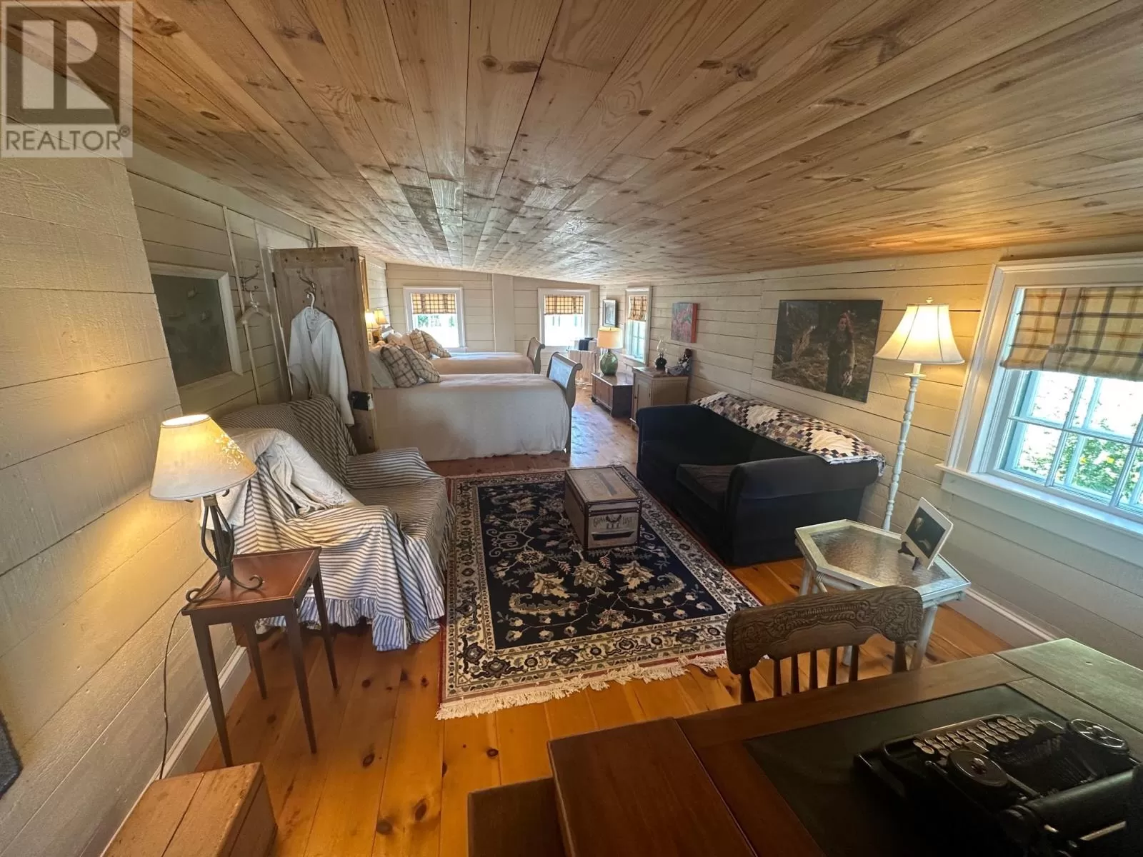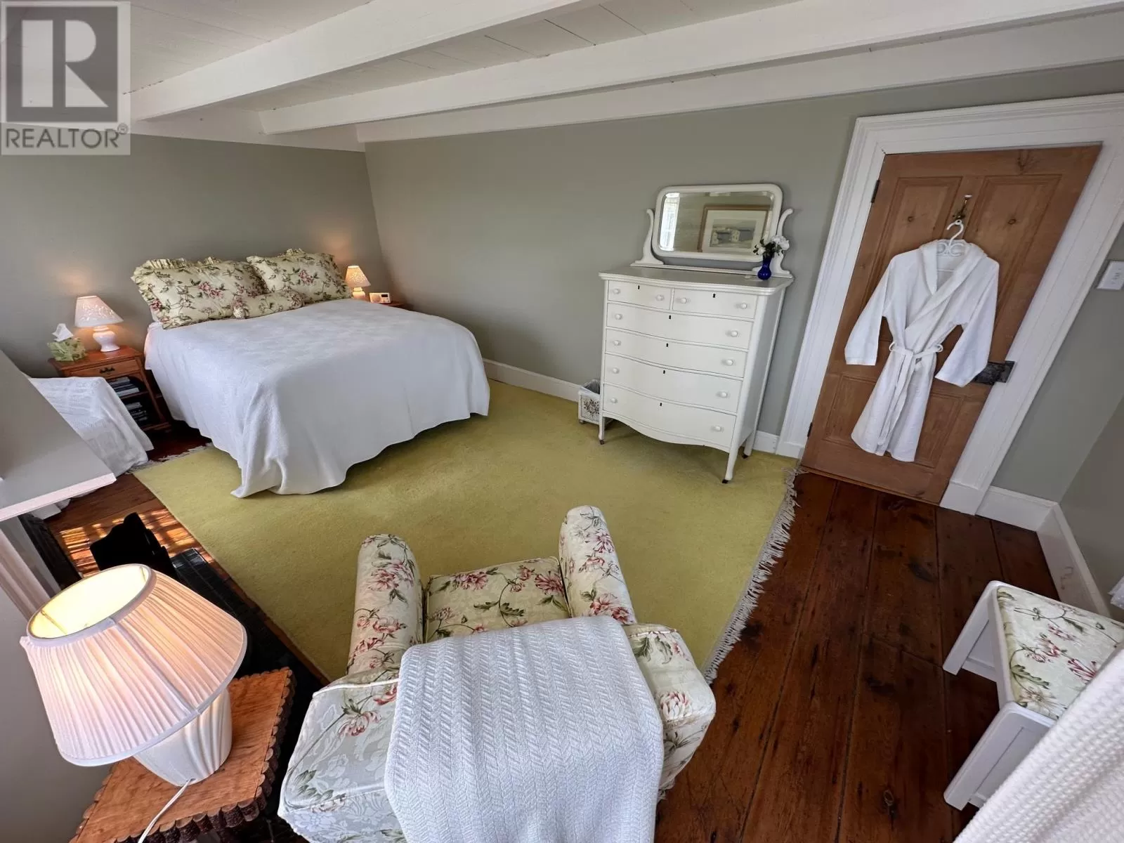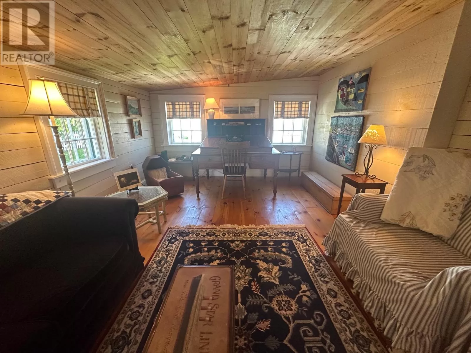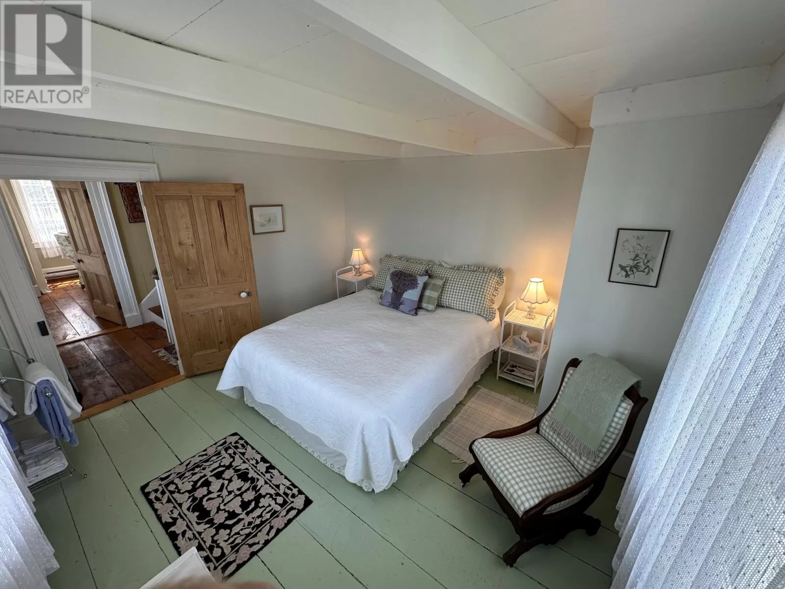 Slade / Hart House c. 1840, a Southcott Award winning registered heritage structure is one of if not the finest pieces of mercantile vernacular architecture in historic Trinity, centrally located on well landscaped grounds which include an abundance or herbaceous perennials, shrubs, berries, rhubard, herbs and vegetables. The 2 1/2 story saltbox with substantial two story linhay is of robust balloon frame construction with solid wood 2.5 inch full studded pit sawn and splined exterior walls, with interior recessed diagonal corner bracing. The current owners purchased the house which lay vacant for 25 years . A full restoration was undertaken to bring the house to current standards while preserving the integrity of interior and exterior traditional architecture. The kitchen includes recently laminated birch countertops, and it opens to the large family room fitted with new chimney and wood stove. The dining room with propane FP can host large dinner gatherings and adjacent formal living room, also with a FP. There is a full bathroom and laundry room on the main. The second level has a large master with FP, a second substantial bedroom and a large linhay, the width of the house, currently with two beds, sitting and office area. The attic with unique bell dormer has two additional finished rooms . All rooms of the house boast great views of the harbour and garden, especially on upper levels. Some of the well curated furnishings can be negotiable. The earliest closing date to accommodate the owners would be on Oct 15, 2025. (id:27476)
