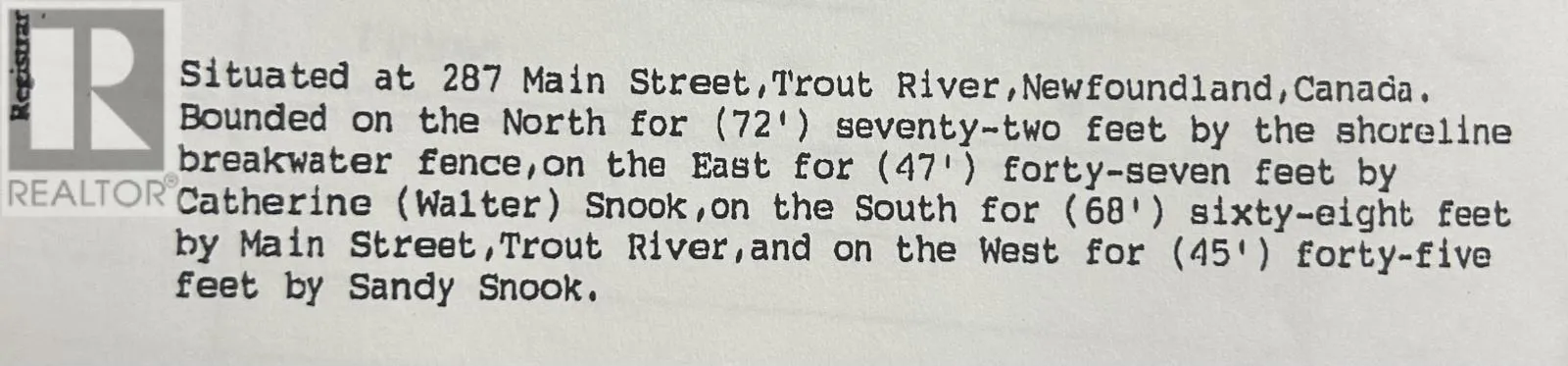 RARE FIND IN TROUT RIVER!! This 3218 sq ft lot offers breathtaking views of the ocean that we often take for granted! On the lot sits a small cabin that is fully functional .Municipal water and sewer to the property. Cabin is coming as is where is. Not often does an opportunity come by like this so don't take for granted the beauty that this property offers (id:27476)