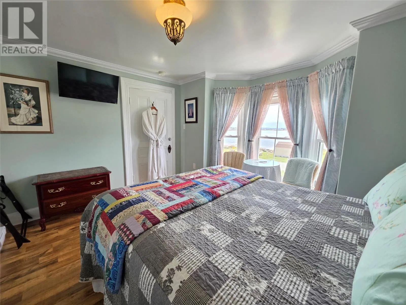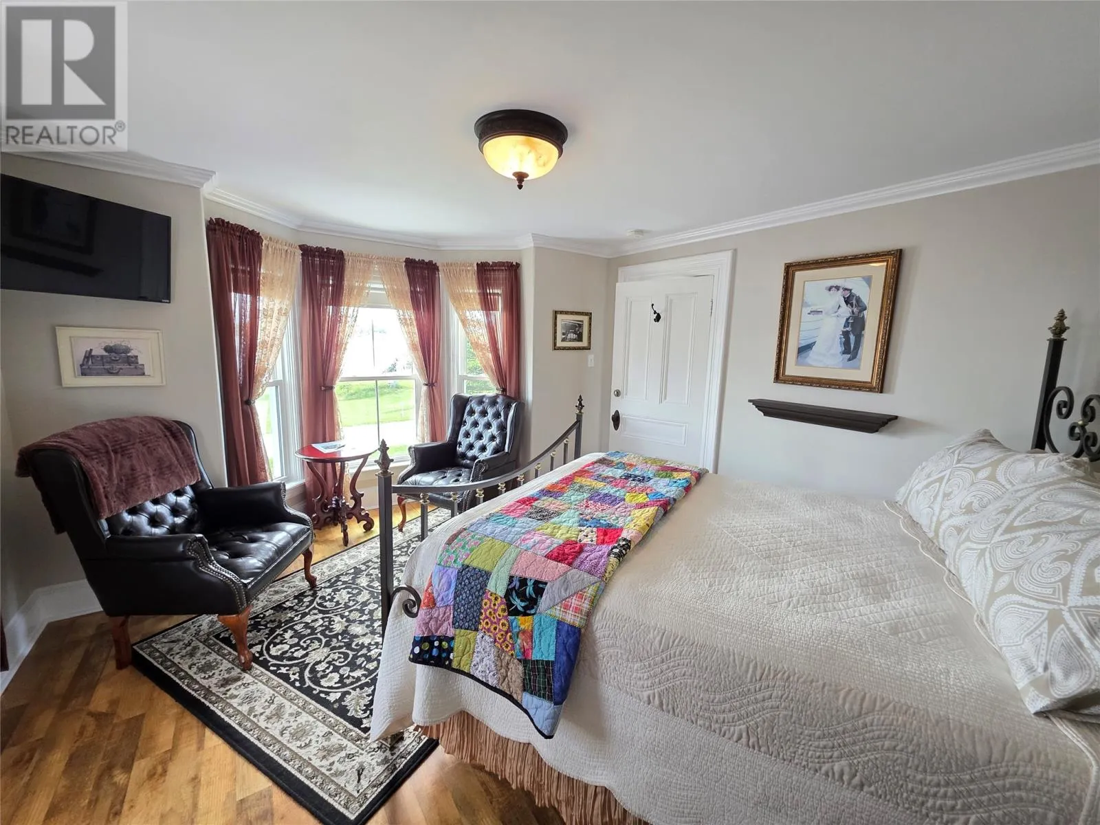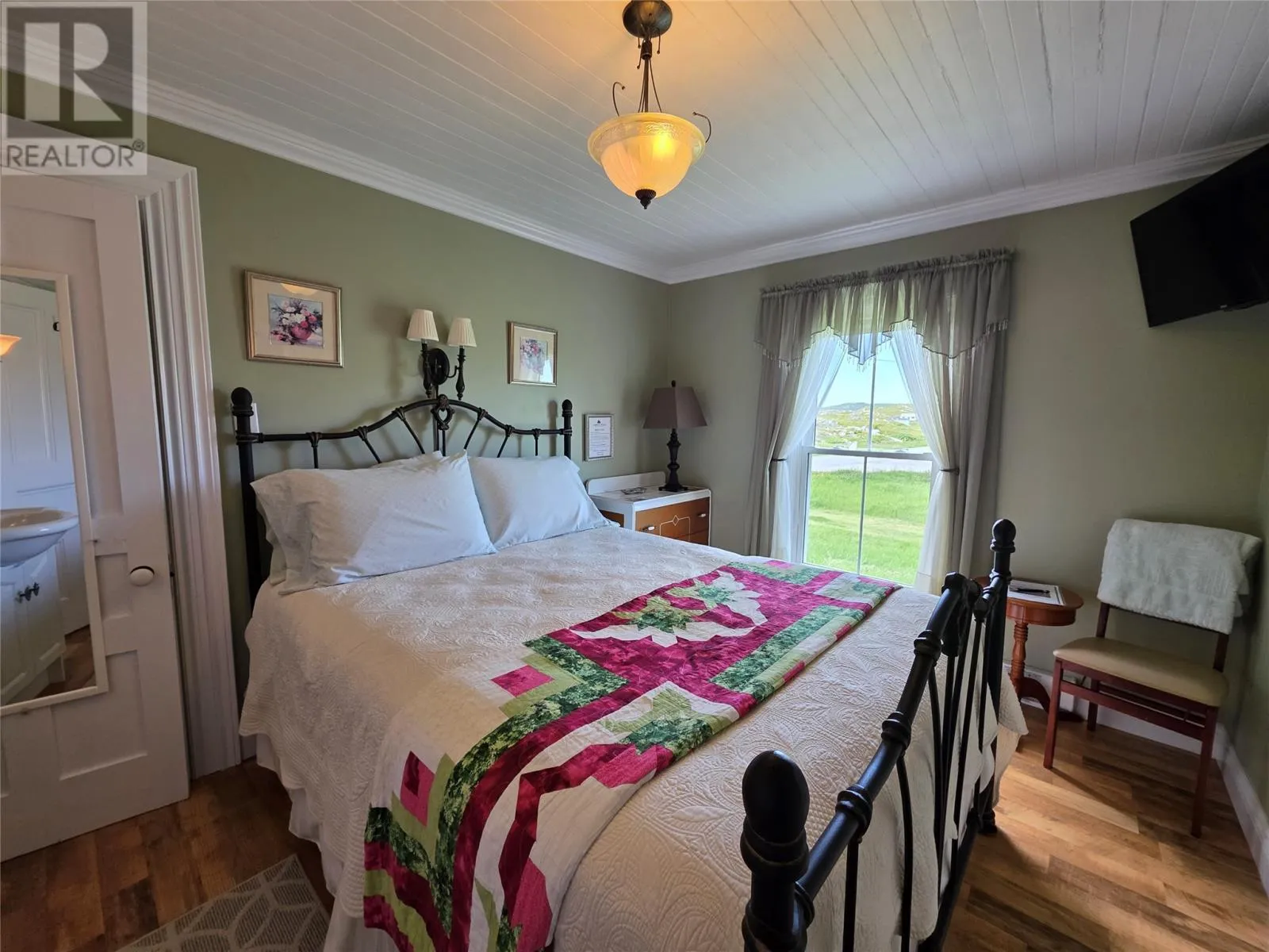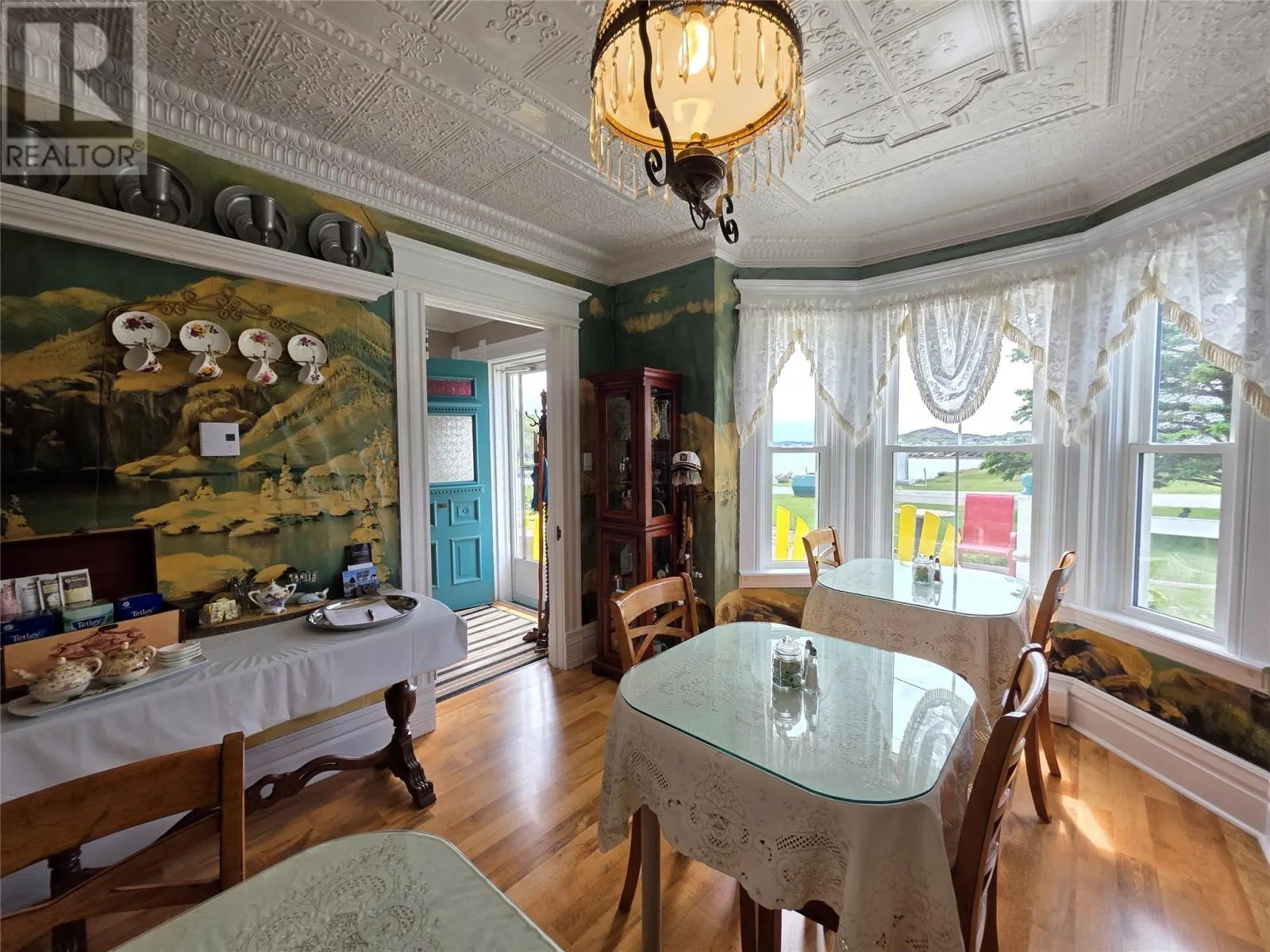 Step into a living piece of Newfoundland history with this breathtaking oceanfront bed and breakfast, now available in the heart of Twillingate. Built by hand in the 1880s by master furniture maker Ephram Jacobs, this home has been lovingly preserved by just two families over the past 110 years. Operating for over 20 years, Captain's Legacy Historic Bed & Breakfast is a strong brand, the top rated bed & breakfast in Twillingate and one of the 5 top rated traveler reviewed bed & breakfast establishments in Newfoundland and Labrador. It still boasts original millwork, staircases, spindles, solid wood doors, hardware, and even a few original hanging light fixturesâtestament to the craftsmanship of a bygone era. The main floor features 9-foot ceilings finished with pressed zinc, imported from Italy in 1912 for Jacobsâ daughterâs wedding. That same year, a beautiful pump organ was gifted and still stands in the dining room. Look closely and youâll see that the dining room walls are lined with hand-painted sailclothâan early work by an up-and-coming artist of the time. The home offers four charming guest bedrooms, each with a private ensuite, plus a third-floor ownerâs retreat complete with a full bath, living area, and a bedroom with sweeping ocean views. The main level includes a grand entrance, cozy guest living room, guest-use kitchen, formal dining space, office, and one guest room. To the rear, youâll find the ownerâs private kitchen, laundry, and service entrance. Outside, the property stretches across the road to the oceanâs edge and includes a two-story outbuilding with incredible potentialâperfect for additional guest suites, a studio, or workshop. Whether you're seeking a turnkey business or a remarkable heritage home by the sea, this property is one of Twillingateâs rarest finds. (id:27476)