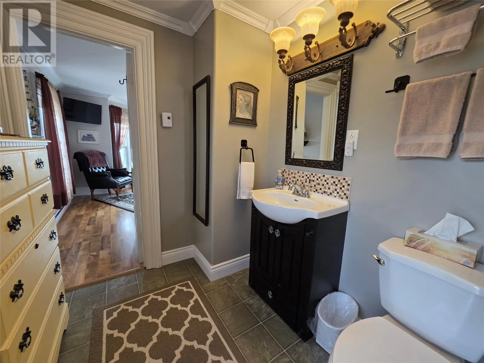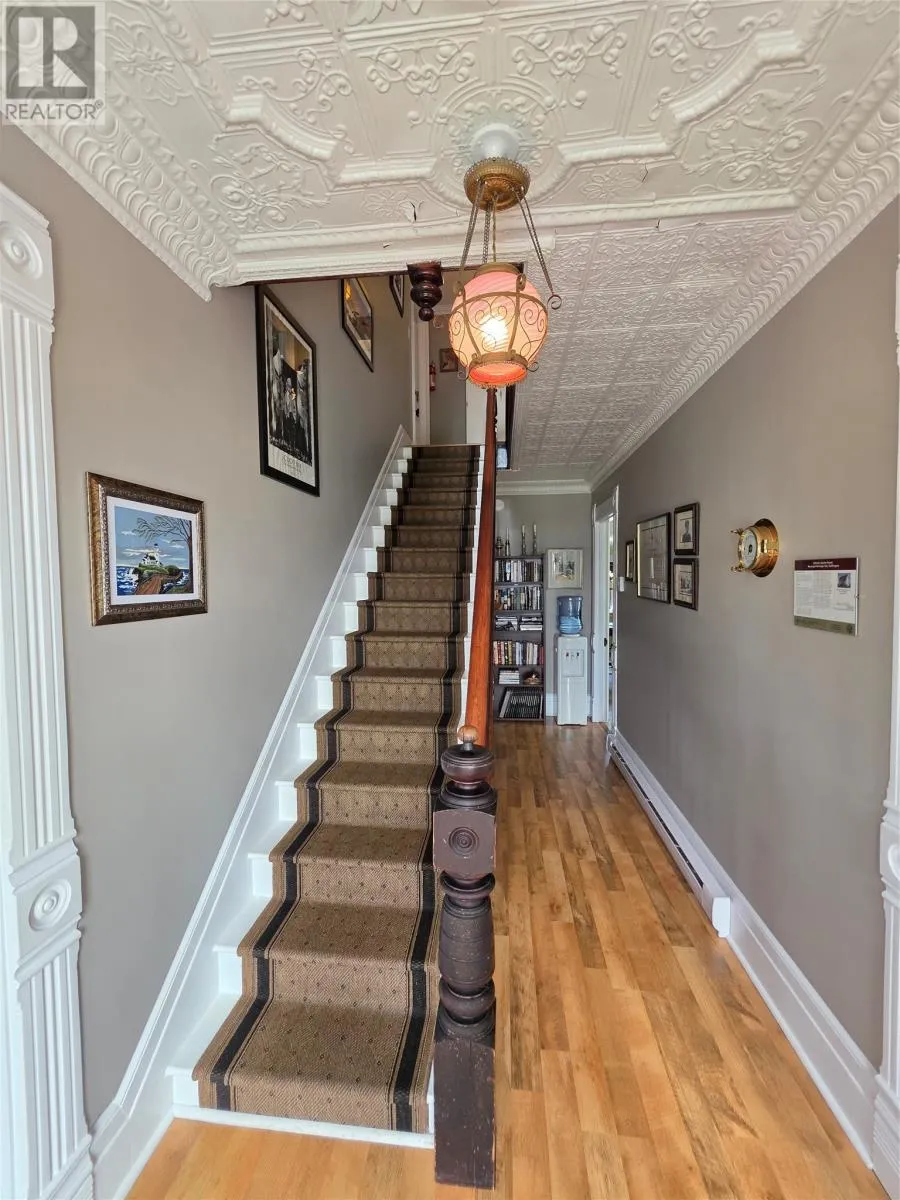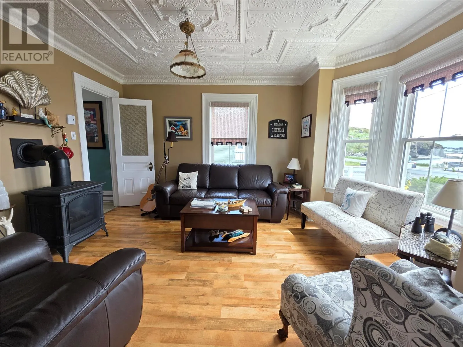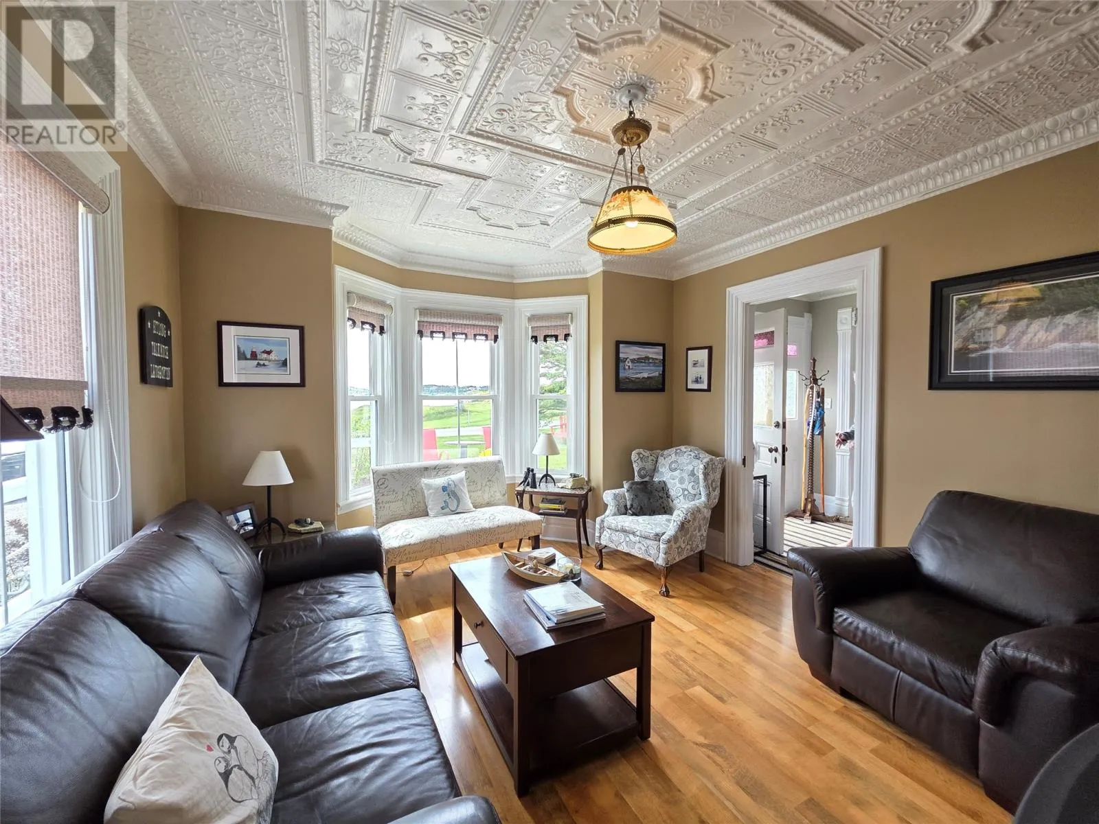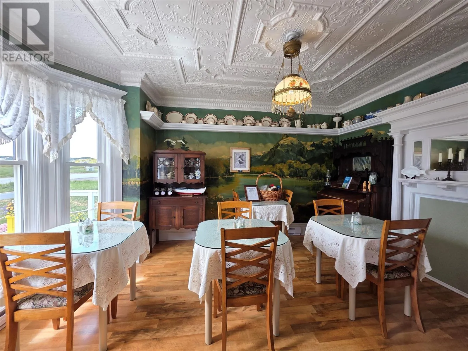 Step into a living piece of Newfoundland history with this breathtaking oceanfront bed and breakfast, now available in the heart of Twillingate. Built by hand in the 1880s by master furniture maker Ephram Jacobs, this home has been lovingly preserved by just two families over the past 110 years. Operating for over 20 years, Captain's Legacy Historic Bed & Breakfast is a strong brand, the top rated bed & breakfast in Twillingate and one of the 5 top rated traveler reviewed bed & breakfast establishments in Newfoundland and Labrador. It still boasts original millwork, staircases, spindles, solid wood doors, hardware, and even a few original hanging light fixturesâtestament to the craftsmanship of a bygone era. The main floor features 9-foot ceilings finished with pressed zinc, imported from Italy in 1912 for Jacobsâ daughterâs wedding. That same year, a beautiful pump organ was gifted and still stands in the dining room. Look closely and youâll see that the dining room walls are lined with hand-painted sailclothâan early work by an up-and-coming artist of the time. The home offers four charming guest bedrooms, each with a private ensuite, plus a third-floor ownerâs retreat complete with a full bath, living area, and a bedroom with sweeping ocean views. The main level includes a grand entrance, cozy guest living room, guest-use kitchen, formal dining space, office, and one guest room. To the rear, youâll find the ownerâs private kitchen, laundry, and service entrance. Outside, the property stretches across the road to the oceanâs edge and includes a two-story outbuilding with incredible potentialâperfect for additional guest suites, a studio, or workshop. Whether you're seeking a turnkey business or a remarkable heritage home by the sea, this property is one of Twillingateâs rarest finds. (id:27476)