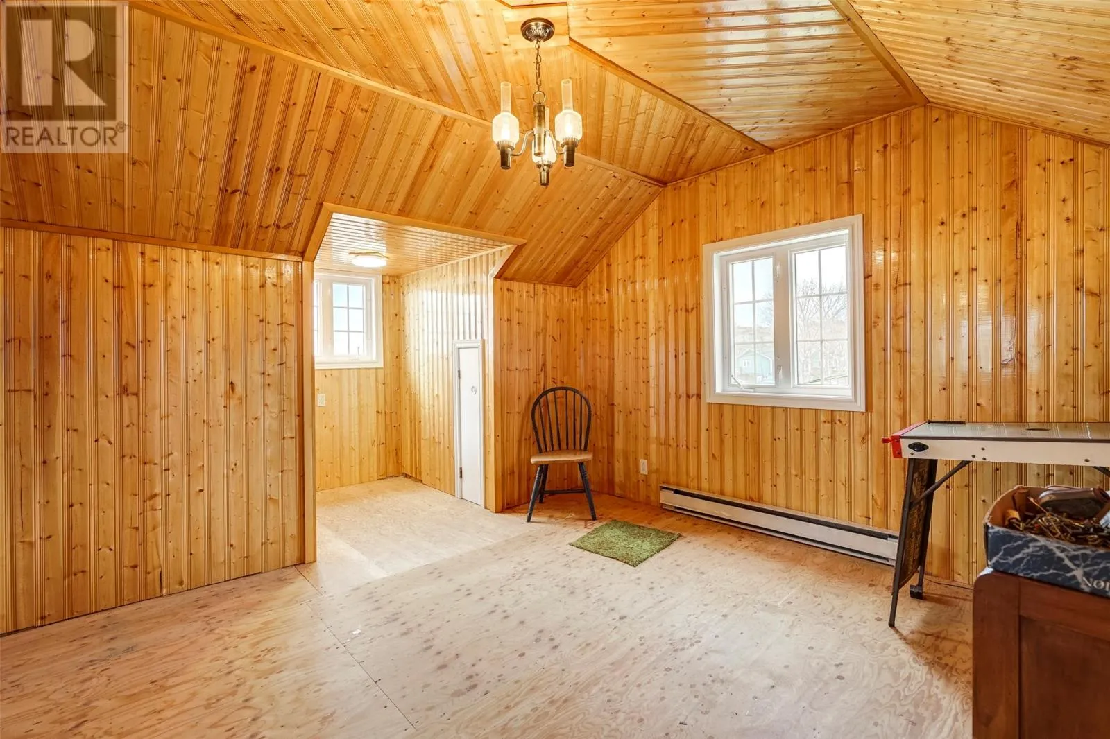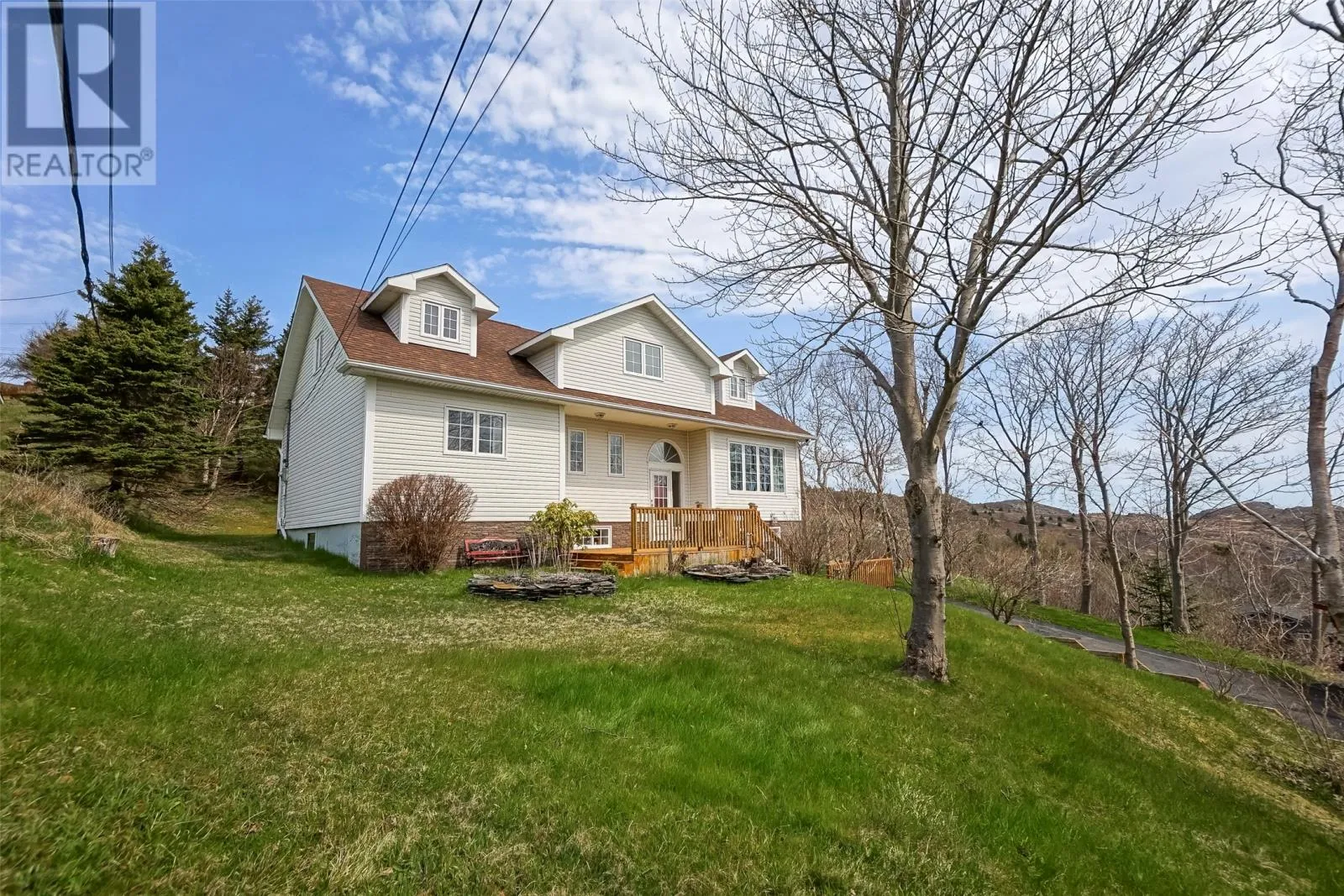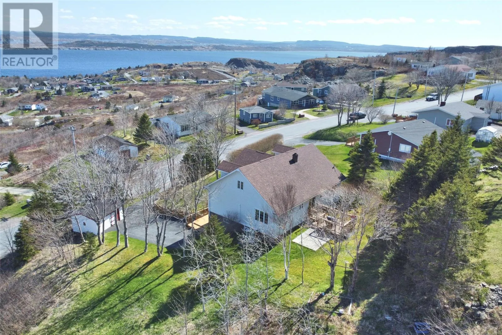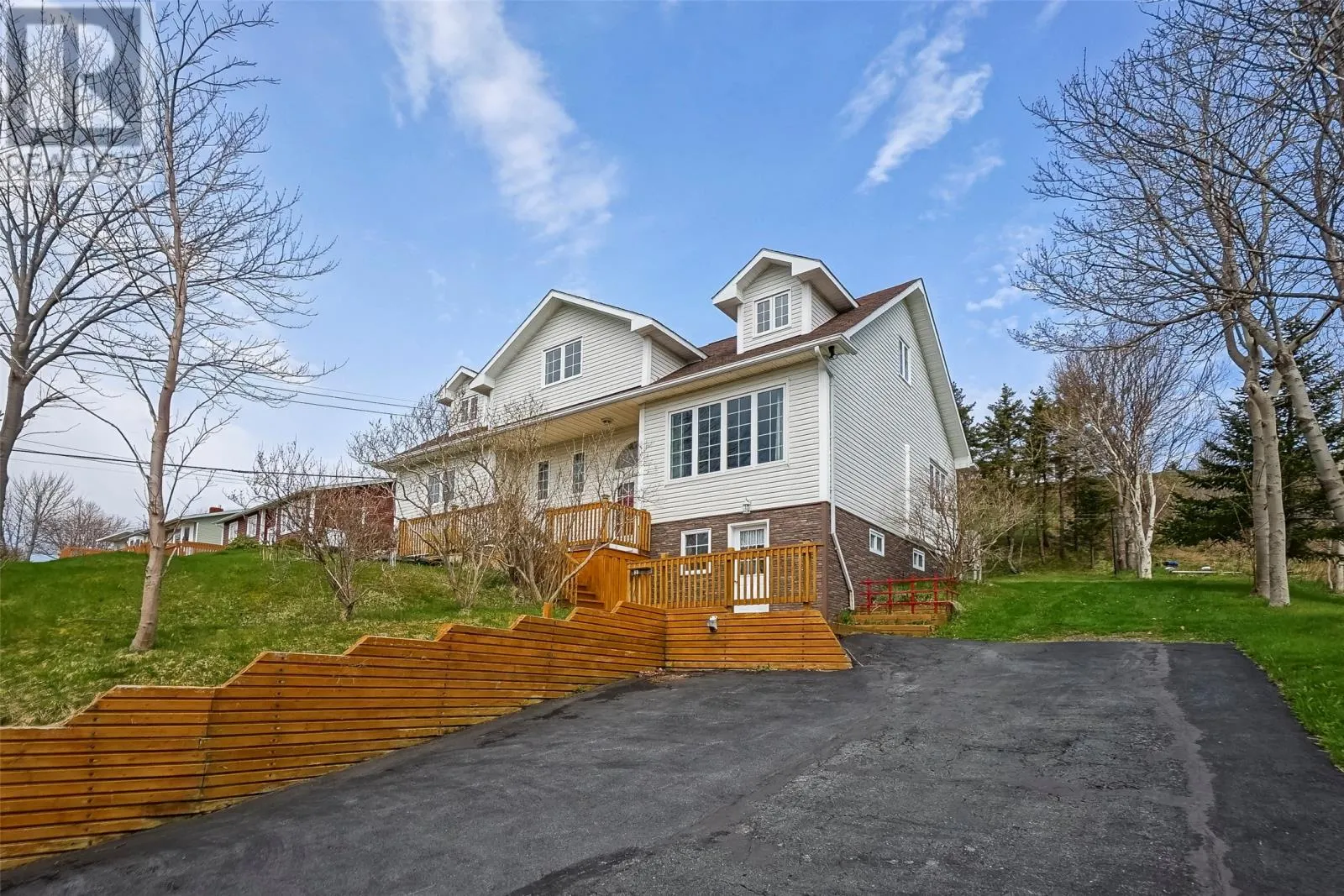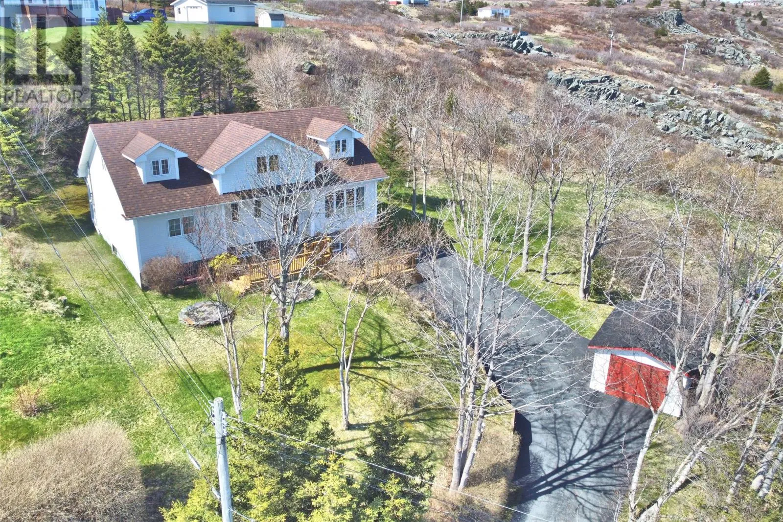 Welcome to 51 Main Road, Upper Island Cove. This 2-storey home has been well maintained an offers a beautiful view of the bay, landscaped grounds, 14' x 20' detached garage, large front deck and spacious back yard. The main floor has a custom eat-in kitchen with appliances included, living room with more water views, three-piece main bathroom and three bedrooms. Provisions have been made to install stairs, but the second floor is currently accessed through a bedroom where you'll find a hobby room, two more bedrooms and a full three-piece bathroom. The basement is highlighted by a large rec room with wood burning stove. Completing the basement is an office, laundry room, storage area and third full bathroom! (id:27476)