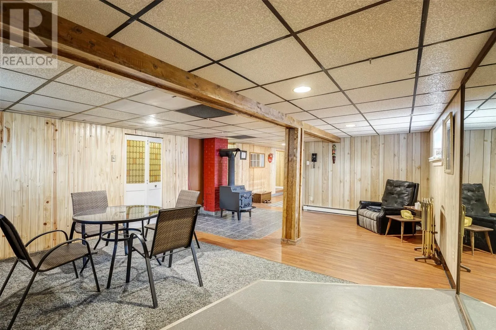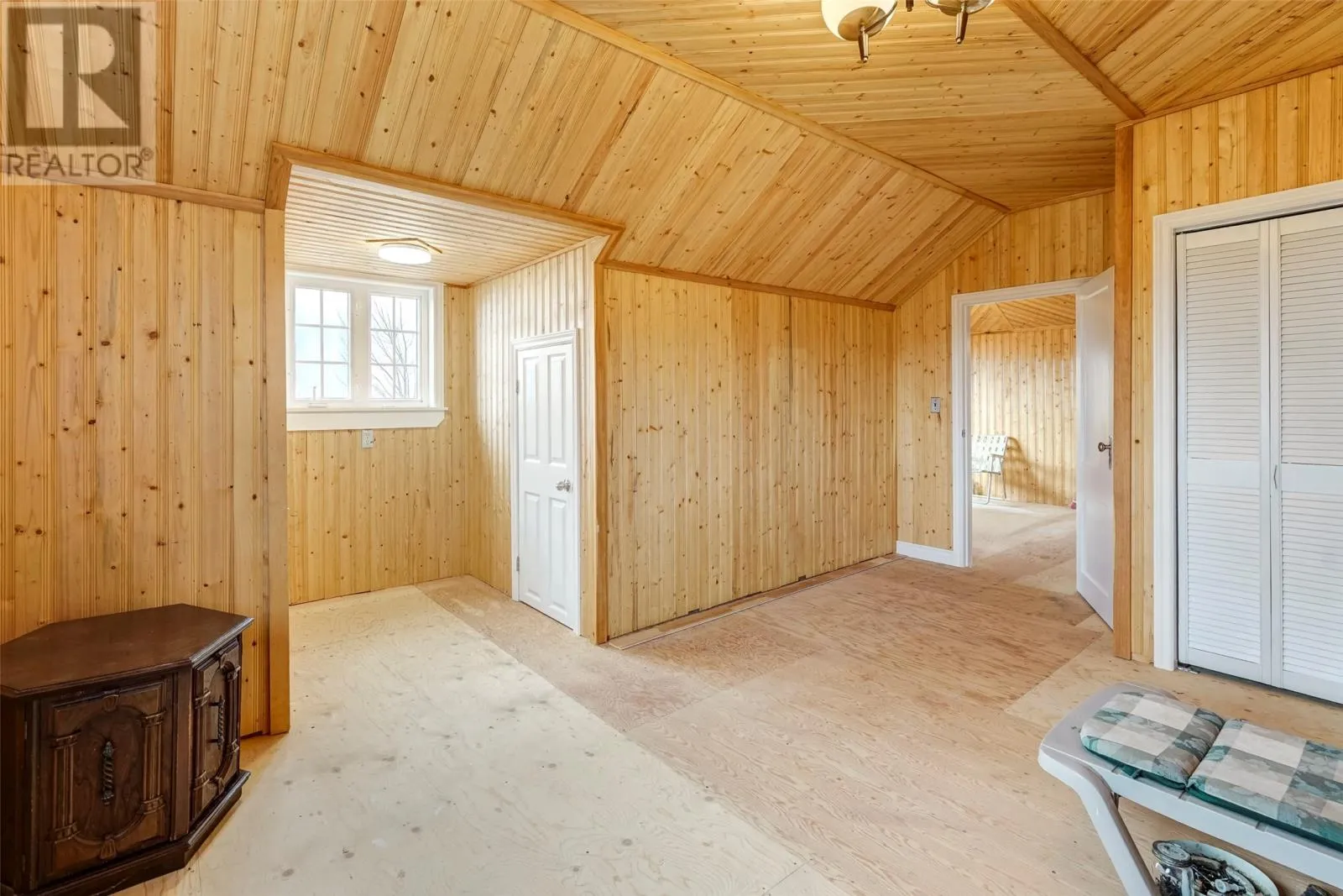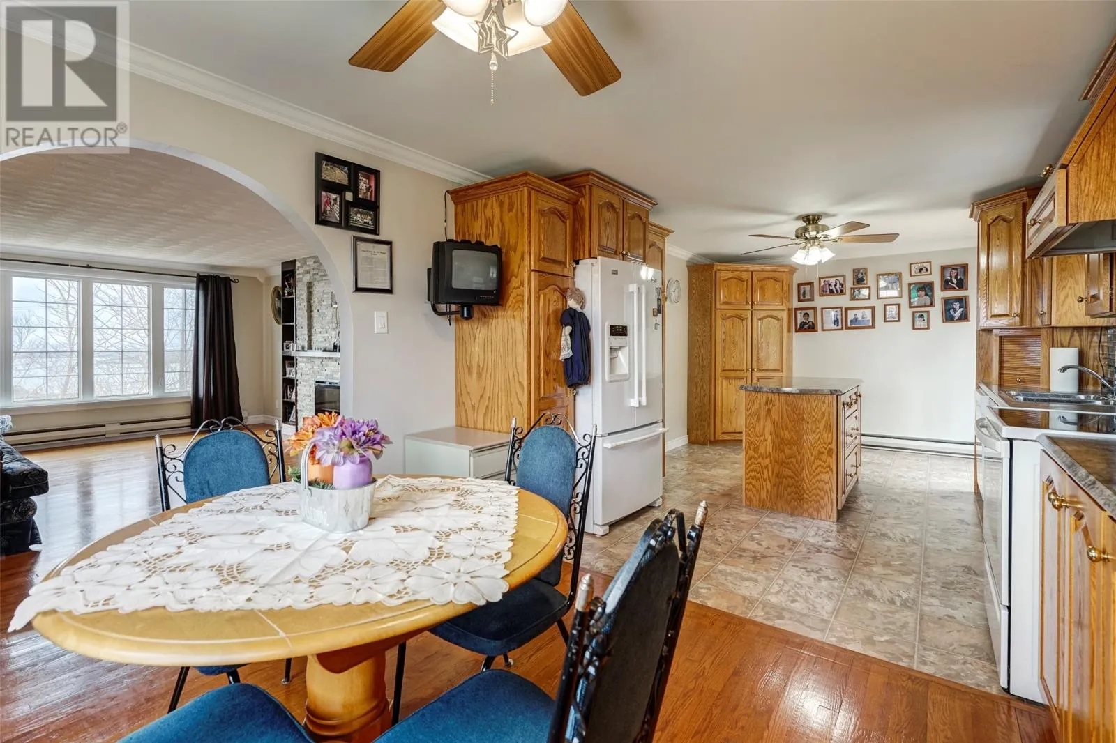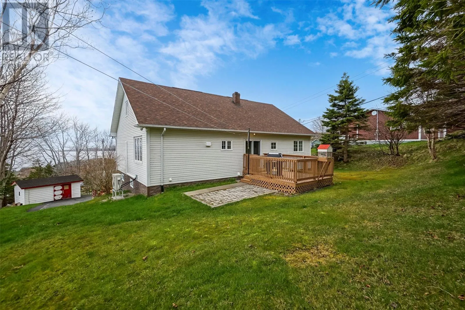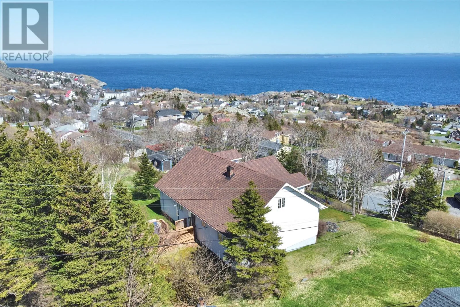 Welcome to 51 Main Road, Upper Island Cove. This 2-storey home has been well maintained an offers a beautiful view of the bay, landscaped grounds, 14' x 20' detached garage, large front deck and spacious back yard. The main floor has a custom eat-in kitchen with appliances included, living room with more water views, three-piece main bathroom and three bedrooms. Provisions have been made to install stairs, but the second floor is currently accessed through a bedroom where you'll find a hobby room, two more bedrooms and a full three-piece bathroom. The basement is highlighted by a large rec room with wood burning stove. Completing the basement is an office, laundry room, storage area and third full bathroom! (id:27476)