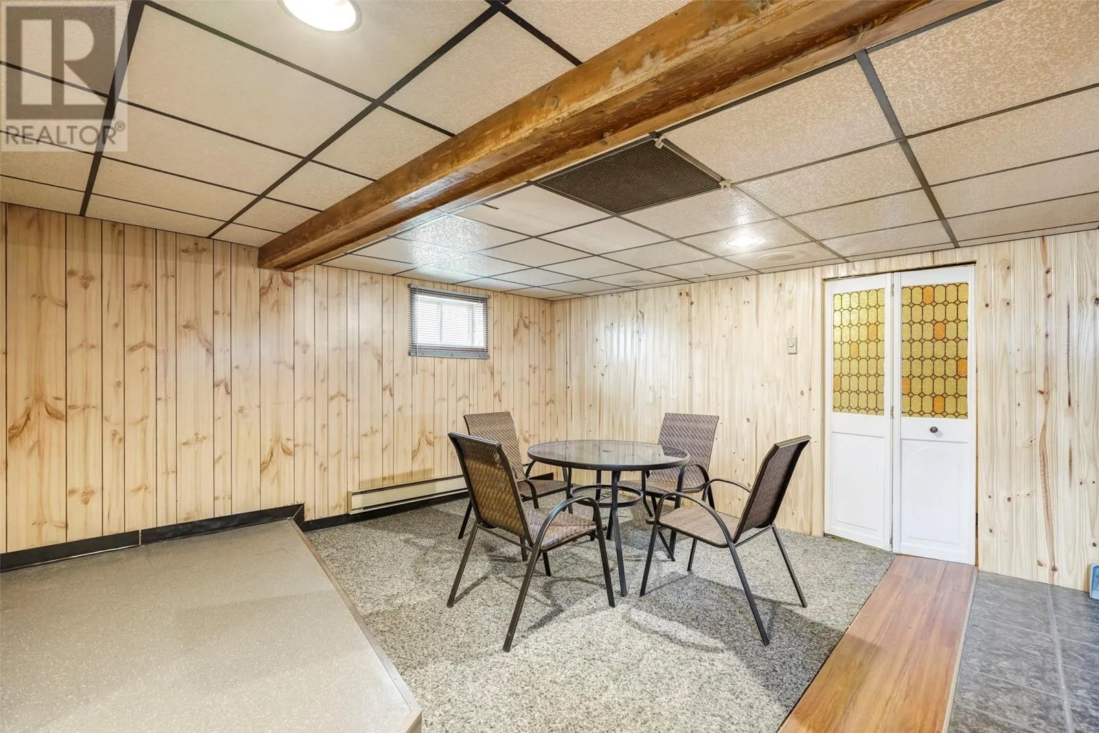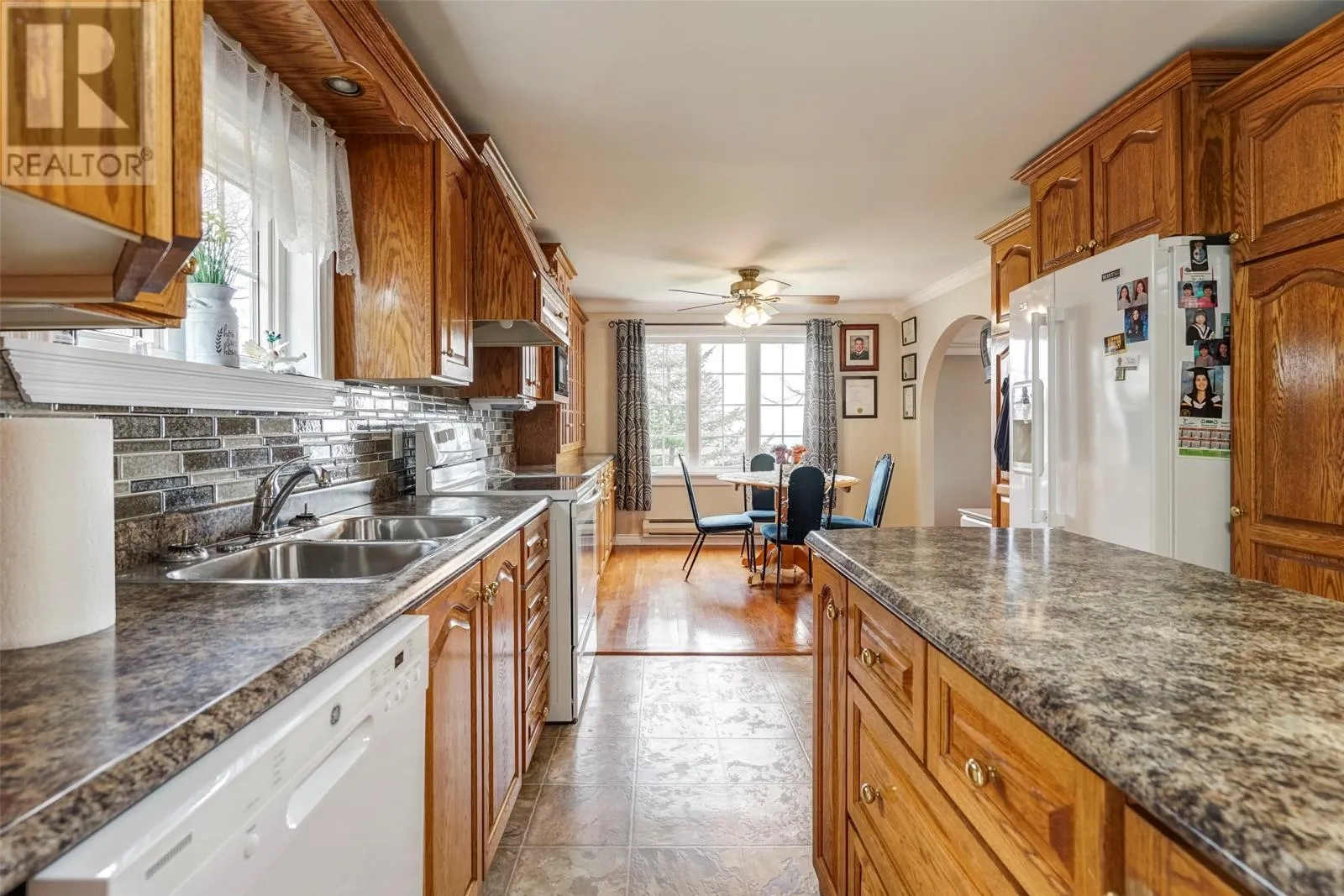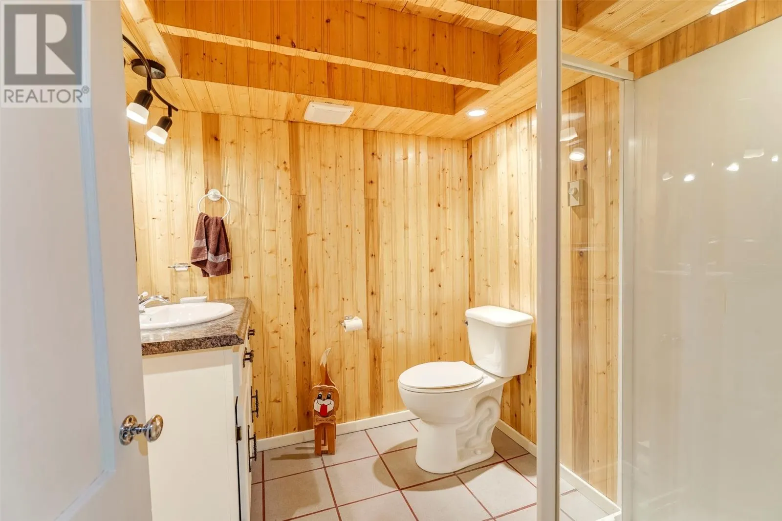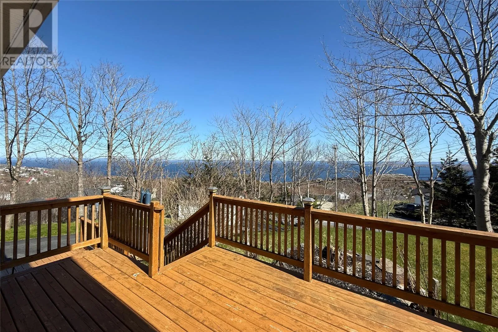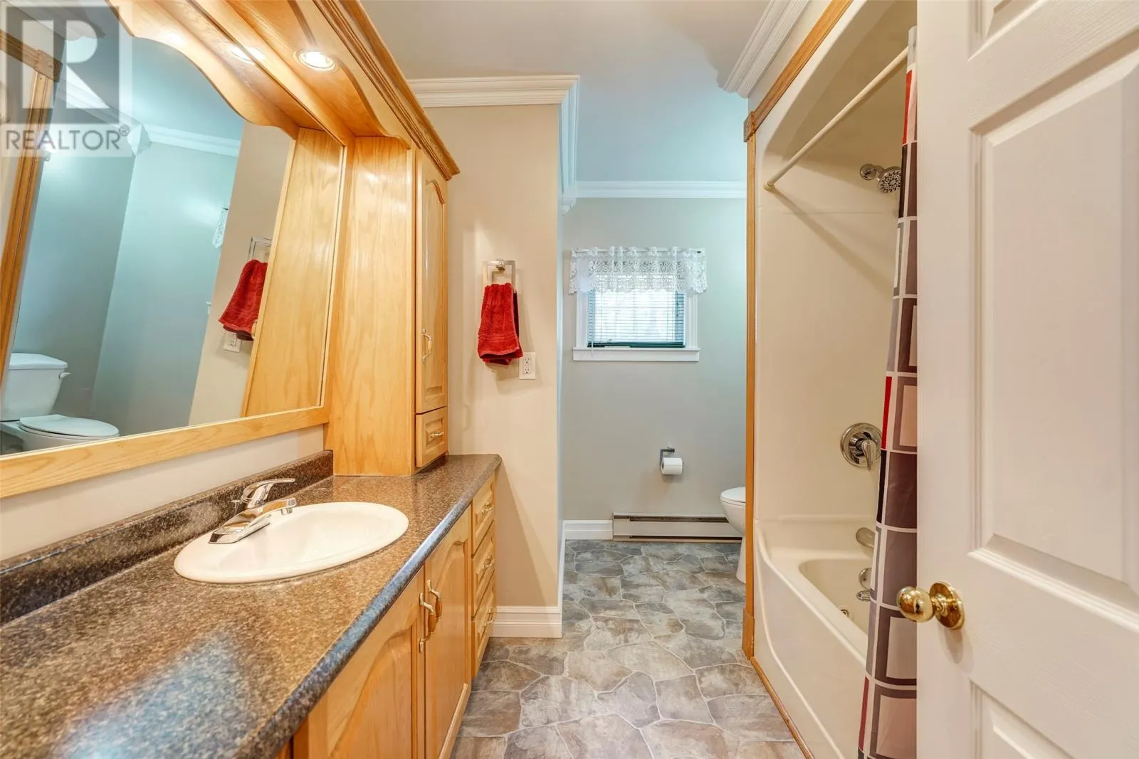 Welcome to 51 Main Road, Upper Island Cove. This 2-storey home has been well maintained an offers a beautiful view of the bay, landscaped grounds, 14' x 20' detached garage, large front deck and spacious back yard. The main floor has a custom eat-in kitchen with appliances included, living room with more water views, three-piece main bathroom and three bedrooms. Provisions have been made to install stairs, but the second floor is currently accessed through a bedroom where you'll find a hobby room, two more bedrooms and a full three-piece bathroom. The basement is highlighted by a large rec room with wood burning stove. Completing the basement is an office, laundry room, storage area and third full bathroom! (id:27476)