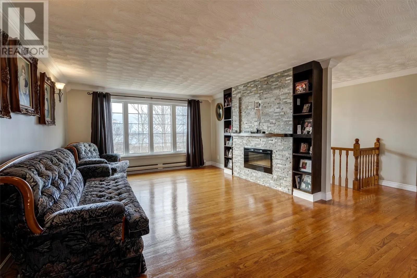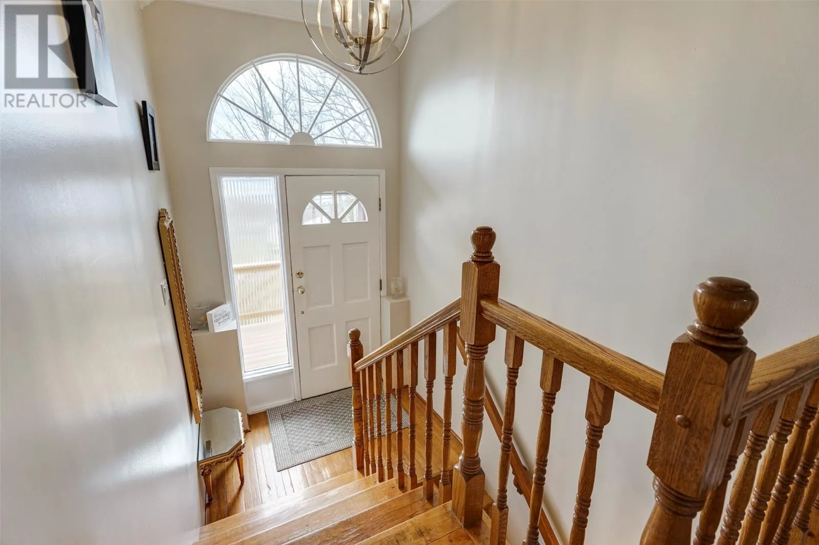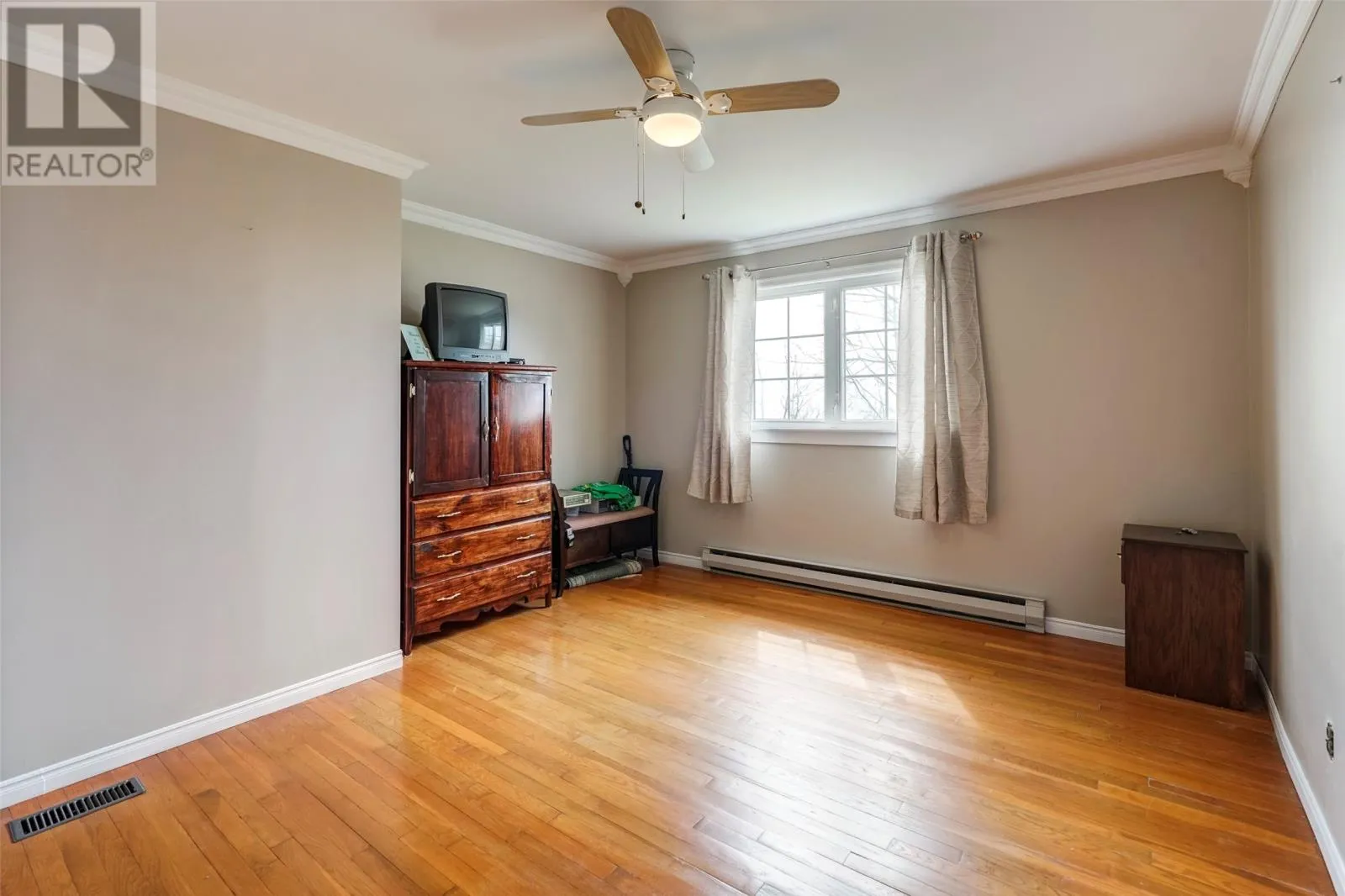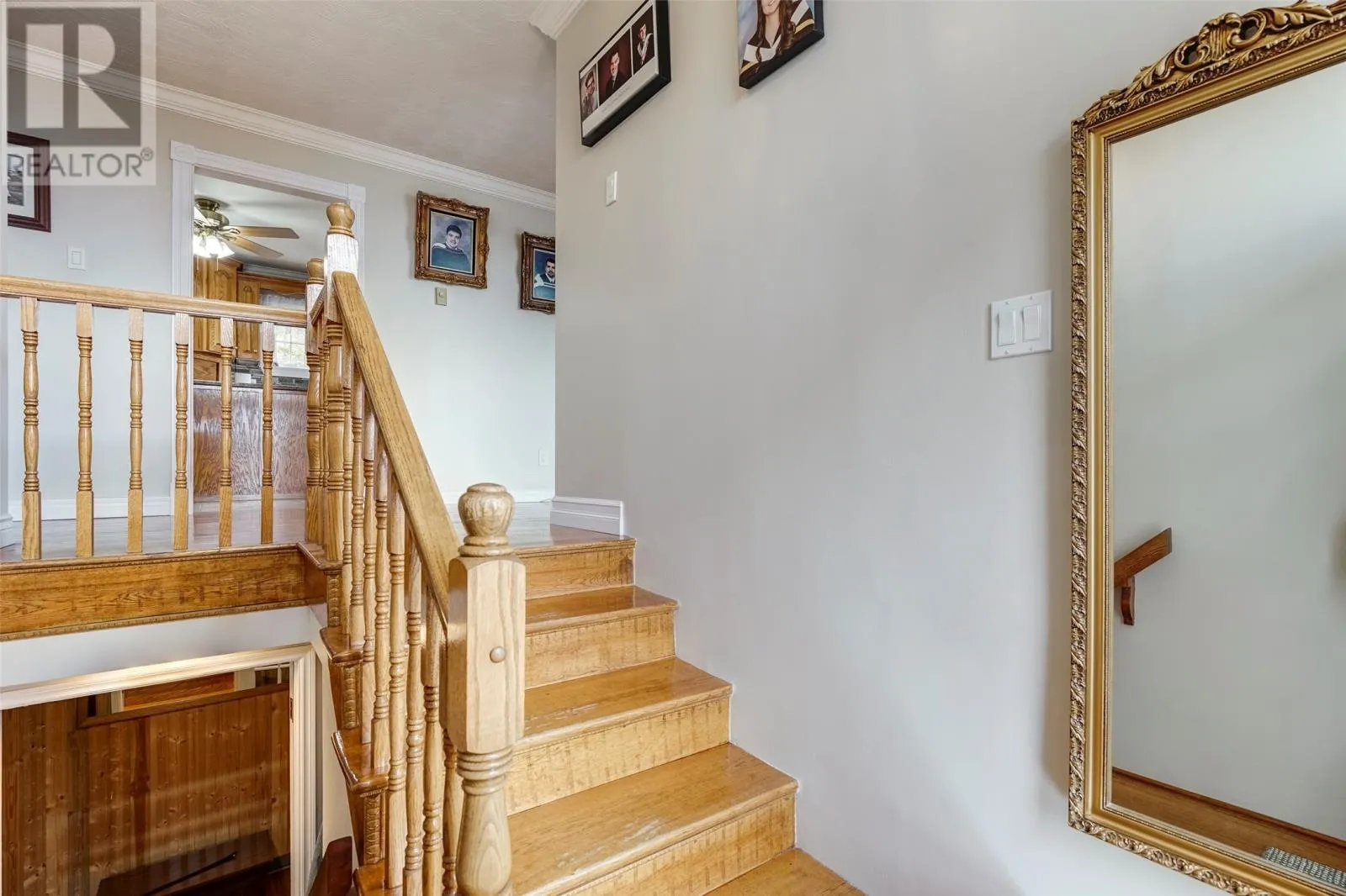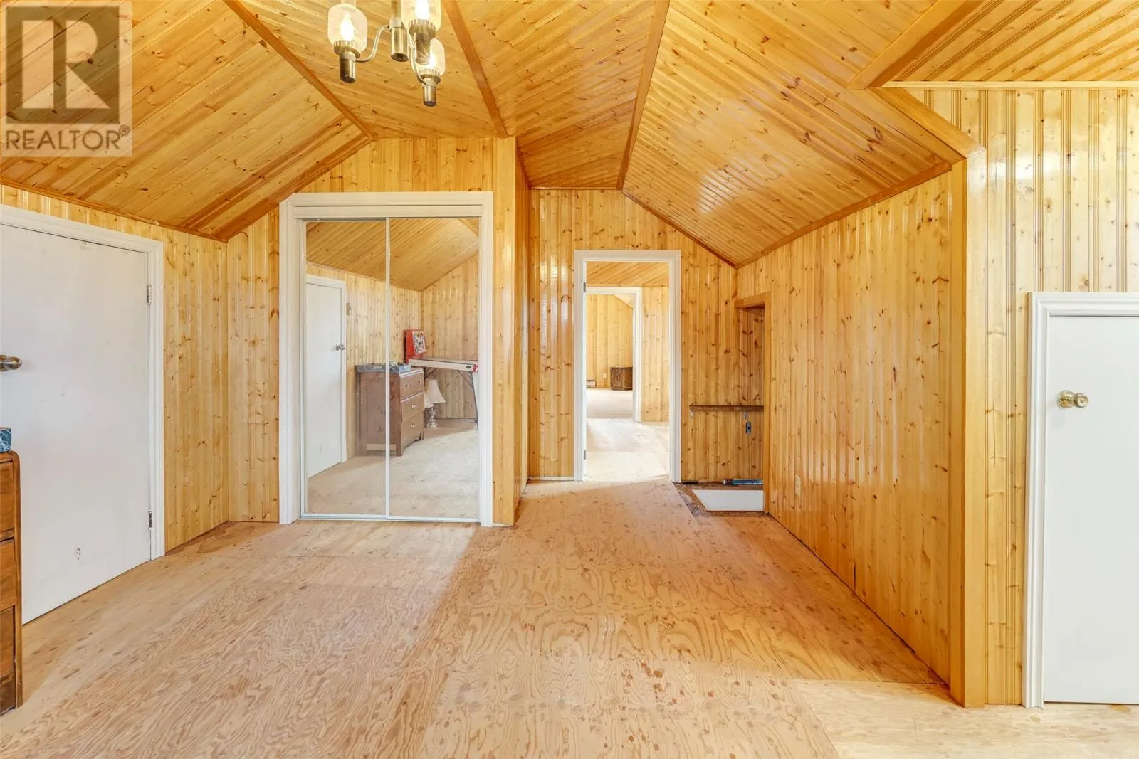 Welcome to 51 Main Road, Upper Island Cove. This 2-storey home has been well maintained an offers a beautiful view of the bay, landscaped grounds, 14' x 20' detached garage, large front deck and spacious back yard. The main floor has a custom eat-in kitchen with appliances included, living room with more water views, three-piece main bathroom and three bedrooms. Provisions have been made to install stairs, but the second floor is currently accessed through a bedroom where you'll find a hobby room, two more bedrooms and a full three-piece bathroom. The basement is highlighted by a large rec room with wood burning stove. Completing the basement is an office, laundry room, storage area and third full bathroom! (id:27476)