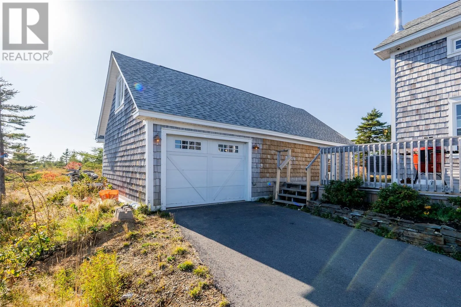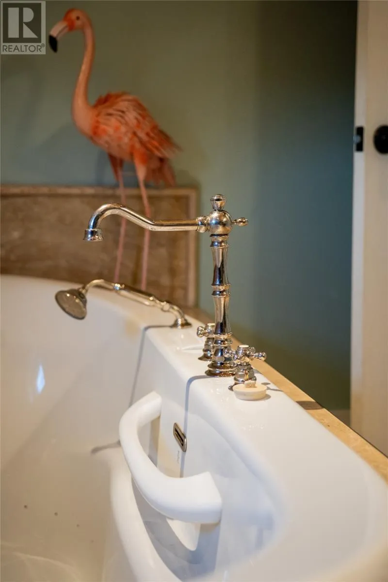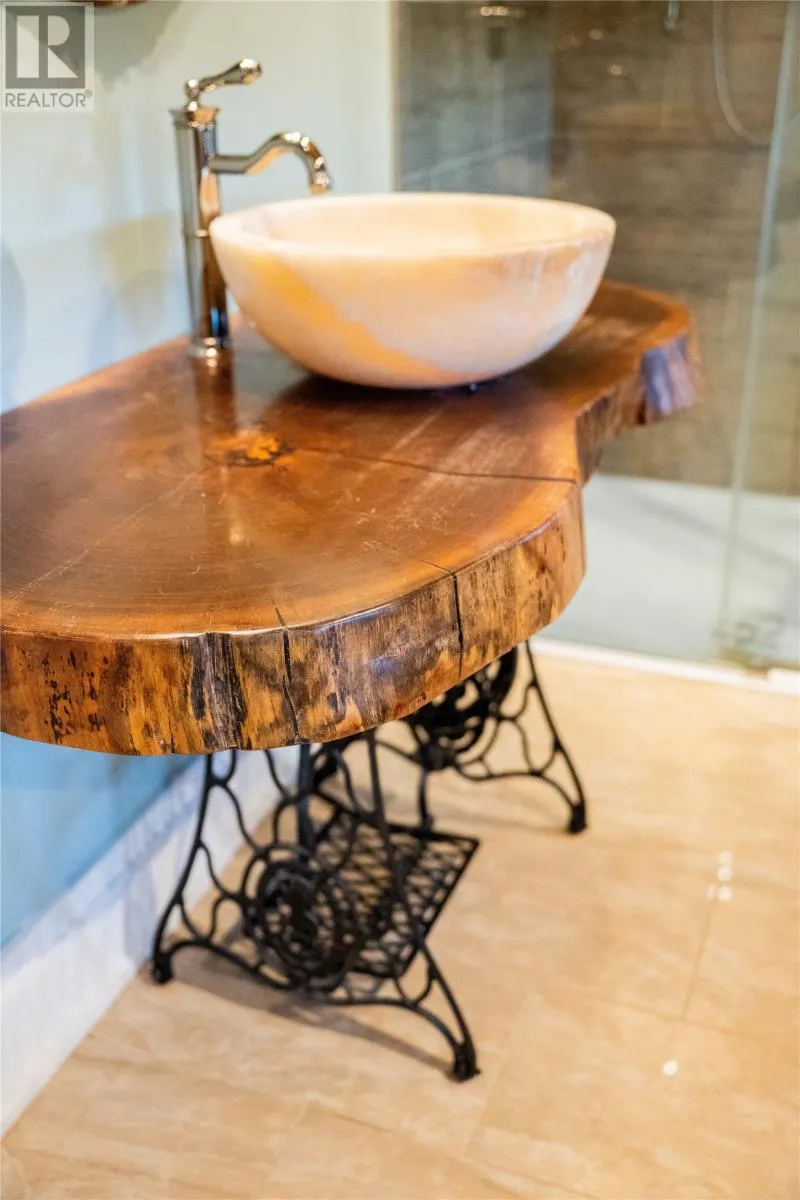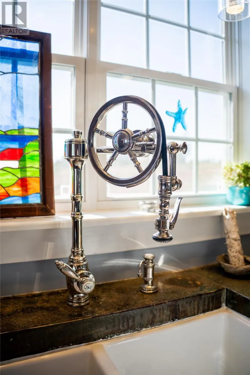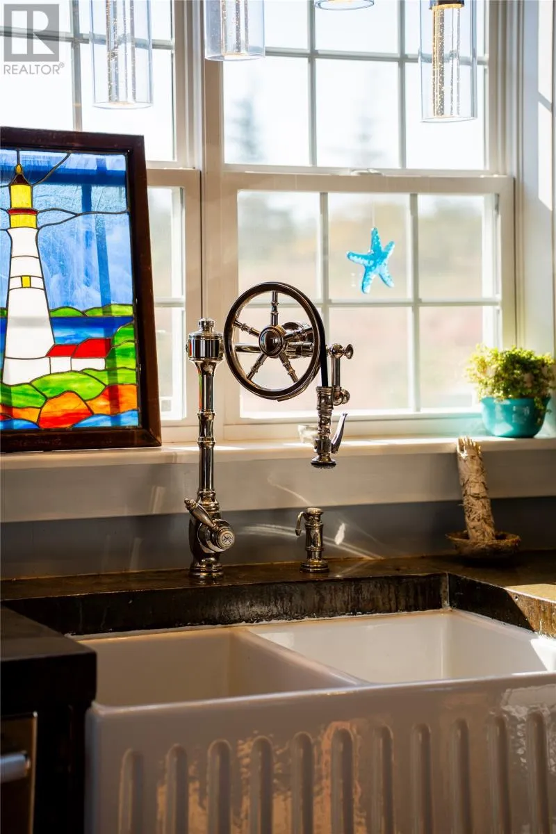 Perched on 8.26 private acres overlooking the Atlantic, this one-of-a-kind lighthouse-inspired home in Bishopâs Cove is a true masterpiece of craftsmanship and design. Featuring three bedrooms and one and a half baths, the home offers panoramic 360-degree ocean views from the top-floor wraparound deck that will take your breath away. Every element has been hand-selected and thoughtfully crafted, from the kitchen cabinetry built with reclaimed century-old wood and imported Italian faucets to the WETT-certified Kitchen Queen wood stove surrounded by locally quarried stone. The living room features a fireplace framed with Bell Island stone and a hand-hewn barn beam mantle from Ontario, mounted with custom ironwork by a local blacksmith. The main level includes a spacious kitchen and dining area, cozy living room, laundry, and powder room. The second floor offers two bedrooms, a large bath with a soaker tub, and a unique antique Singer sewing machine vanity. The third floor serves as a lighthouse tower bedroom with a wraparound deck showcasing breathtaking ocean vistas. The property also features a massive two-level wired garage and land rich with wild blueberries in the fall. A rare blend of artistry, privacy, and coastal beautyâthis home is truly one of a kind. (id:27476)
