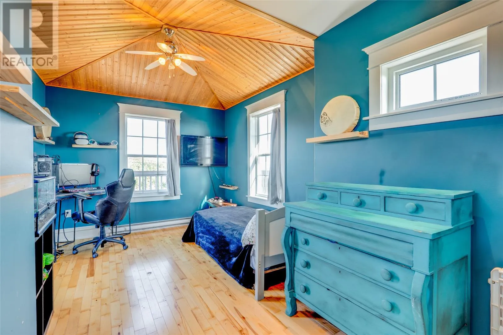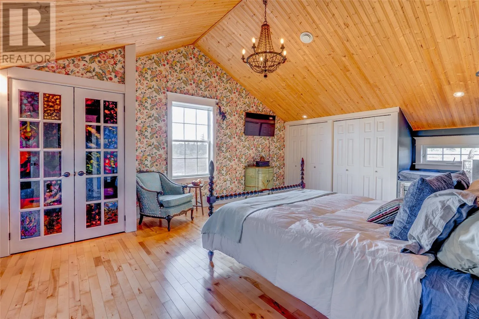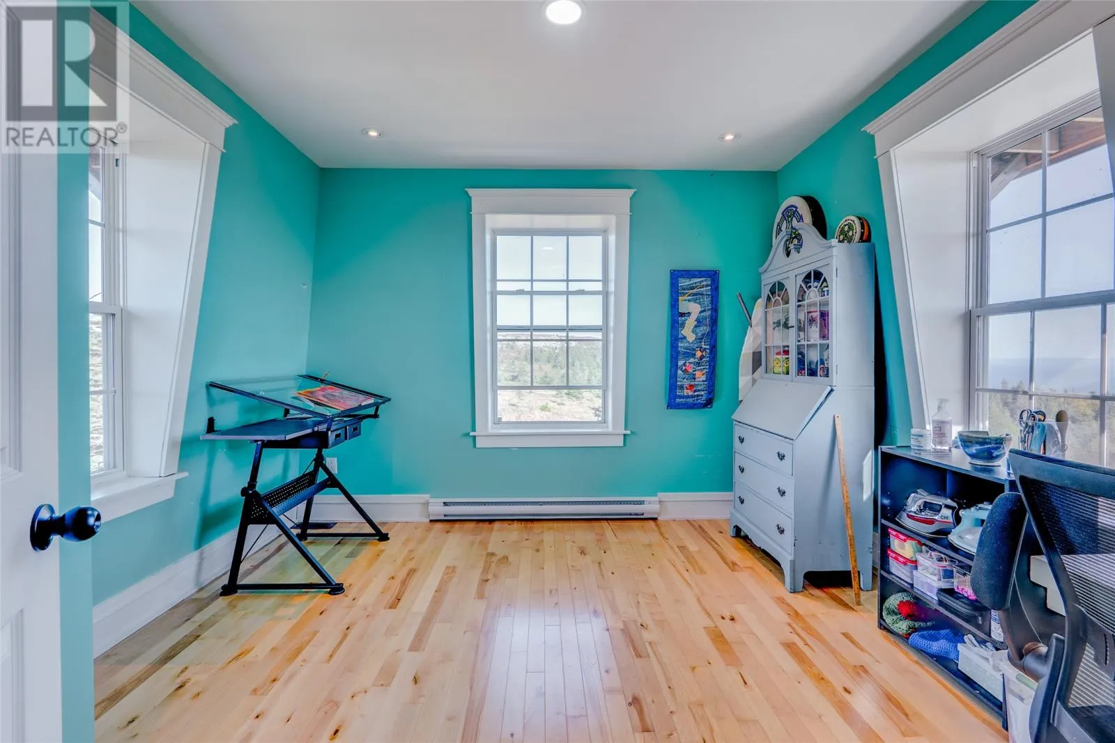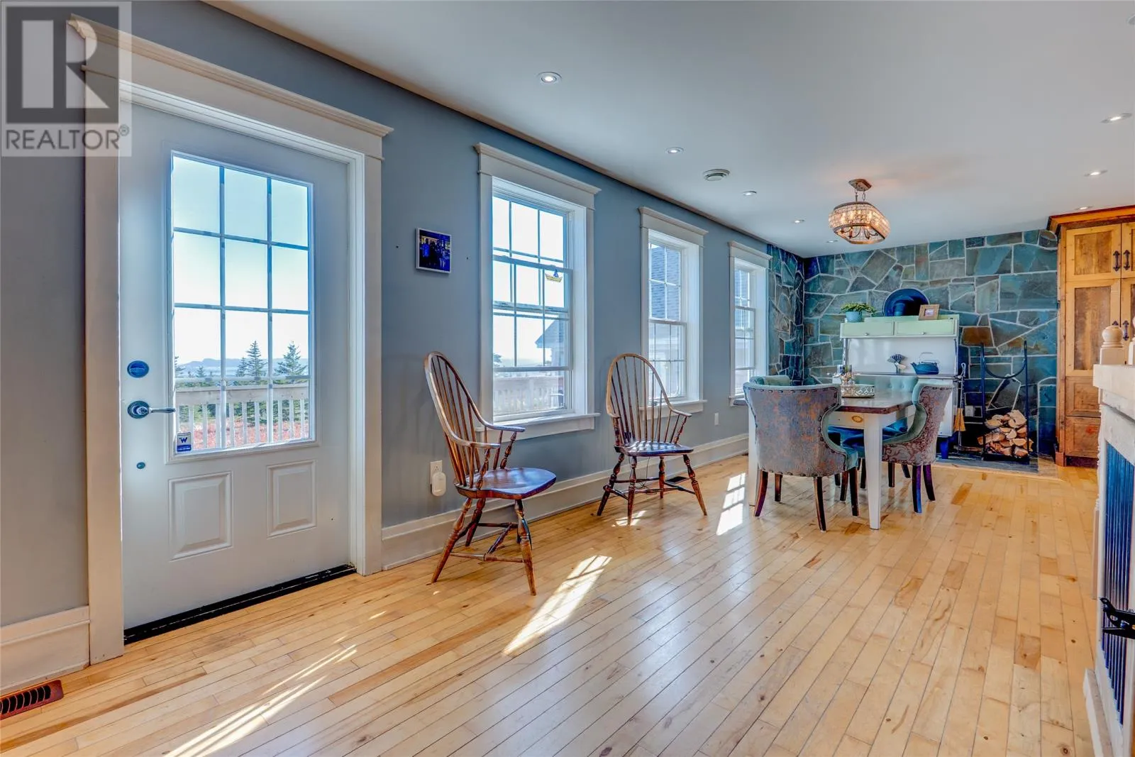 Perched on 8.26 private acres overlooking the Atlantic, this one-of-a-kind lighthouse-inspired home in Bishopâs Cove is a true masterpiece of craftsmanship and design. Featuring three bedrooms and one and a half baths, the home offers panoramic 360-degree ocean views from the top-floor wraparound deck that will take your breath away. Every element has been hand-selected and thoughtfully crafted, from the kitchen cabinetry built with reclaimed century-old wood and imported Italian faucets to the WETT-certified Kitchen Queen wood stove surrounded by locally quarried stone. The living room features a fireplace framed with Bell Island stone and a hand-hewn barn beam mantle from Ontario, mounted with custom ironwork by a local blacksmith. The main level includes a spacious kitchen and dining area, cozy living room, laundry, and powder room. The second floor offers two bedrooms, a large bath with a soaker tub, and a unique antique Singer sewing machine vanity. The third floor serves as a lighthouse tower bedroom with a wraparound deck showcasing breathtaking ocean vistas. The property also features a massive two-level wired garage and land rich with wild blueberries in the fall. A rare blend of artistry, privacy, and coastal beautyâthis home is truly one of a kind. (id:27476)