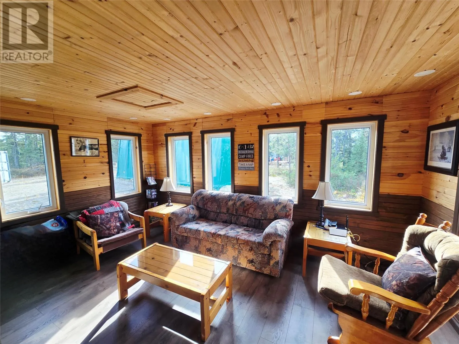 Welcome to Ashuanipi Cottage, a charming and fully furnished waterfront retreat. This 2-bedroom, 1-bathroom property features an open-concept layout that captures stunning views of Ashuanipi River â the perfect setting for relaxing, entertaining, or escaping the everyday. The cottage sits on granted land and has been thoughtfully upgraded throughout. A new drilled well (2025). The electrical system is connected to a 4000W generator for added convenience, and a 100-lb propane tank is included. Outside, youâll find Seacan storage units, a tarp shed, and an impressive $2,500 worth of pressure-treated lumber stored on-site. The property also includes a 60-gallon holding septic tank, last pumped in 2023. In 2020, the cottage saw major updates, including new shingles, a renovated extension, and a new garage. Modern comforts are also in place with an Explorenet satellite system, a hot-water-on-demand system (new in box), and a wood stove installed in 2020 as the primary heat source. Whether youâre looking for a peaceful year-round residence or a weekend getaway, Ashuanipi Cottage offers the ideal blend of comfort, nature, and lakeside living. (id:27476)