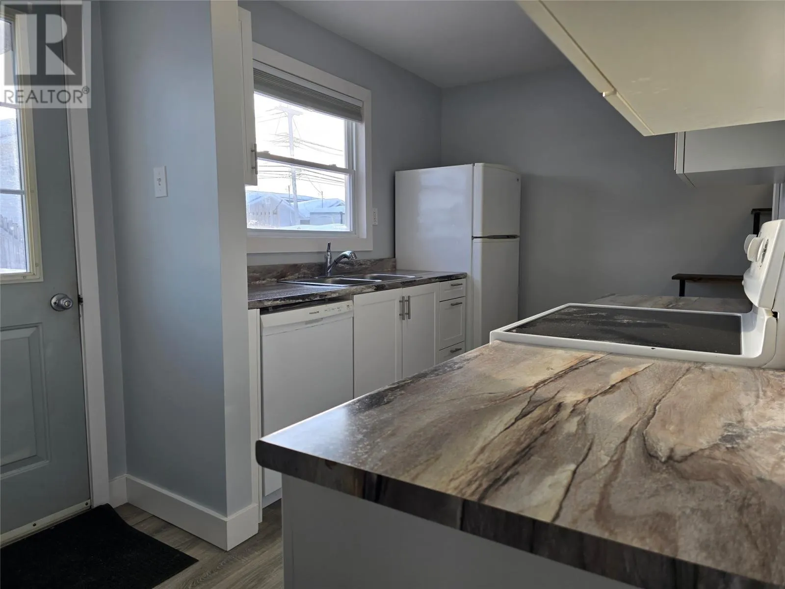Welcome to this inviting starter home in a family-friendly neighborhood. The bright kitchen features crisp white cabinetry, dark countertops, and matching white appliances, creating a clean, modern look thatâs both functional and easy to style. This 3 bedroom rowhouse offers a warm, welcoming feel with recent updates, including flooring, paint, doors, vinyl siding, and windowsâmaking it a great move-in ready option. Upstairs, the bedrooms feature vaulted ceilings that give a a light, bright, roomy and airy feel. Finished in neutral tones, the space is fresh and ready for your personal touch! The basement is undeveloped, offering flexibility for storage, a play area, or future development to suit your needs. Think, extremely cold, long winter days where kids have a lot of energy -down to the basement for some hockey time! :) Step outside to a wonderfully large fenced in backyard with plenty of room for kids, pets, family gatherings, or slow summer nights with a bonfire. This homeâs warm spiced orange vinyl siding adds a warm, distinctive touch and with the square design of the decorative black shutters, it has a beautiful and distinctive standout curb appeal. A fantastic opportunity for 1st buyers or anyone looking to settle into a family-friendly neighborhood (id:27476)