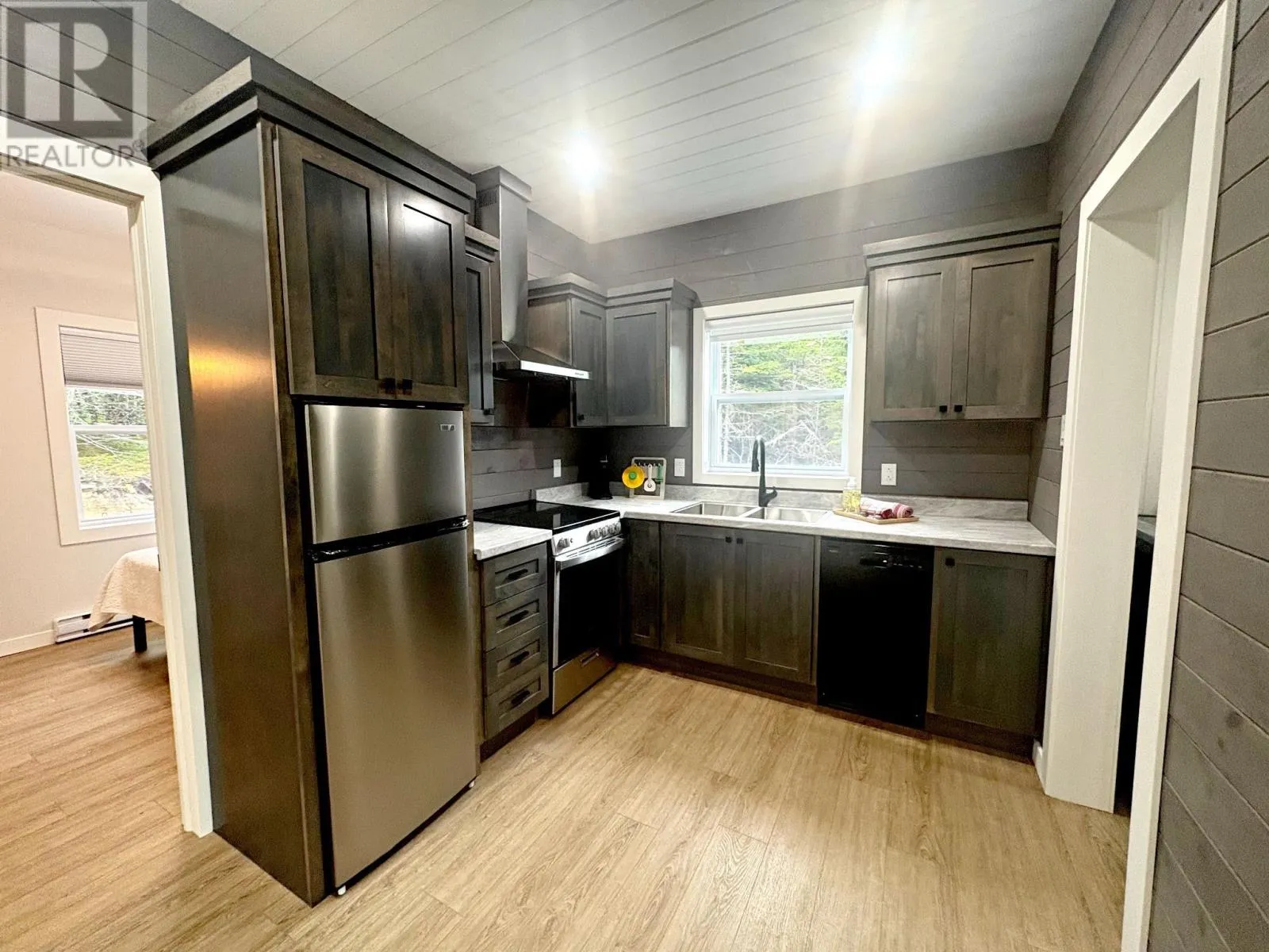 Exit at Whitbourne and proceed down Brigus Road left unto Vokey's Road, left onto Amber Drive and then proceed until you see a fork in the road take the right onto the dirt road (EcoFlatz signs are present) then it is the second driveway on the right hand side of the dirt road. Welcome to your slice of countryside peace! This inviting 2-bedroom, 2-bathroom tiny home is nestled in the woods of Whitbourne, just a hop off the TCH and close to recreation, shops, and quaint Atlantic Ocean tourist locations. Inside, youâll find an open and efficient layout that feels anything but small. A bright living area with mini-split for added comfort was thoughtfully designed and flows into a well-designed kitchen featuring modern finishes and smart storage. With two bedrooms and two full bathrooms, everyone has room to relax with no corners cut! Don't forget laundry wiith combo washer/dryer and added storage in the utility room. The outside space gives you room to play, plant a garden, perhaps add a fire pit, or simply soak up the stillness of cabin living. It is peaceful, practical, brand spanking new and ideal for simple living. (id:27476)