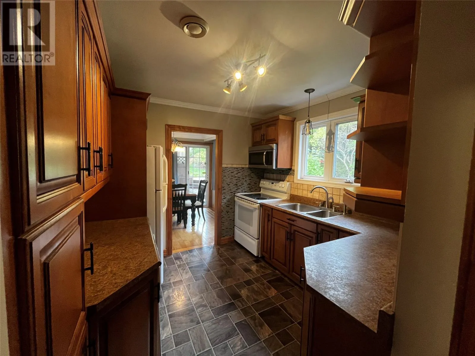 Welcome to 105 Main Road in beautiful Winterton! Located on the scenic Trinity shore, this home is meticulously maintained and move in ready! Ideal for the buyer looking to down-size, but also has the space for a family! Home features one level living with a spacious living room, separate dining and a galley style kitchen with beautiful cabinetry and lots of cupboard space. Gleaming hardwoord floors and stunning crown molding in the living are great features. A primary bedroom, main bath and extra bedroom complete the main level. The basement has extra space that can be used for a guest bedroom or office area, a large laundry and a huge unfinished space, ideal for storage. The backyard is stunning and features a great patio space, gazebo and mature trees, shrubs and flowers. A storage shed is the perfect spot for your extra's. This home has had many upgrades over the years which include (2018)new metal roof, stone walkway, back patio re-decked, pex plumbing(2021), hot water heater(2022). Don't miss your chance to own this lovely property! (id:27476)