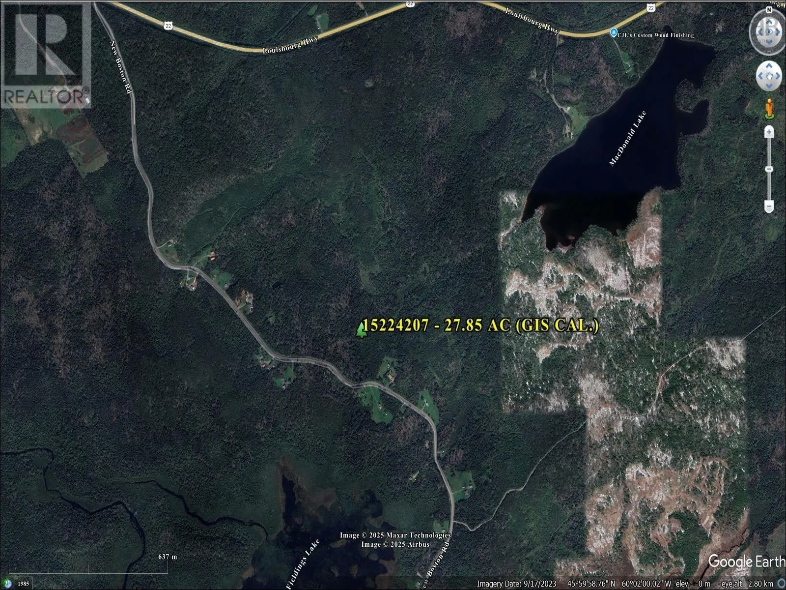 The listing is located just before civic 1060 New Boston Rd and directly across from 1077 New Boston Rd. Starting from 1060, on the same side of the culvert, there is a stake marking the beginning of the property. From that point, the frontage measures approximately 90 feet. The end of the 90 feet is almost directly across from the end of the driveway at 1077 New Boston Rd. 27.85 acres of wooded land located on New Boston Road (formerly Old Louisbourg Highway) in Albert Bridge, Cape Breton County. The property offers approximately 90 feet of road frontage and extends back more than 2,600 feet in depth, providing privacy and space for future development. Zoned RU (Rural Resource), the lot allows for residential and resource uses, with no restrictive covenants limiting your plans. Power is available at the roadside. Conveniently located just 5 minutes (4.1 km) past the Albert Bridge - turnoff onto New Boston Road, property is just before civic 1060. From the property it's approximately 20 minutes to Sydney. Land is "RESOURCE TAXABLE" - Deed Dransfer Tax is 1.5% for both NS buyers and out of province buyers. (id:27476)