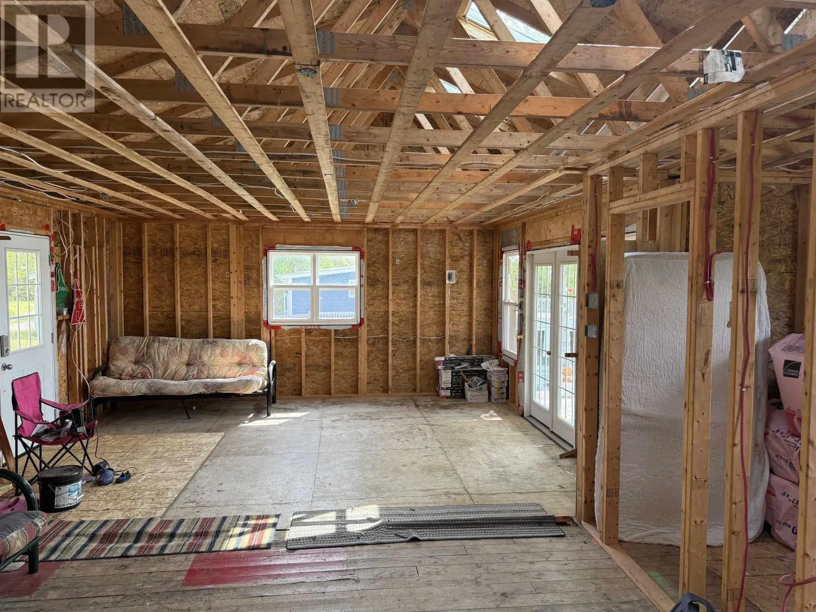 Heading towards Louisbourg turn right on Trout Brook Road, property is on the left. 2010 Trout Brook Road Welcome to 2010 Trout Brook Road where you will find a little piece of paradise with an amazing view of the famous Mira River. The property is waiting for your insight to complete this wonderful location and begin to enjoy the peace and tranquility. The unfinished layout features 2 bedrooms, a bathroom and a large open concept kitchen/living room area. The home has the convenience of a full 4 foot foundation, roof and windows updated around 2013. There is no panel but the wiring has been roughed in. There is a well and holding tank hooked to the property but seller is not able to confirm condition or function. (id:27476)