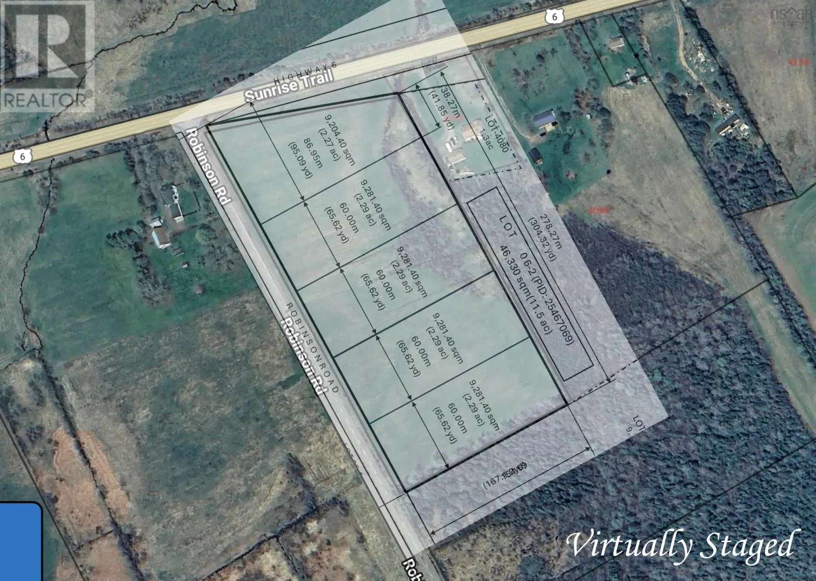 From Amherst, follow Hwy 6 East for approx 12 km. Watch for Robinson Road, parcel is on the corner. A picturesque 11.5-acre parcel in a peaceful country setting! Amherst Head is a charming rural farming community located approximately 10 minutes east of Amherst. Head north along the nearby Beecham Road and youll find yourself at the public beaches and warm waters of the Northumberland Strait in about 10 minutes. Continue another 20 minutes east and youll reach Pugwash, home to fresh lobster, a vibrant village atmosphere, and world-class golf. This level parcel offers an excellent opportunity for anyone looking to build their dream home with plenty of space. With 11.5 acres, theres more than enough room for a hobby farm, sustainable living, or simply enjoying the privacy and beauty of country life. If you're considering shared opportunities with friends or family-or thinking ahead for future development-this corner lot lends itself to several subdivision options. As illustrated in the photos, there are three potential layouts, including two different 5-lot configurations and one 7-lot configuration. Choose your own adventure and explore the possibilities. Take a look at this beautiful property today! (id:27476)