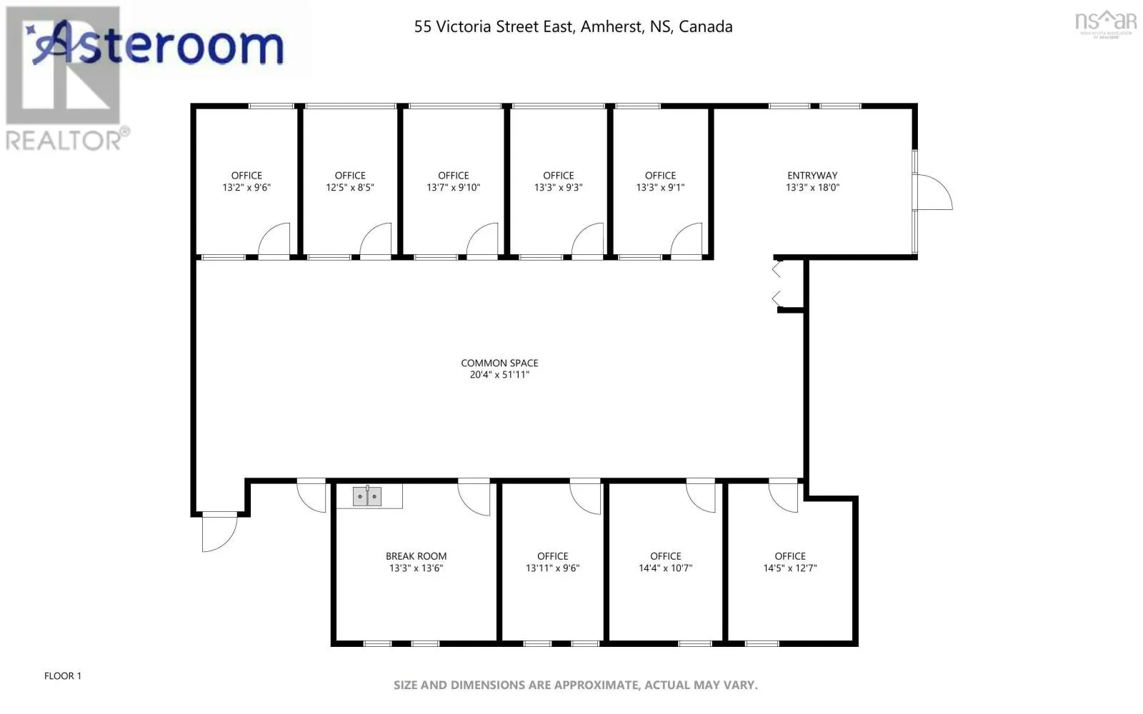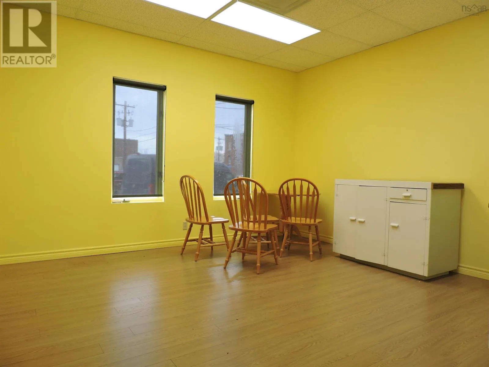 Take West Victoria St. into downtown Amherst NS Watch for Tim Hortons on the corner. Rentable space inside that location. LOCATION, LOCATION, LOCATION! This prime commercial space is up for LEASE in the heart of Amherst with frontage on one of the busiest intersections in town! The space offers a total of 2,888 square feet main level with an an additional 1,772 square feet available in the basement for storage etc. if needed. Previously used as an insurance brokerage, the main level space provides a nice waiting/reception area, large common area that could accommodate many cubicles and 8 independent offices along with a spacious break room. The lease includes washrooms, common area and a 3-4 parking spaces although there is plenty of public parking spaces surrounding the building. Owner is willing to review options and is flexible with the space. Tenant is responsible for arranging there own cleaning service. Check out the 3D link for 3D tour. (id:27476)