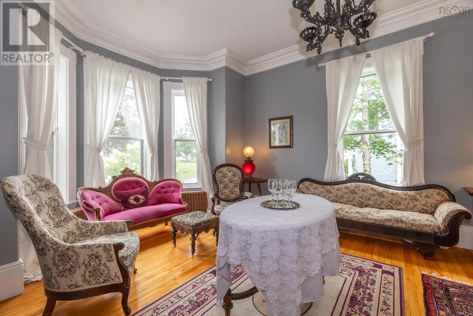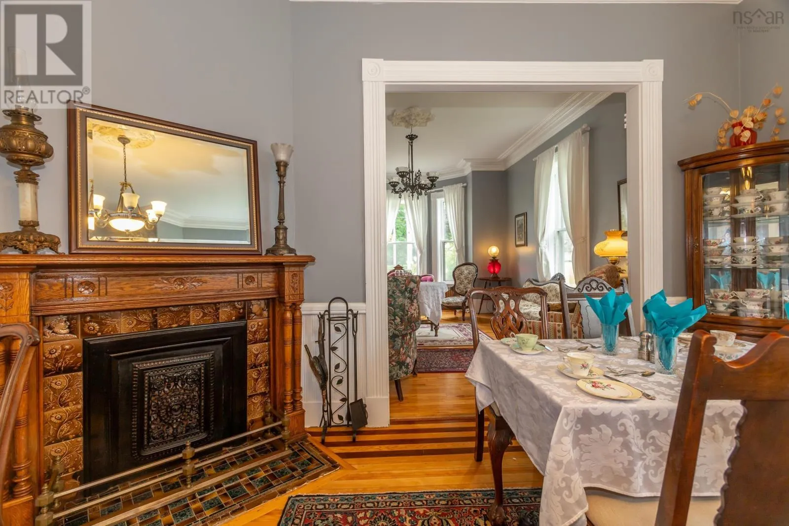 Annapolis Royal to St George Street Welcome to the grand Carlisle House Inn, a true gem nestled amongst other stately heritage homes in the Historic District of Annapolis Royal. This captivating property, dating back to 1868, offers a unique blend of timeless elegance and modern comforts. With its rich history and sensitive renovations, this turnkey Bed & Breakfast presents a remarkable opportunity to own a piece of history while enjoying a thriving hospitality business. Located on the main street, the Carlisle House Inn enjoys prime visibility and accessibility, making it a favoured choice for travelers seeking a memorable escape. With a total of nine air-conditioned bedrooms, each featuring its own ensuite, the Inn promises a comfortable and inviting stay. Thoughtfully rejuvenated, with recent updates including fresh interior & exterior paint, plumbing and electrical upgrades, chimney repairs, a newly re shingled roof, a new and efficient furnace, along with updated oil and hot water tanks and professional landscaping. Outstanding features include luxury antique furnishings throughout, the towering turret, high ceilings, grand sweeping staircase, fireplaces and gleaming birch & walnut flooring. The Inn's Victorian dining room is a time capsule of elegance. With white linen, antique tea cups, and a refined atmosphere, it provides the perfect backdrop for serving traditional Afternoon Tea, popular with guests, locals and visitors. The property boasts a versatile garage/carriage house that beckons artists and creatives. Set in the waterfront town of Annapolis Royal, with its plentiful amenities and attractions, including hospital, school, shops, restaurants, galleries, cafes, pool, famous Farmers Market and Harvest Moon Trail. A unique opportunity for an aspiring innkeeper or a connoisseur of heritage homes who wants an elegant home with income, if desired. SELLER FINANCING AVAILABLE. See video tour and 3D Matterport video. (id:27476)