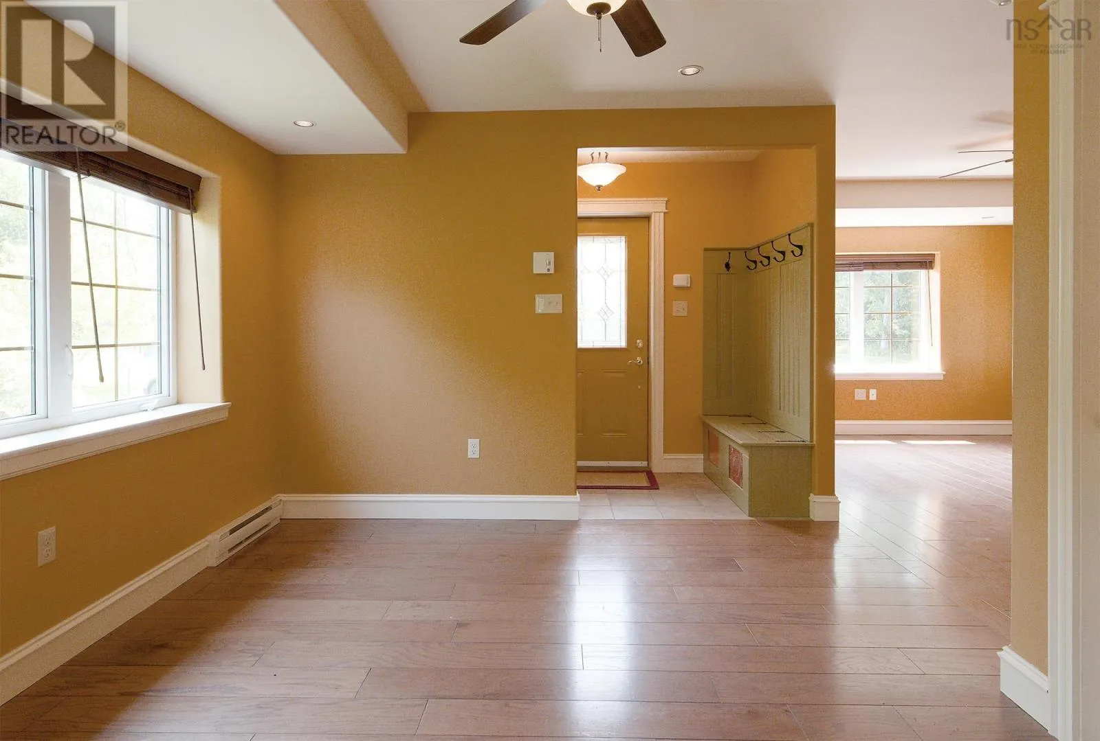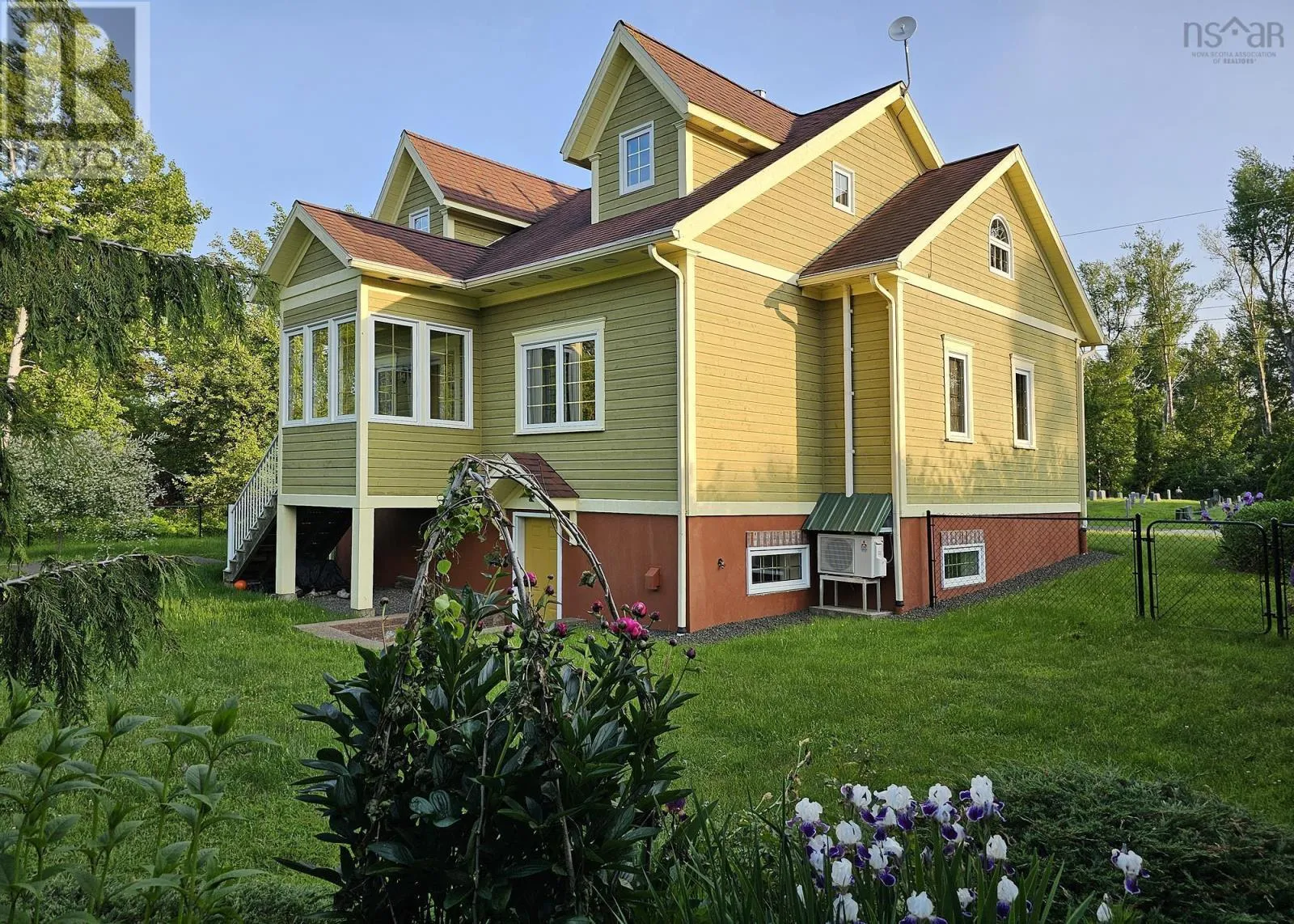 Drive through Annapolis Royal to the end of Lower St George Street, which curves right and changes to Chapel St. Second house on left. This beautifully crafted custom home, has been thoughtfully designed to complement the historic charm of Annapolis Royal. Constructed in 2011 with ICF construction, (Insulated Concrete Forms), this energy-efficient home boasts high-quality materials and a comfortable, traditional layout. The custom kitchen and spacious dining area are separated by a generous peninsula, perfect for both family gatherings and intimate dinners. A wide doorway connects the living and dining areas, providing an open flow while clearly defining each space. This level also includes two bedrooms and a full bathroom. Upstairs is a versatile loft-like space that can serve as a bedroom suite, home office, or hobby area. This level also features a two-piece bath and a large attic with development potential. The expansive, mostly finished basement offers new flooring and paint, making it an ideal space for a home gym, theatre, or rec room. Additionally, there's a practical area with a workbench and a spacious laundry room equipped with a utility sink and a walk-out to the backyard. For enhanced water quality, the house includes a whole-home water filtration system plus a reverse osmosis unit under the kitchen sink. Heating and cooling are efficiently managed by a ceiling-mounted ductless heat pump, supplemented by baseboard heaters and a new propane stove in the living room. The back door opens to a charming enclosed porch overlooking the fenced backyard, an ideal feature for dog owners and families with young children. The property is beautifully landscaped with mature flower gardens, trees, and flowering shrubs, creating a private oasis. Located on a quiet side street, just steps from the picturesque Annapolis River, this home offers easy access to public trails for walking or biking. All the amenities and attractions of this popular small town are also within strolling distance. This immaculate home is one of the rare newer builds available in the area and is ready for a quick closing. (id:27476)