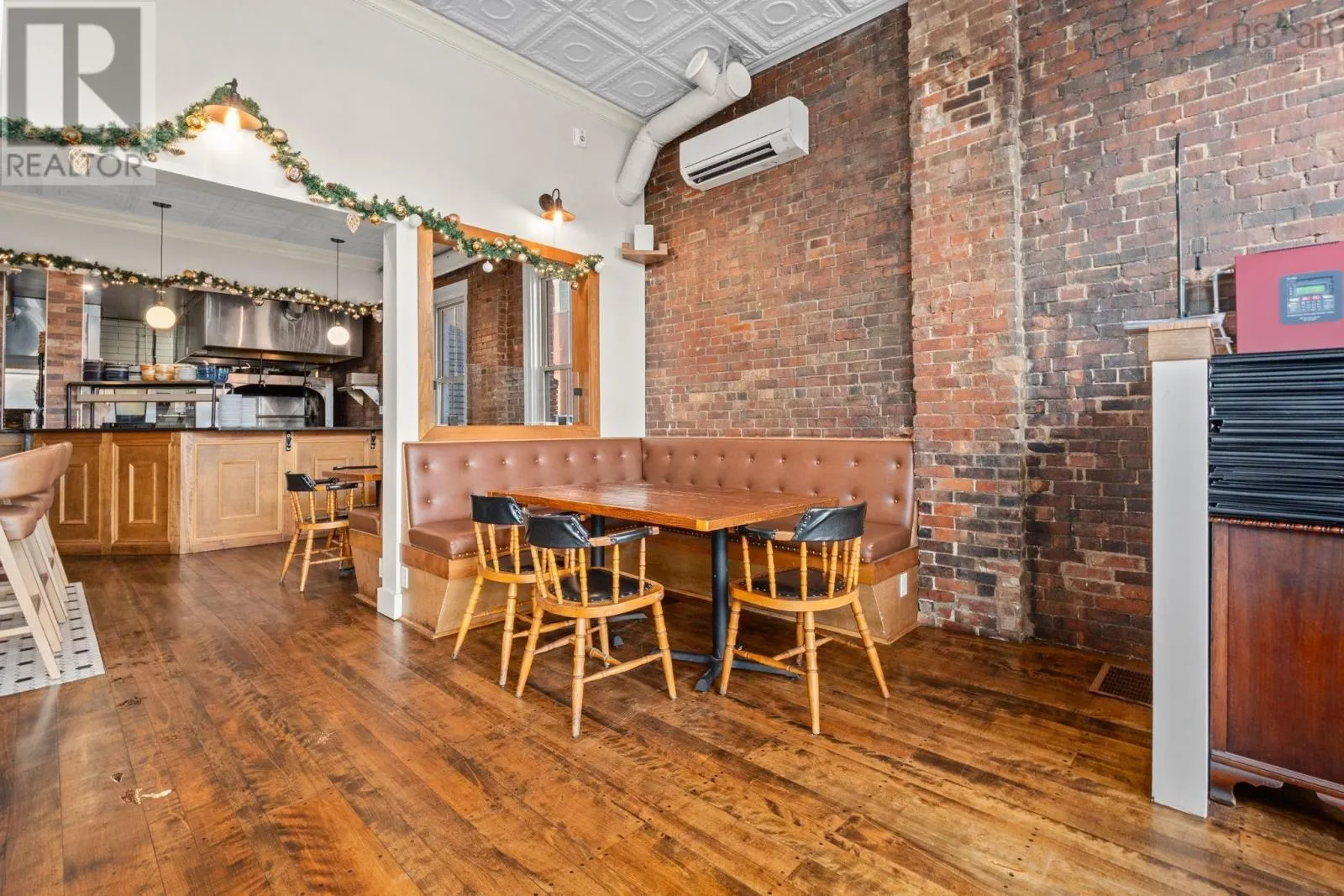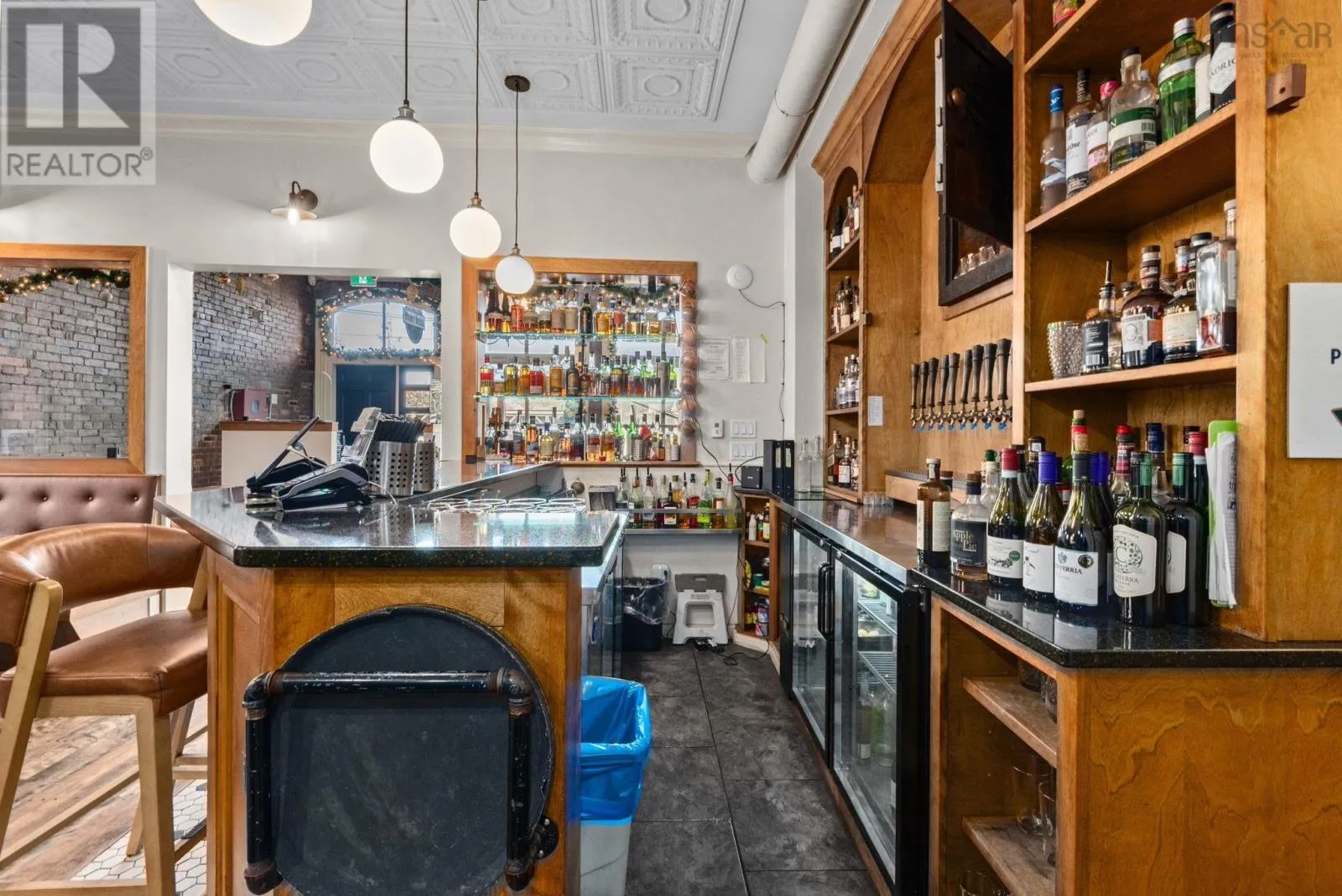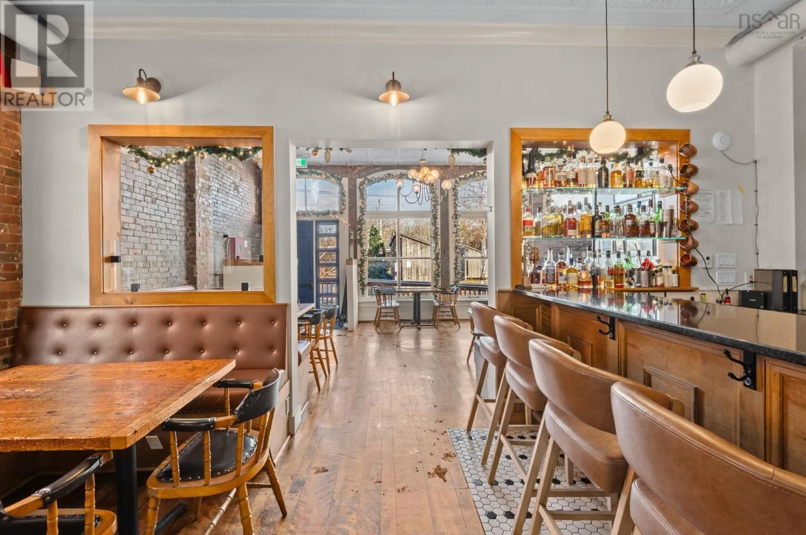 Take Exit 22 off of Hwy 101, follow Hwy 8 towards Lequille, continue to St. George Street to the traffic lights, continue straight through the lights, through town, turn right on Drury Ln and turn right into public parking lot. Located in the heart of historic Annapolis Royal, Nova Scotia, The Whiskey Teller occupies a beautifully restored heritage commercial building (circa 1884) that originally served as the Bank of Nova Scotia. The landmark property showcases exposed brickwork, soaring 18-foot ceilings, and rich hardwood floorsblending timeless architecture with modern functionality. In 2024, the building underwent a comprehensive interior renovation, bringing all electrical, plumbing, HVAC, and safety systems up to current fire and building codes. This renovation preserved the heritage charm while ensuring long-term operational integrity and compliance. The restaurant is positioned as a premium-casual dining destination with strong brand recognition, a loyal regional following, and an established online and social media presence. The signature wood-fire rotisserie and open-concept kitchen remain at the heart of its locally inspired menu. Seating includes 75 indoor seats plus approximately 70 patio seats during the summer season, offering excellent capacity for peak tourism traffic. The package also includes an adjacent two-storey building offering commercial office space on the ground floor and a spacious five-bedroom residential unit on the upper level, ideal for staff housing or additional rental income. Bring your restaurant vision to life without starting from scratch. This exceptional space is ready to welcome guests and create lasting memories well into the future. (id:27476)
