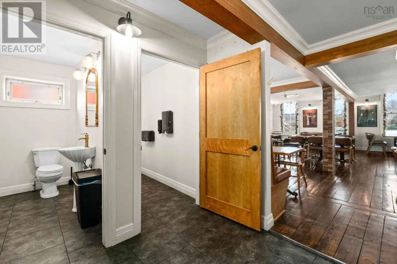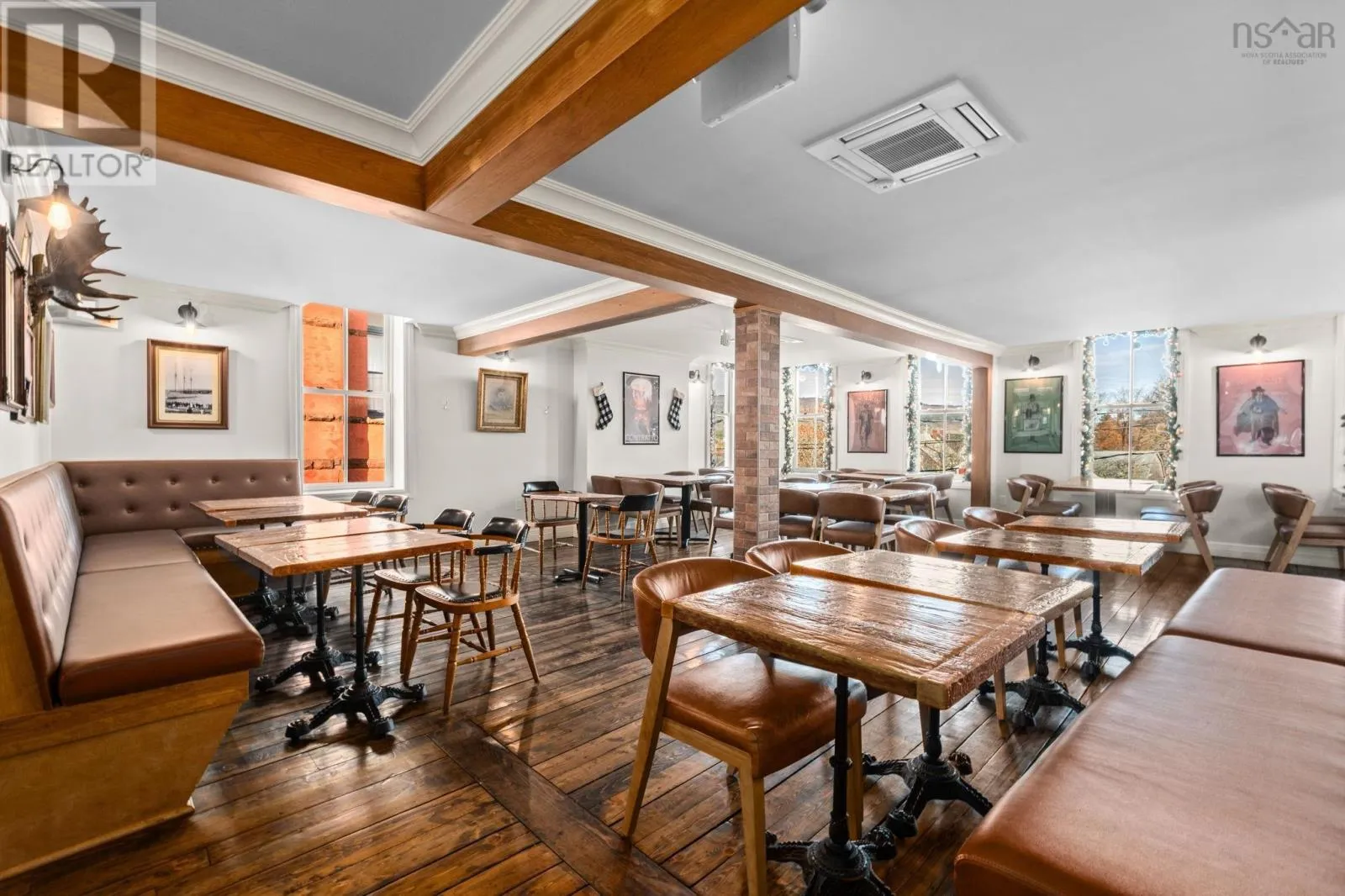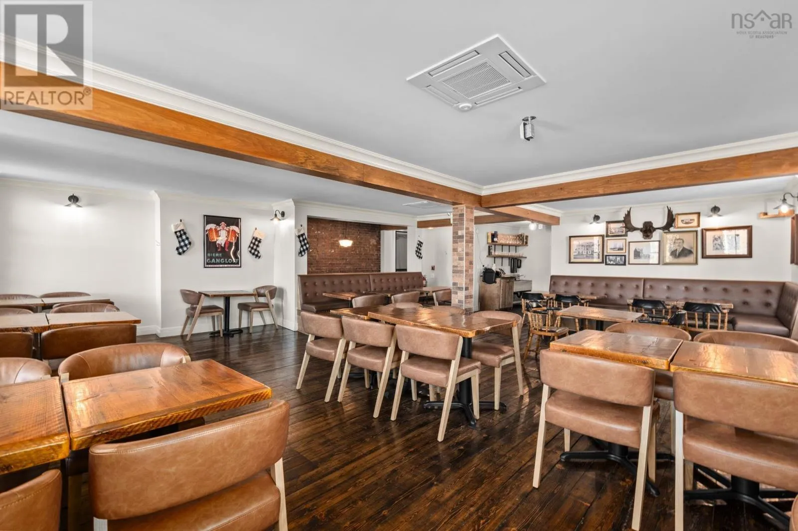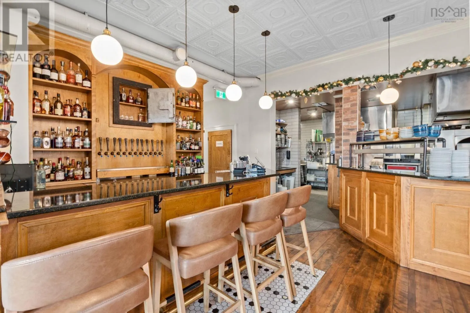 Take Exit 22 off of Hwy 101, follow Hwy 8 towards Lequille, continue to St. George Street to the traffic lights, continue straight through the lights, through town, turn right on Drury Ln and turn right into public parking lot. Located in the heart of historic Annapolis Royal, Nova Scotia, The Whiskey Teller occupies a beautifully restored heritage commercial building (circa 1884) that originally served as the Bank of Nova Scotia. The landmark property showcases exposed brickwork, soaring 18-foot ceilings, and rich hardwood floorsblending timeless architecture with modern functionality. In 2024, the building underwent a comprehensive interior renovation, bringing all electrical, plumbing, HVAC, and safety systems up to current fire and building codes. This renovation preserved the heritage charm while ensuring long-term operational integrity and compliance. The restaurant is positioned as a premium-casual dining destination with strong brand recognition, a loyal regional following, and an established online and social media presence. The signature wood-fire rotisserie and open-concept kitchen remain at the heart of its locally inspired menu. Seating includes 75 indoor seats plus approximately 70 patio seats during the summer season, offering excellent capacity for peak tourism traffic. The package also includes an adjacent two-storey building offering commercial office space on the ground floor and a spacious five-bedroom residential unit on the upper level, ideal for staff housing or additional rental income. Bring your restaurant vision to life without starting from scratch. This exceptional space is ready to welcome guests and create lasting memories well into the future. (id:27476)
