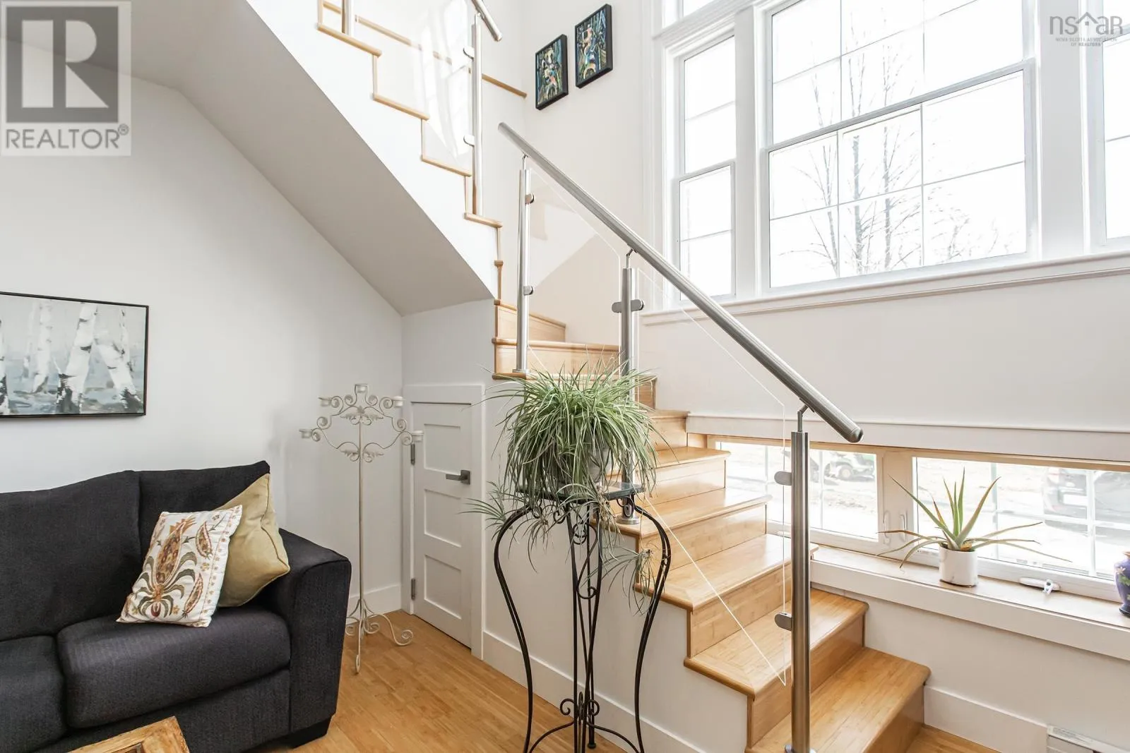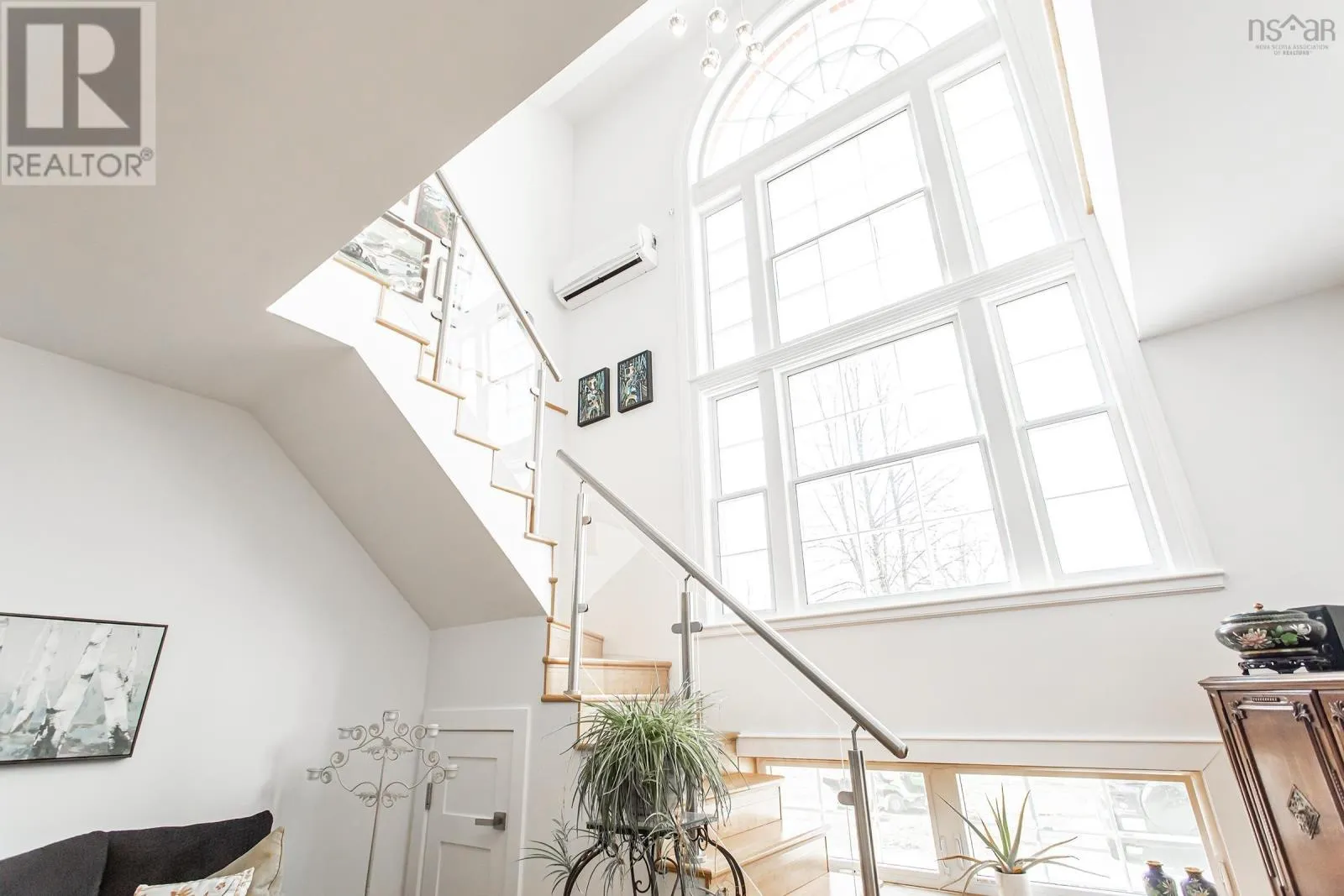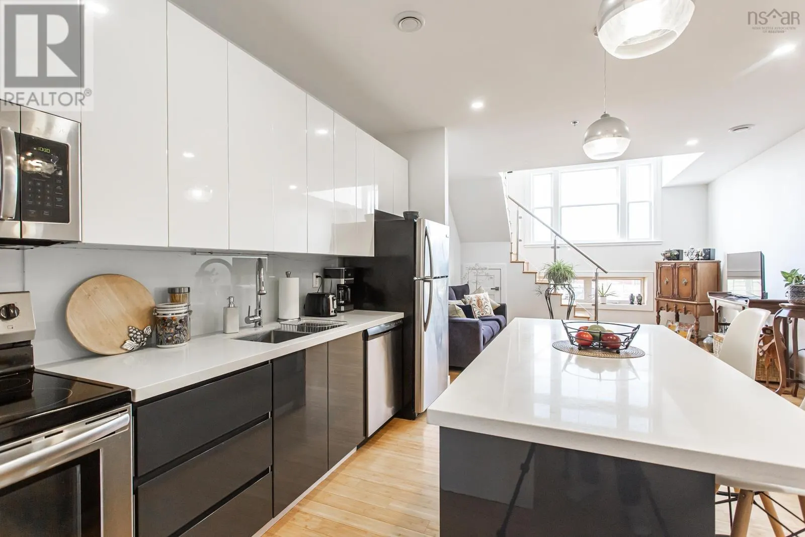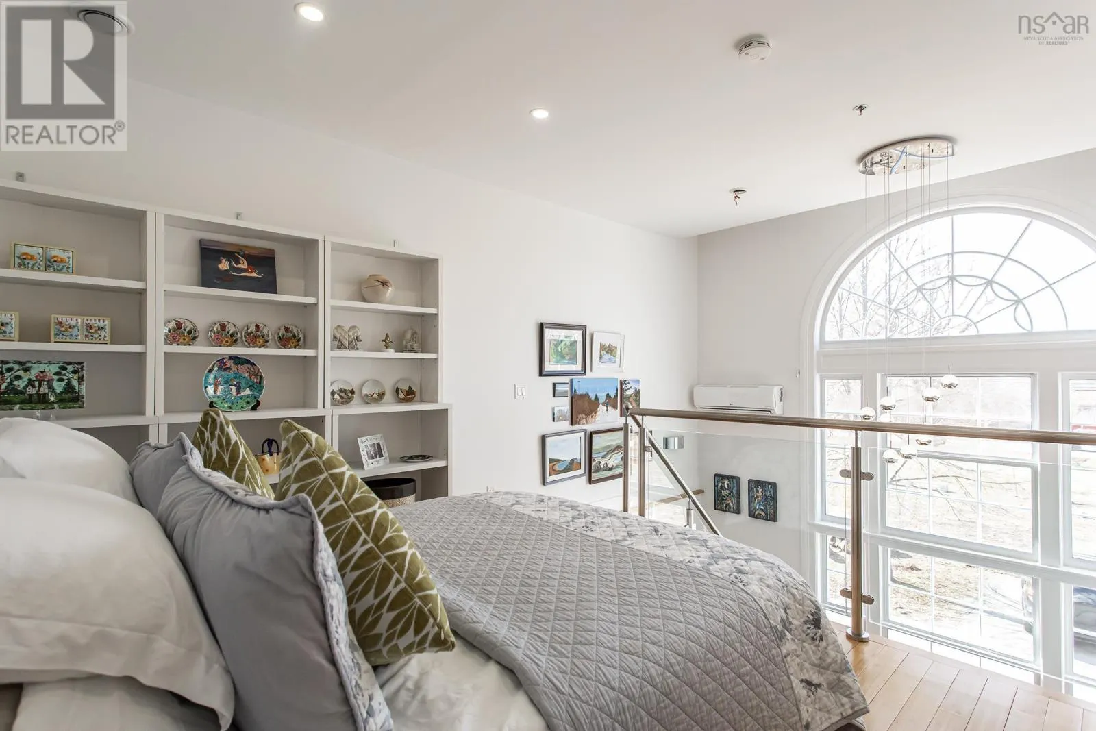 From traffic lights, travel south on St George Street to intersection with Grange Street on the left. From Grange street turn rightonto Ritchie Street. Main entrance is on the right. Welcome to The Academy, a landmark building completed in 2018 that brings luxury condominium living to the heart of charming Annapolis Royal. This bright, modern loft - one of only four in the building - is among the most elegant residences in the Valley, featuring soaring arched windows that rise over 20 feet and flood the space with natural light. Fine craftsmanship is evident throughout, from the spacious entrance foyer and two-piece bath on the main level to the light-filled kitchen and open-concept living area. The kitchen is appointed with stainless steel appliances, contemporary lighting, a glass backsplash, and a generous quartz island ideal for entertaining. The dramatic two-storey arched windows create a stunning architectural focal point while keeping the entire unit warm with daylight. Ascend the grand staircase to the open lofted bedroom, where spectacular views of The Academy grounds and fountain await. Built-in closets, in-unit laundry, and a private ensuite complete the upper level. A ductless heat pump with air conditioning and baseboard heaters provide efficient year-round comfort. The unit includes a private storage locker, dedicated bicycle storage, and a deeded parking spot. Building amenities include a fitness gymnasium, public library, cafe, and community meeting room. Outside, you are steps from the Rails to Trails and French Basin trail systems, one of the province's finest farmers markets, a seaside boardwalk, the Historic Gardens, galleries, shops, and acclaimed local restaurants. Book your private viewing today - this turn-key gem is ready to welcome you home. (id:27476)