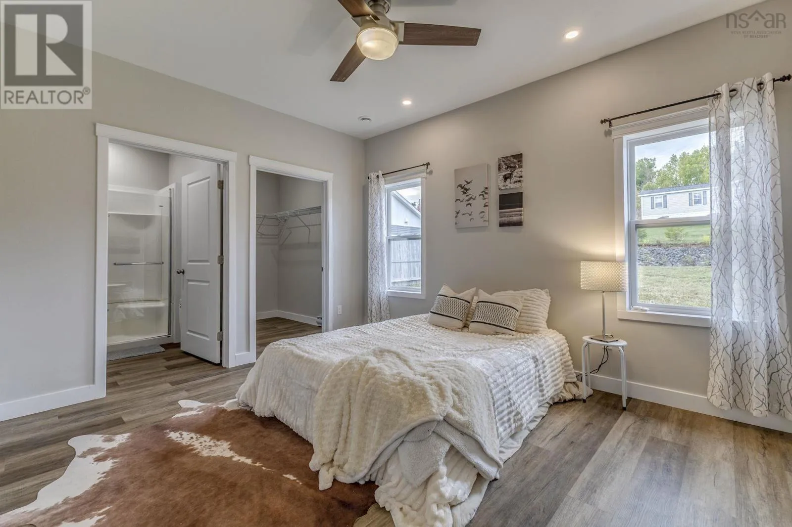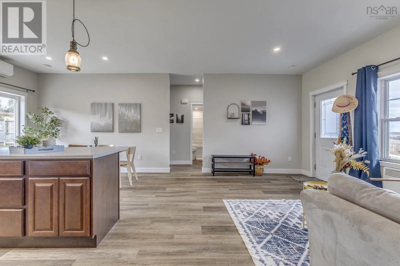 use google maps Perched atop a hill with panoramic views of the ocean, this modern slab home offers a perfect blend of peace, practicality, and proximity to town. Located just minutes from Antigonish, this 2020-built home features everything you could want in single-level living and then some. The thoughtful layout includes two bedrooms and a full bathroom on one side of the home, an open-concept kitchen and living area at the heart, and a private primary suite on the other. The kitchen is bright and functional, complete with an island and direct access to the concrete patio perfect for outdoor dining or relaxed in your large backyard. The spacious living room and dining area make entertaining easy, while the primary suite features a walk-in closet and ensuite bath for comfort and privacy. The attached oversized double garage is heated, wired, and includes its own two-piece bathroom ideal for hobbies, a workshop, or simply keeping your vehicles protected. A GenerLink panel is installed for easy generator connection, and the home is powered by a 200-amp electrical system with efficient electric heat and a heat pump for year-round comfort. Outside, the 0.61 acre lot offers a partially fenced backyard, with established flower beds ready for your personal touch. The steep driveway leads to your hilltop oasis with a truly spectacular view of the water the kind youll never get tired of waking up to. This is a rare opportunity to own a newer home in a sought-after area, offering comfort, convenience, and a lifestyle defined by stunning views and thoughtful design. (id:27476)