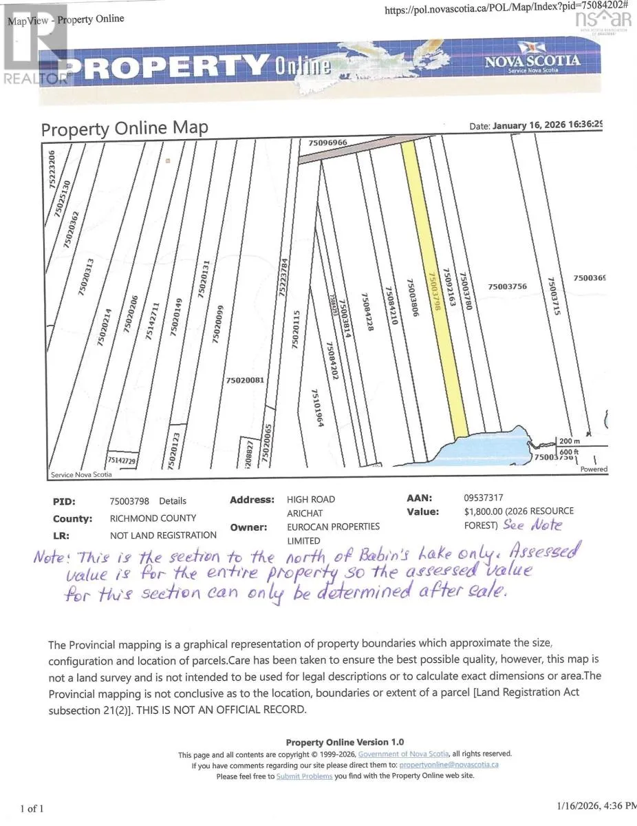 Highway 206 Arichat, NS. Babin's Hill lands on Babin's Lake. On the Southwestern tip of Cape Breton Island, you will find a charming little Island retreat called Isle Madame. On this beautiful little Island, you will discover some of Nova Scotia's best places for kayaking, fishing, hunting, surfing, hiking, ATV and bike riding in the rough or on groomed trails, plus comfortable inns, bed and breakfasts, charming restaurants and cafés, fish markets and spectacular seaside views from just about everywhere. You will also discover beaches, lighthouses and other amazing sights wherever you go. This hidden gem is where Acadian culture lives on through song, music, dance and crafts. You can own a small piece of this island paradise at a very affordable price. This property takes in approximately 10.2 acres of vacant land beginning on the north shore of Babins Lake and running north to the General Rear Line of Lots. This property has approximately 118 feet of lakefront where you will experience an abundance of undisturbed natural beauty. You are also a short walk to the ocean where you can enjoy the calm waters in sheltered coves or choppy waters and rugged coastlines in less sheltered areas. This property is ideal for a cottage or camp. (id:27476)