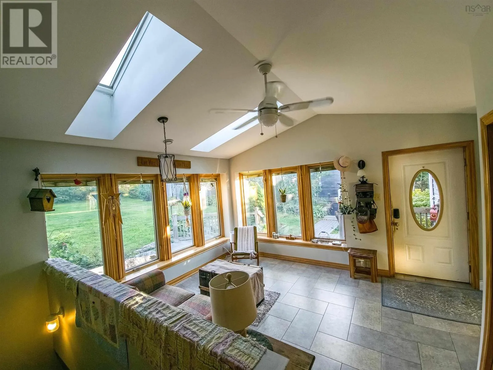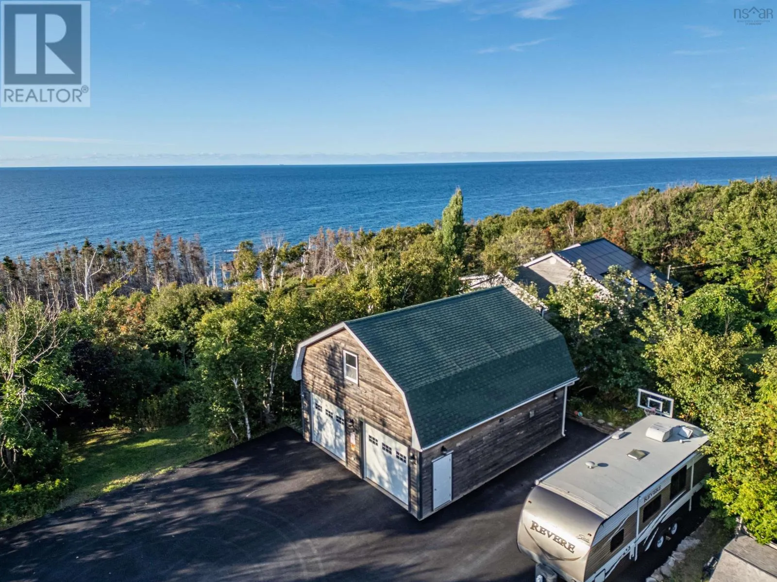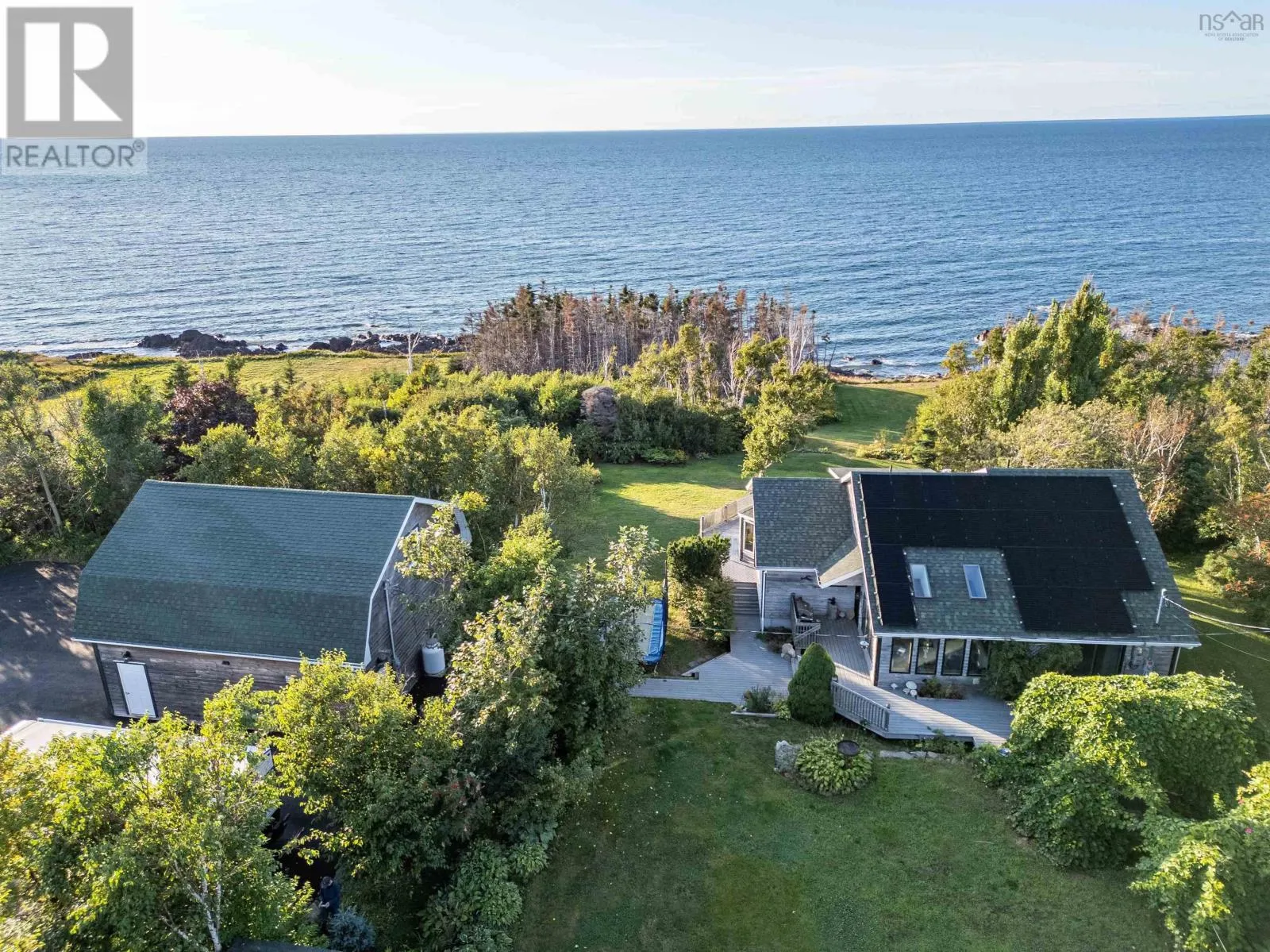 Highway 245 to Seaspray Lane - at bottom directonal arrow to Sandy Ranalds Lane Enjoy the peaceful, tranquil and private setting of this 3 bedroom 2 bath home situate on 2.3 acres on the beautiful Northumberland Strait - gorgeous sunsets, just minutes walk to your daily swim - a paved driveway with large parking area - the home is nestled in the middle of the lot with captivating views and the sounds of nature - the main level has a sunroom, office area and two spacious bedrooms with full bathroom, open concept kitchen/dining/living room with propane fireplace - with windows galore - garden doors open to wrap around deck and screened sunroom - the lower level has a gym area, an additional bedroom, full bathroom, large family room, storage room, utility rooms and a common room with walkout to the water views. Potential of a 4th bedroom in basement - A 28 x 32 detached heated/wired garage with a loft - a place to store everything! Energy efficient home - a major plus - solar panel system included!! Big savings on utility costs!! (id:27476)
