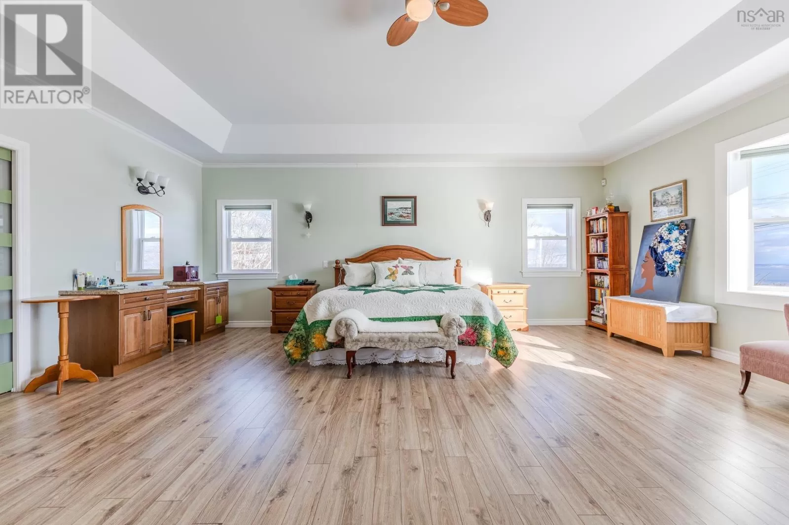 Take NS-101 to Greenwich Conn in Kings County. Take Exit 11 from NS-101,Then follow NS-358 N to your destination. Property will be on the left, shortly after the Blomidon Look-off. Have you ever wished that you could wake up every morning to the most beautiful view in the Annapolis Valley, with the sun beaming in? Well, heres your chance! Located in beautiful Arlington, Nova Scotia, this exquisite executive home shares the same view as the popular Blomidon Look-Off (which is located near by). Boasting a gorgeous, extremely spacious master bedroom, an immaculate kitchen (with walk in fridge & a grand Pantry), two additional bedrooms, a craft & laundry room, an office (which could be used as a fourth bedroom), a large two-tier deck with surround sound, this beautiful home is a DREAM! The master bedroom comes with 2 walk-in closets & one of the most breathtaking views that you could wake up to. The ensuite bathroom includes a large shower (with dual shower heads) and a large, luxurious water/air jet tub equipped with color changing mood lighting and a heat regulation system that will ensure that you have a relaxing, warm bath for as long as you wish to stay in. Down the hall you can find two more beautiful bedrooms, a full bathroom, a large craft & laundry room with built in shelving, and an office/fourth bedroom (also with built in shelving). At the end of the hall, you will find a large sunroom (with Wood Stove) to relax in. Through patio doors at the back of the sunroom, you will find the two-tier deck, complete with gazebo and surround sound speakers. The beautiful, large backyard provides ample space for any outdoor fun. Other exciting features include in floor heating, a heat pump, 40 solar panels to help cut costs and a storage shed. The custom electric blinds (with remote control) can be found throughout the house. The surround sound system consists of speakers & volume adjustors in multiple rooms and on the deck. The small shop also located on the property is wired for power & water, making it perfect for anyone with an entrepreneurial spirit looking to conduct a small business (property is Zoned with approval). (id:27476)