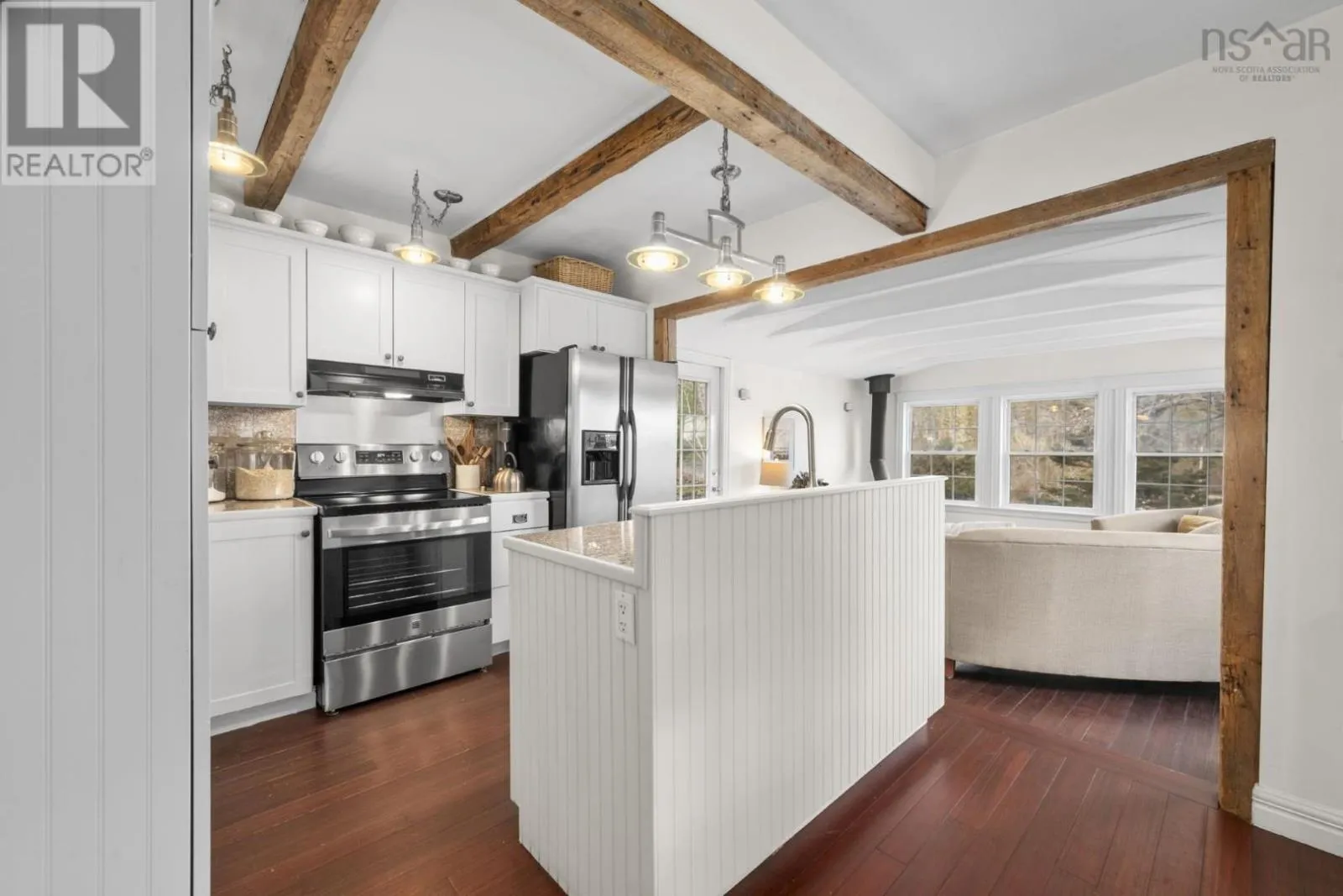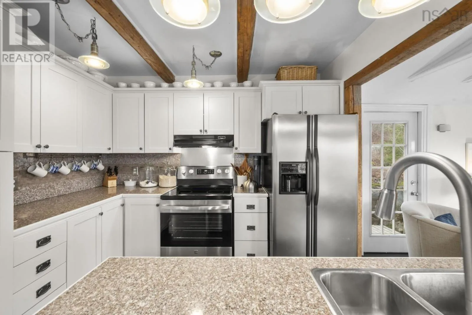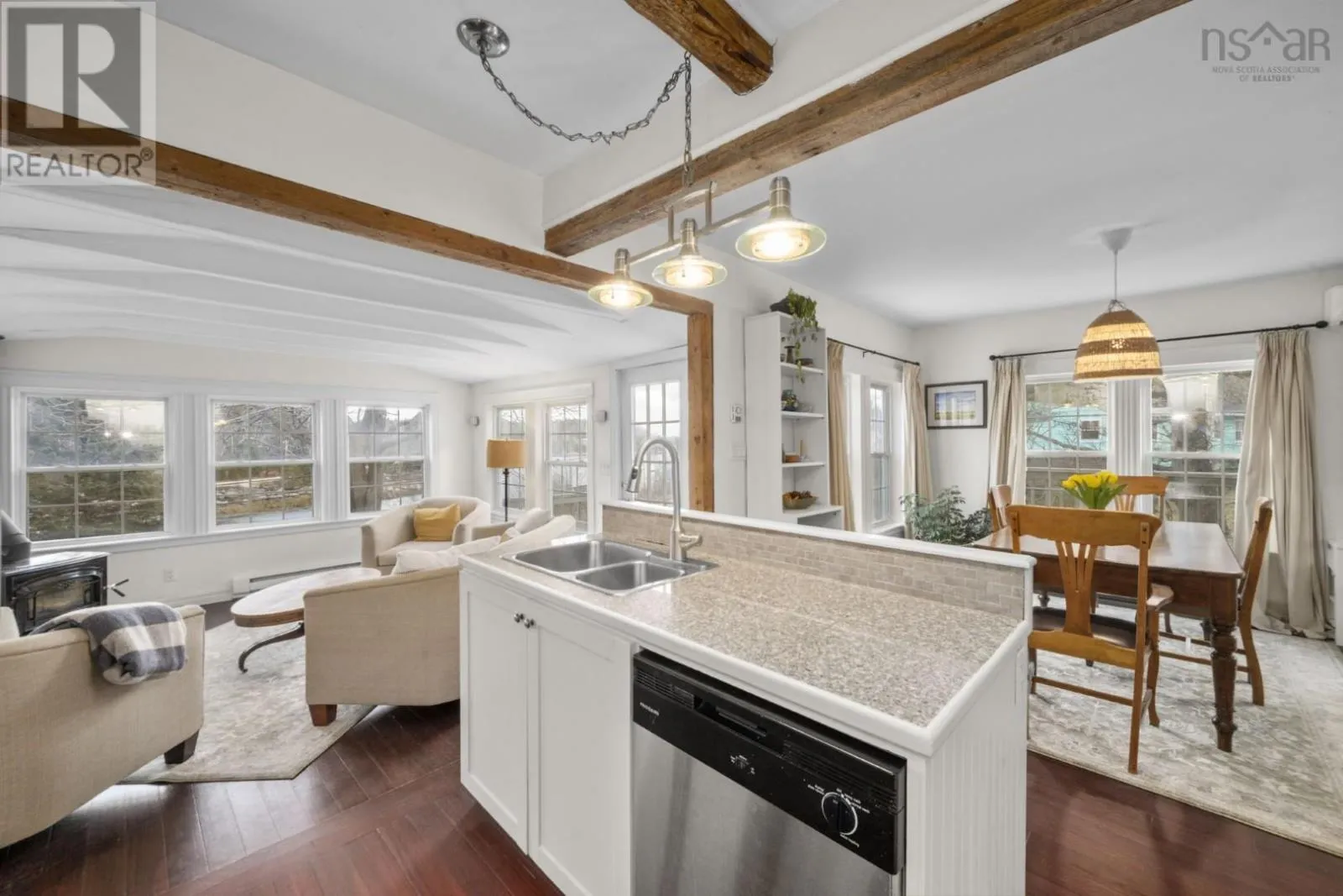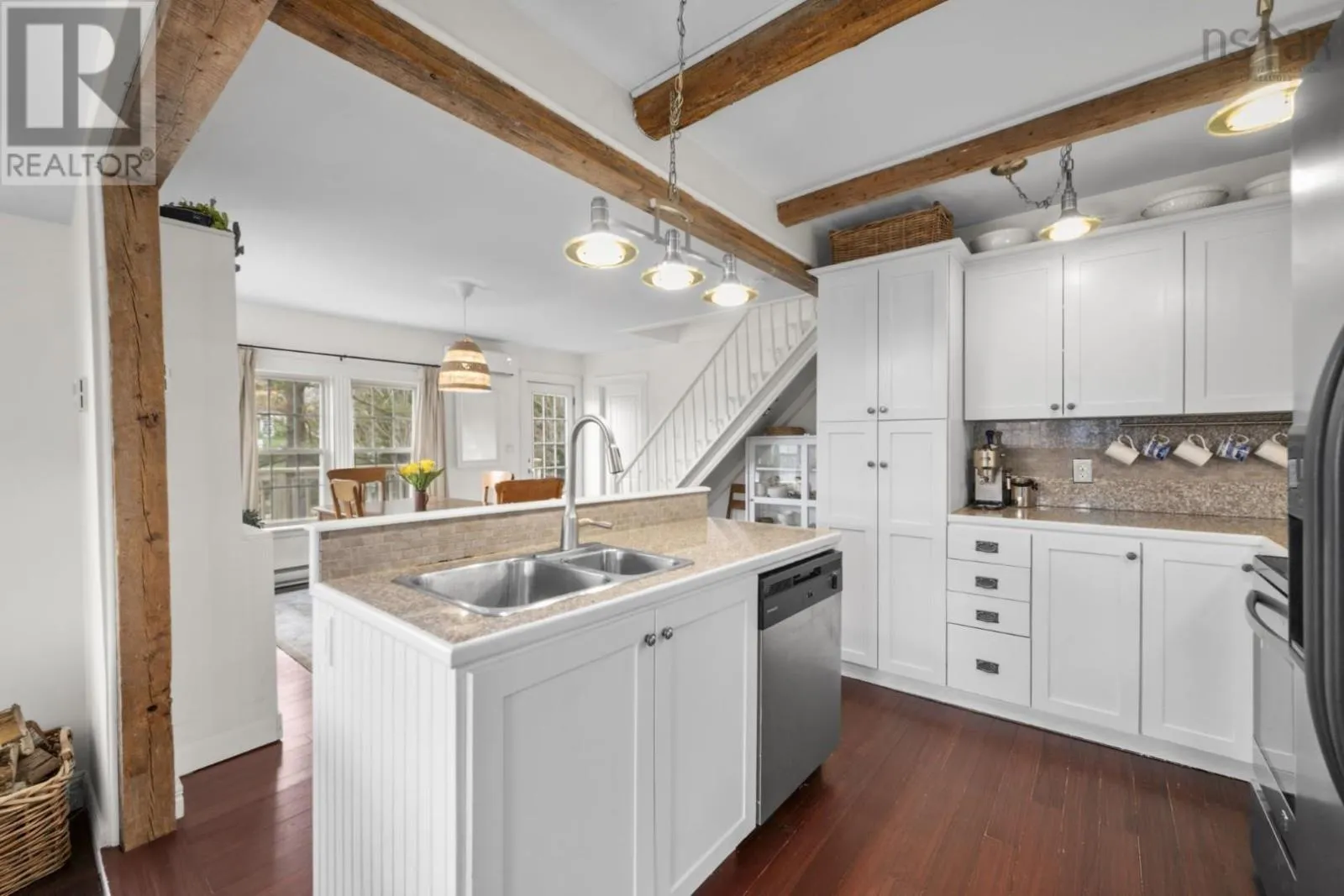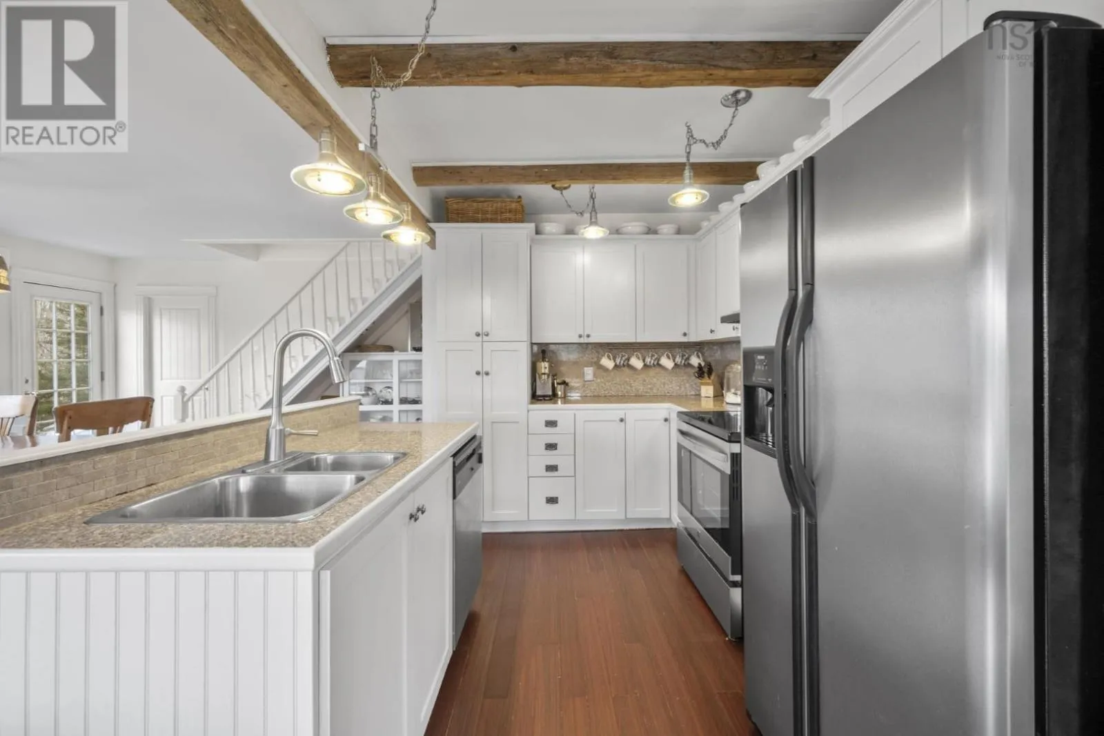 Highway 3 to Highway 329 Tucked along a hillside overlooking a protected cove, this beautifully updated three-bedroom home offers a warm and welcoming coastal feel. The heart of the main floor is the renovated, open-concept kitchen, where century-old exposed beams add character. The charming original staircase blends seamlessly with granite countertops and newer flooring. Large windows frame beautiful cove views, filling the space with natural light. The main level also includes a third bedroom and a full bath with a laundry room, making the layout both comfortable and functional. Step onto the deck and picture long summer evenings, relaxed gatherings, or quiet mornings with a coffee as the water glimmers below. The cove is just across the road, where the current owners enjoy a dock without the waterfront price tag (not deeded). The property comes with a float for a floating dock that belonged to previous owners who also had a mooring in the deep cove. Located along the scenic Aspotogan route, just 15 minutes to Hubbards, and 40 minutes to Bayers Lake, you have access to shopping and conveniences as well as the best beaches of the South Shore. Recent improvements include a new roof over the living room in 2023, a heat pump in 2022, along with fresh interior and exterior paint in 2025. Book a viewing to experience first-hand the kind of place that invites you to slow down, take in the view, and truly feel relaxed and at home. (id:27476)