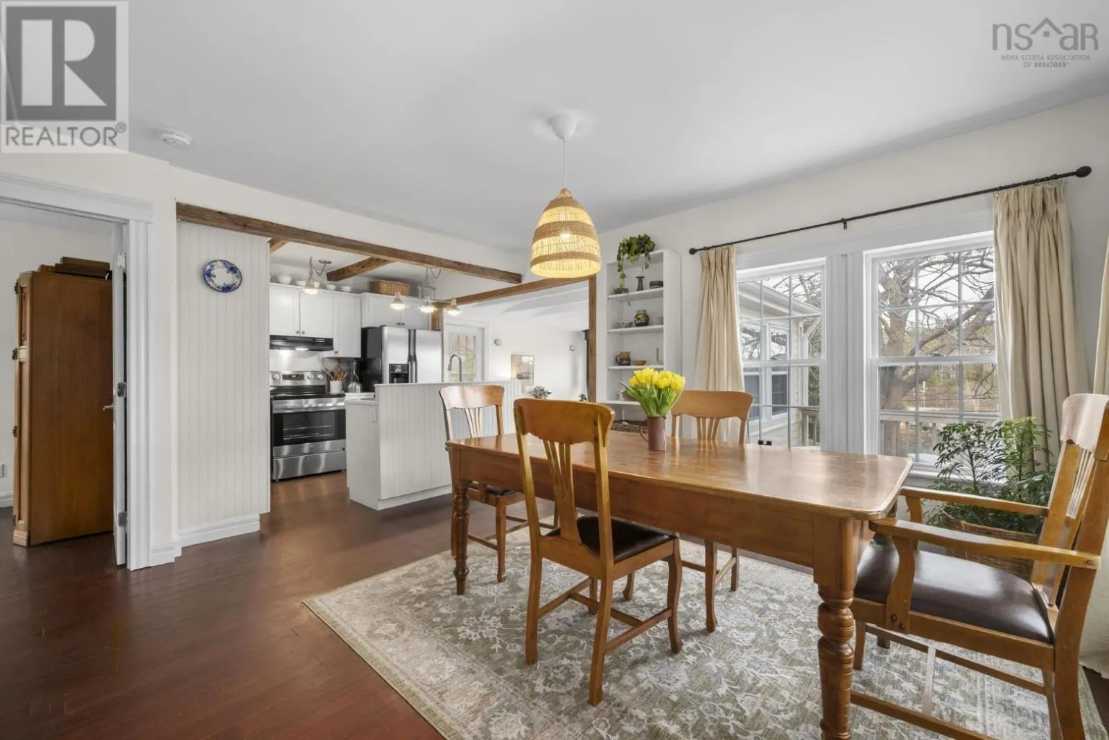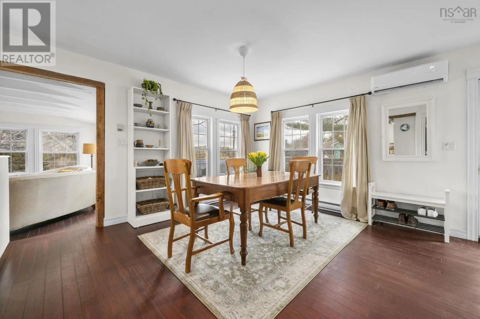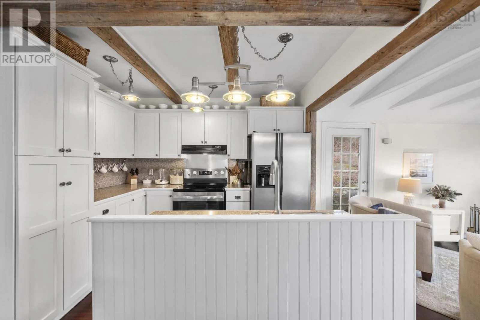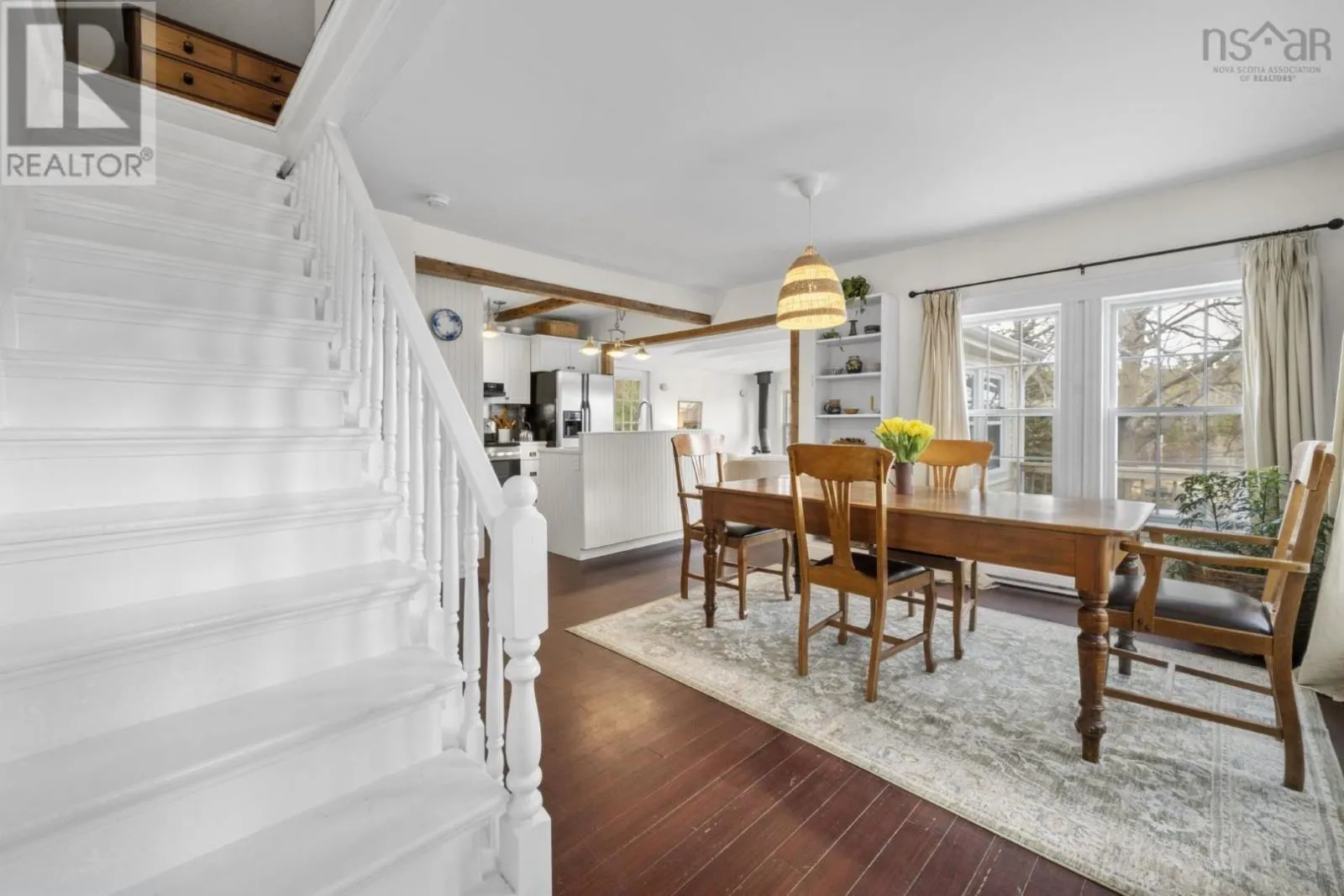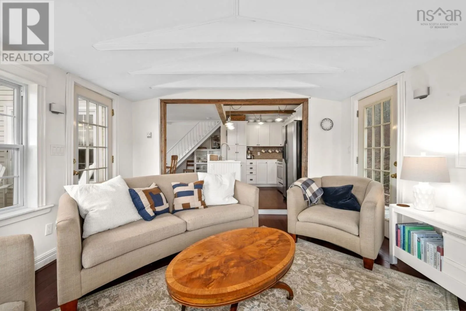 Highway 3 to Highway 329 Tucked along a hillside overlooking a protected cove, this beautifully updated three-bedroom home offers a warm and welcoming coastal feel. The heart of the main floor is the renovated, open-concept kitchen, where century-old exposed beams add character. The charming original staircase blends seamlessly with granite countertops and newer flooring. Large windows frame beautiful cove views, filling the space with natural light. The main level also includes a third bedroom and a full bath with a laundry room, making the layout both comfortable and functional. Step onto the deck and picture long summer evenings, relaxed gatherings, or quiet mornings with a coffee as the water glimmers below. The cove is just across the road, where the current owners enjoy a dock without the waterfront price tag (not deeded). The property comes with a float for a floating dock that belonged to previous owners who also had a mooring in the deep cove. Located along the scenic Aspotogan route, just 15 minutes to Hubbards, and 40 minutes to Bayers Lake, you have access to shopping and conveniences as well as the best beaches of the South Shore. Recent improvements include a new roof over the living room in 2023, a heat pump in 2022, along with fresh interior and exterior paint in 2025. Book a viewing to experience first-hand the kind of place that invites you to slow down, take in the view, and truly feel relaxed and at home. (id:27476)