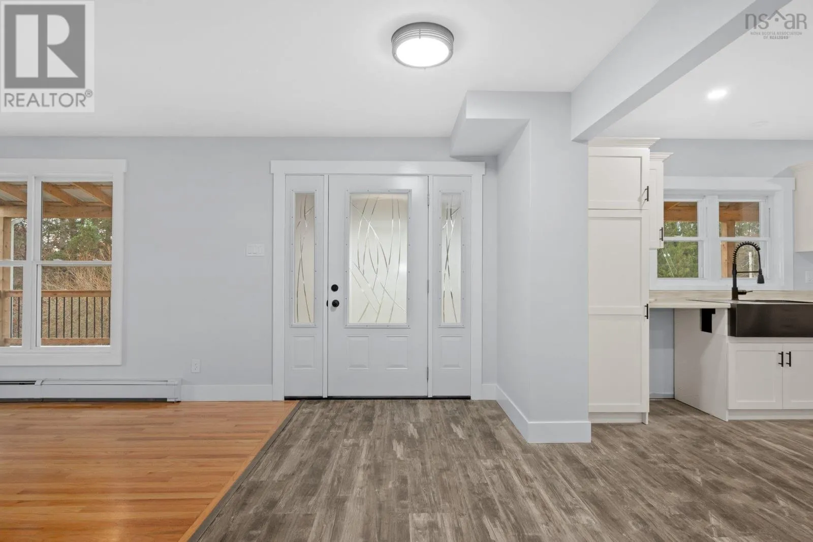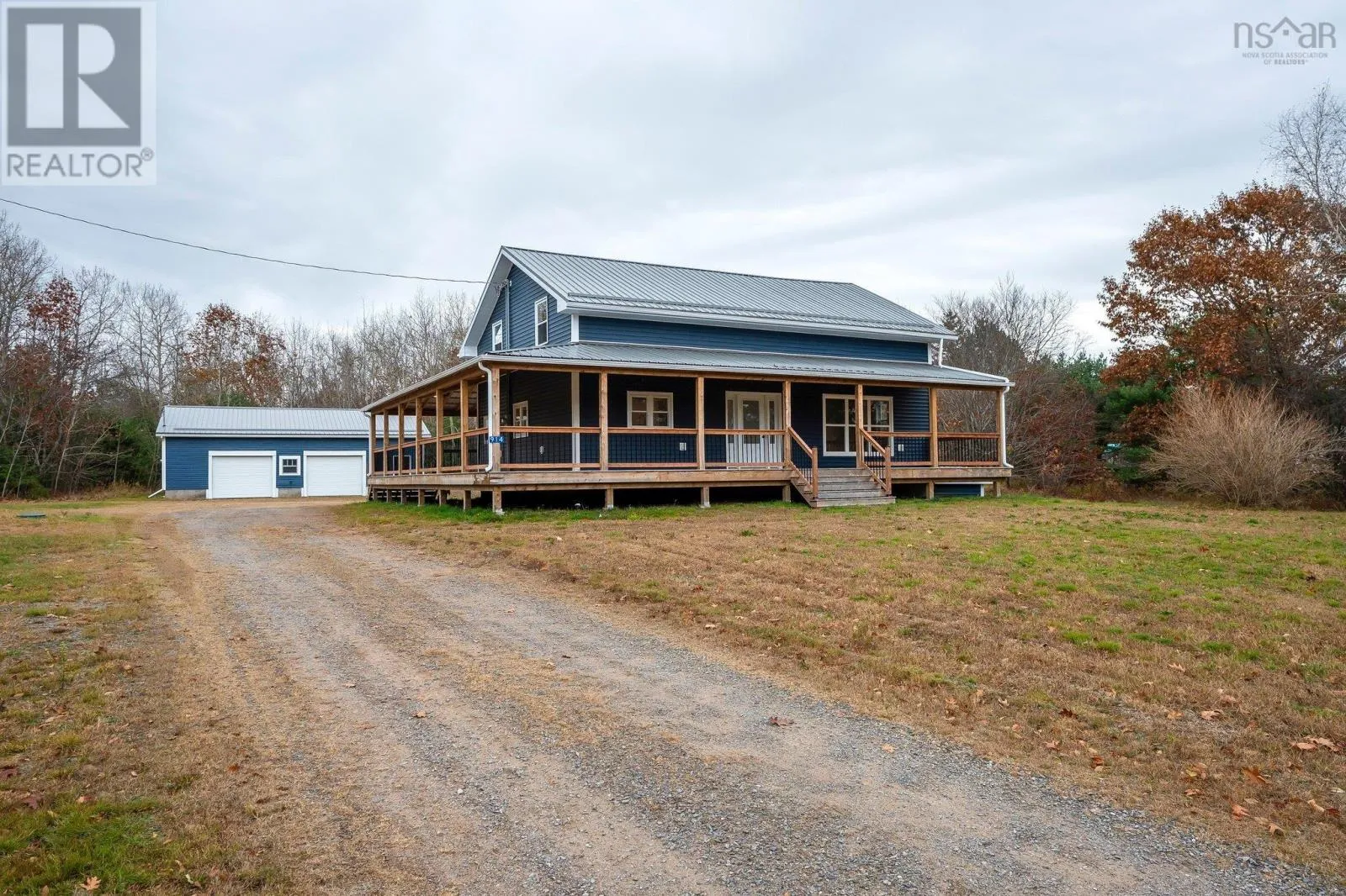 from Hwy 1 in Aylesford turn onto Maple st. Look for MLS Welcome to this newly renovated 5 bedroom/ 2.5 bathroom home situated on 1.6 acres on Maple Avenue in the town of Aylesford. At first glance, a stunning newly built covered wrap-around deck, accented with an attractive new railing and pot lights tucked into the overhanging roof is sure to catch your eye. The new siding, gutters, windows, doors, and new metal roof add to the delightful curb appeal of this home. Bountiful upgrades and quality workmanship will be on full display as you enter into this home. A new kitchen, boasting a farmhouse sink, new countertop, fixtures, and plenty of space to prepare that perfect meal will be the hub of this home. With main floor laundry and 2.5 bathrooms that have been redone with new vanities, toilets, sinks, lights, fixtures, flooring, a shower, and a tub. New luxury vinyl click flooring has been installed throughout the home with the exception of the rich medium-tone refinished hardwood floors in the living room. Trim, paint, bathrooms, doors, light fixtures, electrical, 200-amp breaker panel, plumbing, heat pumps (x2), marathon hot water tank, pressure tank, stairs, boiler, and HRV air exchanger this home is sure to please. The lower level is a blank slate with a walkout to the sideyard and is ready for your own creative ideas. The extra-large detached 40 x 29 garage features 2 new garage doors and provides plenty of room for additional storage, a workshop, or working on that special project. The garage has its own 100 amp electrical panel with a separate hookup to NS power. This family home is move-in ready and for immediate possession. (id:27476)