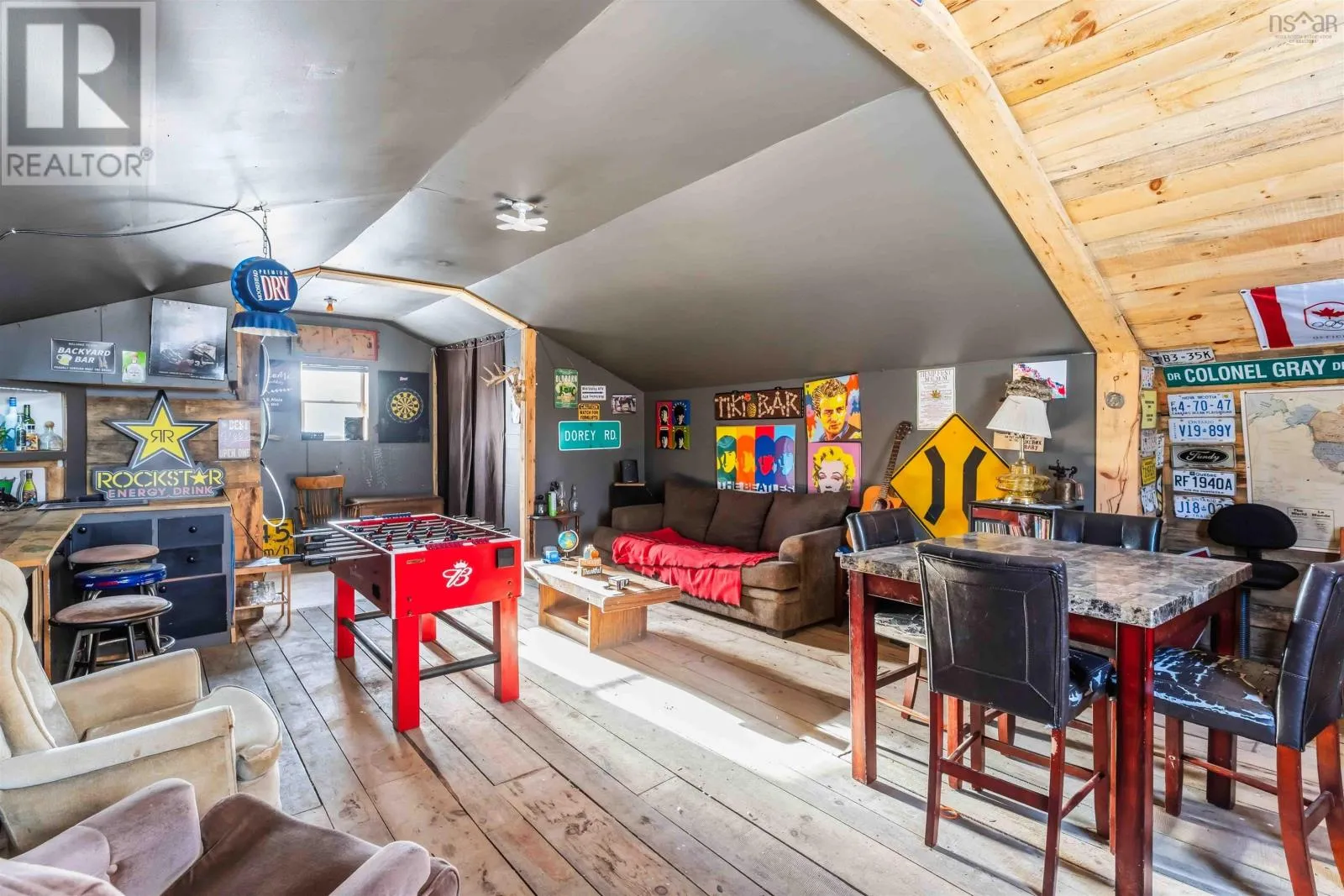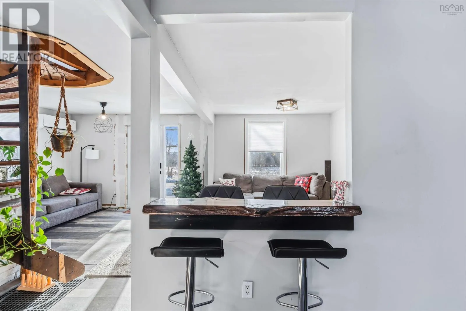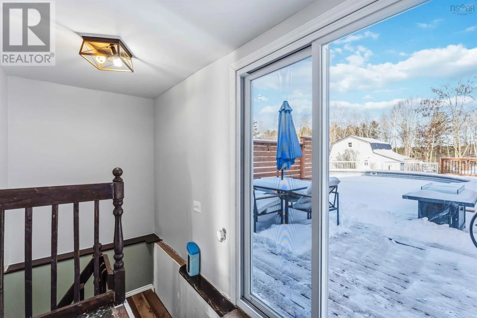 Exit 16 off Hwy. 101, turn south toward NS #1 Aylesford, turn west, turn south onto Palmer Rd., then west onto Dorey Rd. Property on the right, look for sign and civic. Welcome to 417 Dorey Road an inviting 1.5-storey home set on a spacious 1.5-acre country lot, just minutes from CFB Greenwood. This property blends character, functionality, and recent updates, making it an excellent move-in-ready opportunity .Inside, you'll find charming details including a lovely brick hearth with a wood stove insert and a unique spiral staircase leading to the upper-level primary bedroom complete with a walk-in closet. The main level features two additional bedrooms, a full bathroom, a comfortable living room, and an updated open-concept kitchen ideal for everyday living and entertaining. The lower level offers added living space highlighted by a beautiful brick and stone hearth and includes a 3-piece bathroom. With its layout and private access potential, this level is well suited for extended family accommodations or a home-based business (buyer to verify use).Recent upgrades include a new metal roof, new siding, and updated windows. Outside, enjoy a brand-new deck and a 27-foot above-ground pool perfect for relaxing and entertaining during the warmer months. The 24 x 32 detached, wired garage offers exceptional versatility, featuring an upper level that provides additional space ideal for a workshop, storage, or entertaining. The backyard is well planted with many different flowers, fruit trees and equipped with a pond. A wonderful blend of rural setting, thoughtful updates, and proximity to local amenities this property is truly one to see. (id:27476)