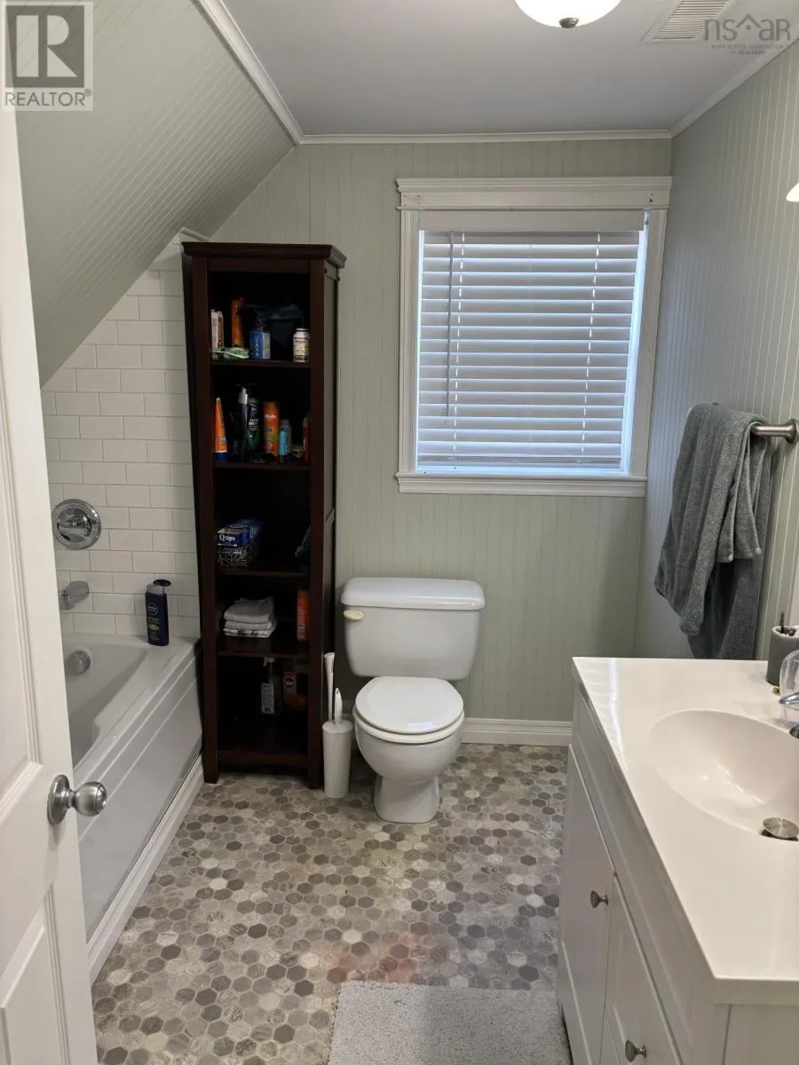 From Chebucto to Queen. This is a wonderful property in a lovely quiet residential area in the Village of Baddeck! The property features a very well-maintained 1.5-sty year round home and storage shed on a landscaped level lot with paved driveway. The main floor features a back porch, open-concept kitchen and dining room, living room and front porch. Upstairs there is a nice landing, three bedrooms and a full bathroom. The basement level features a finished section with bathroom and office, and the remainder is storage, utility and laundry room (unfinished). Oil heat, municipal water and sewer, Poly tech windows, vinyl/laminate flooring, and considerable upgrades to this immaculate property! Three new heat pumps as well. Spacious front and back yards, and walking distance to the local amenities in downtown Baddeck! (id:27476)