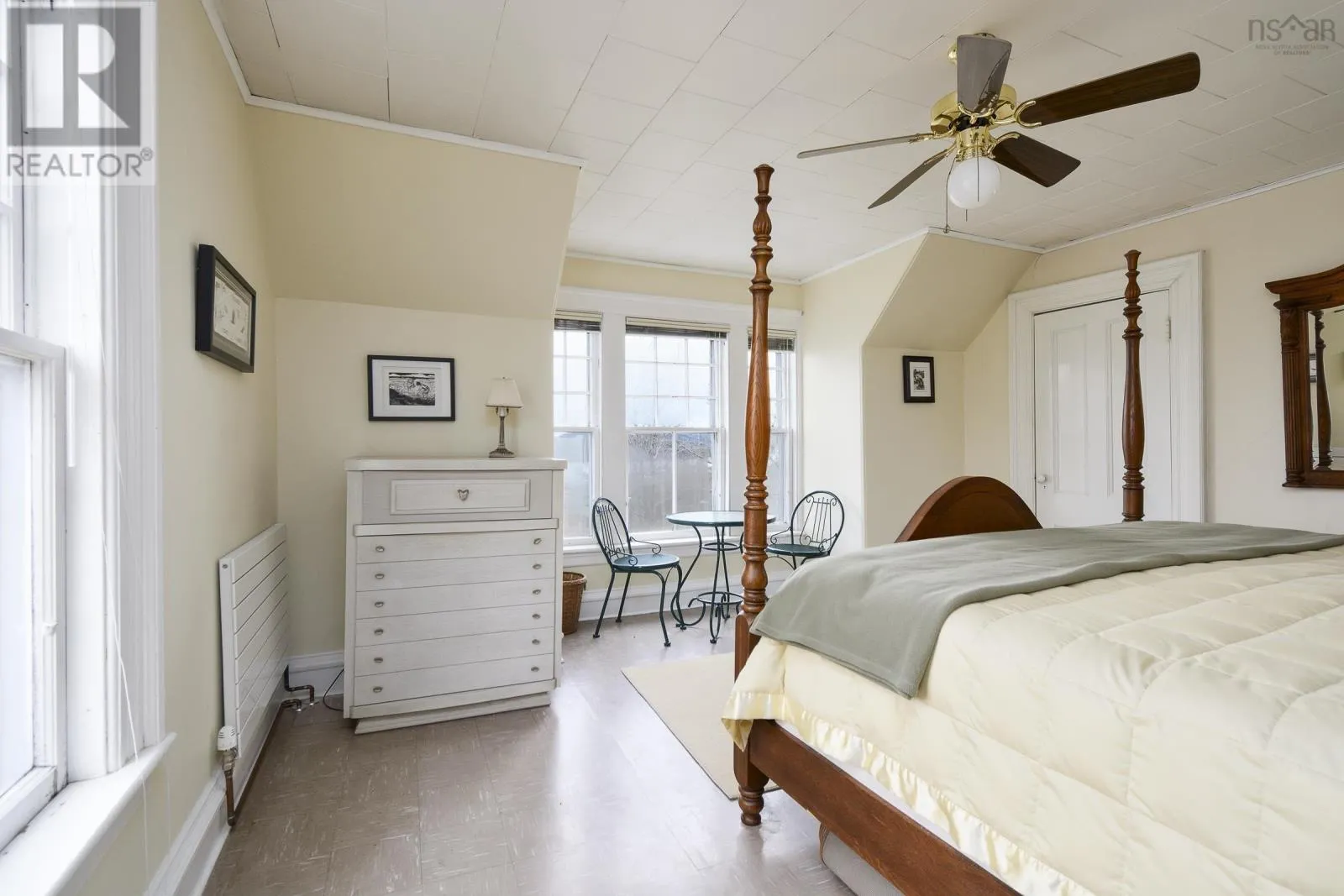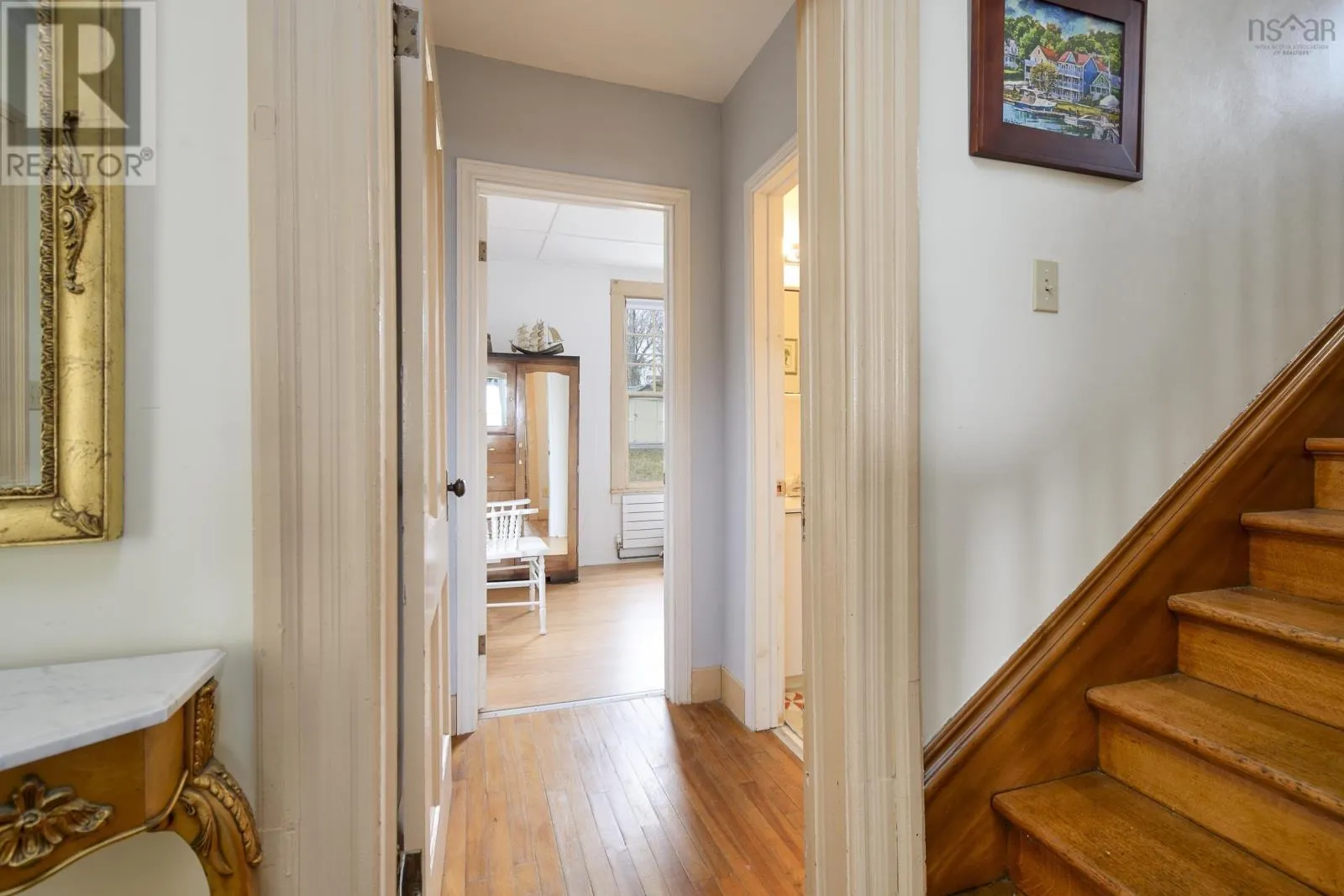 As you enter Baddeck from HWY 205, home is located on the right side. Located between Credit Union and the Main Street Restaurant Own a true piece of Baddeck history with this stately former Manse, originally constructed in 1902 for Knox Presbyterian Church. Prominently positioned on 0.4 acres along Main Street, yet set back with a sense of privacy, this remarkable property captures sweeping views of the Baddeck waterfront, Kidston Island and its iconic lighthouse. Built in an era where craftsmanship mattered, the home showcases tall ceilings, intricate architectural details and classic hardwood floors throughout much of the main level. Natural light pours through generous windows in every room, enhancing the warmth and character that define this residence. The main floor offers a functional and inviting layout featuring a spacious kitchen, formal dining room and large living room ideal for gatherings. A main-level bedroom and full bath provide flexibility for guests, home office use or one-level living convenience. Dual entrances from both the welcoming front deck and rear parking area add practicality for daily living or business use. Upstairs youll find three additional bedrooms, including a generously sized primary, along with a large four-piece bath. A staircase leads to the third floor, presenting exciting potential for additional living space, studio, office or future development. Zoned for both residential and commercial use, this high-visibility Main Street location opens the door to countless possibilities from a distinguished private residence to professional offices, boutique accommodations, gallery space or other entrepreneurial ventures. Located in the heart of Baddeck the gateway to the Cabot Trail youre steps from the marina, boardwalk, shops, dining, hospital, school and everyday amenities. Historic charm, panoramic views and flexible zoning combine to make this a rare and compelling opportunity in one of Cape Bretons most sought-after waterfront villages. (id:27476)